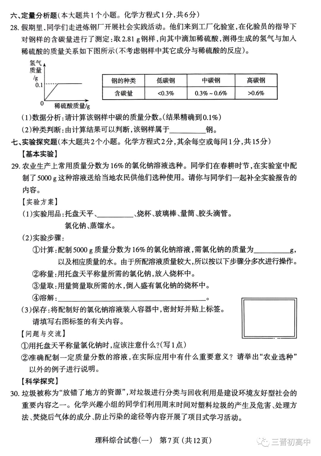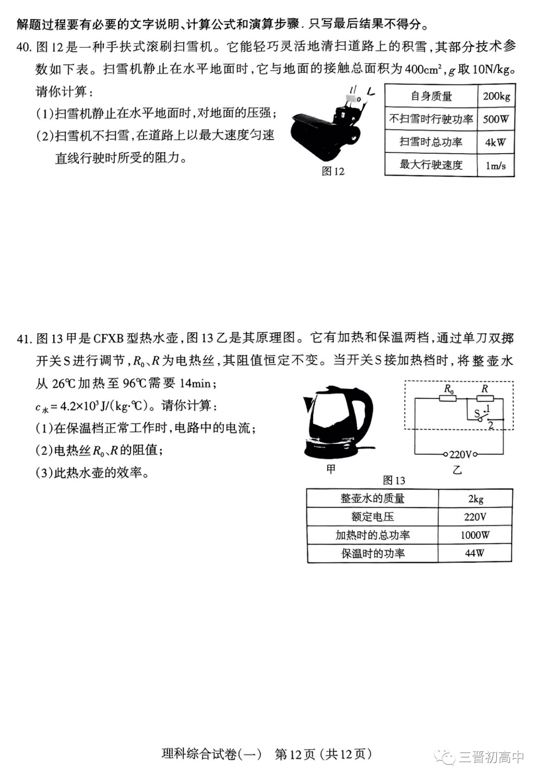 理综试题及答案
