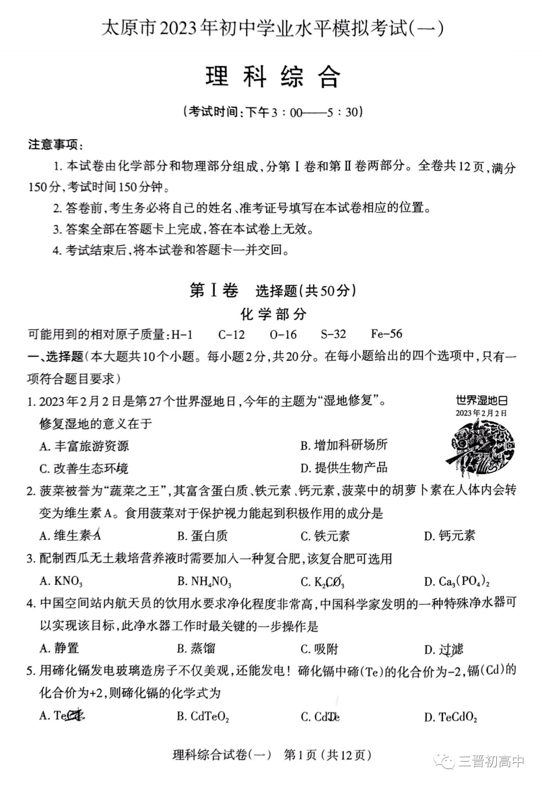 2023年太原市中考一二模考试时间发布 附往年真题下载