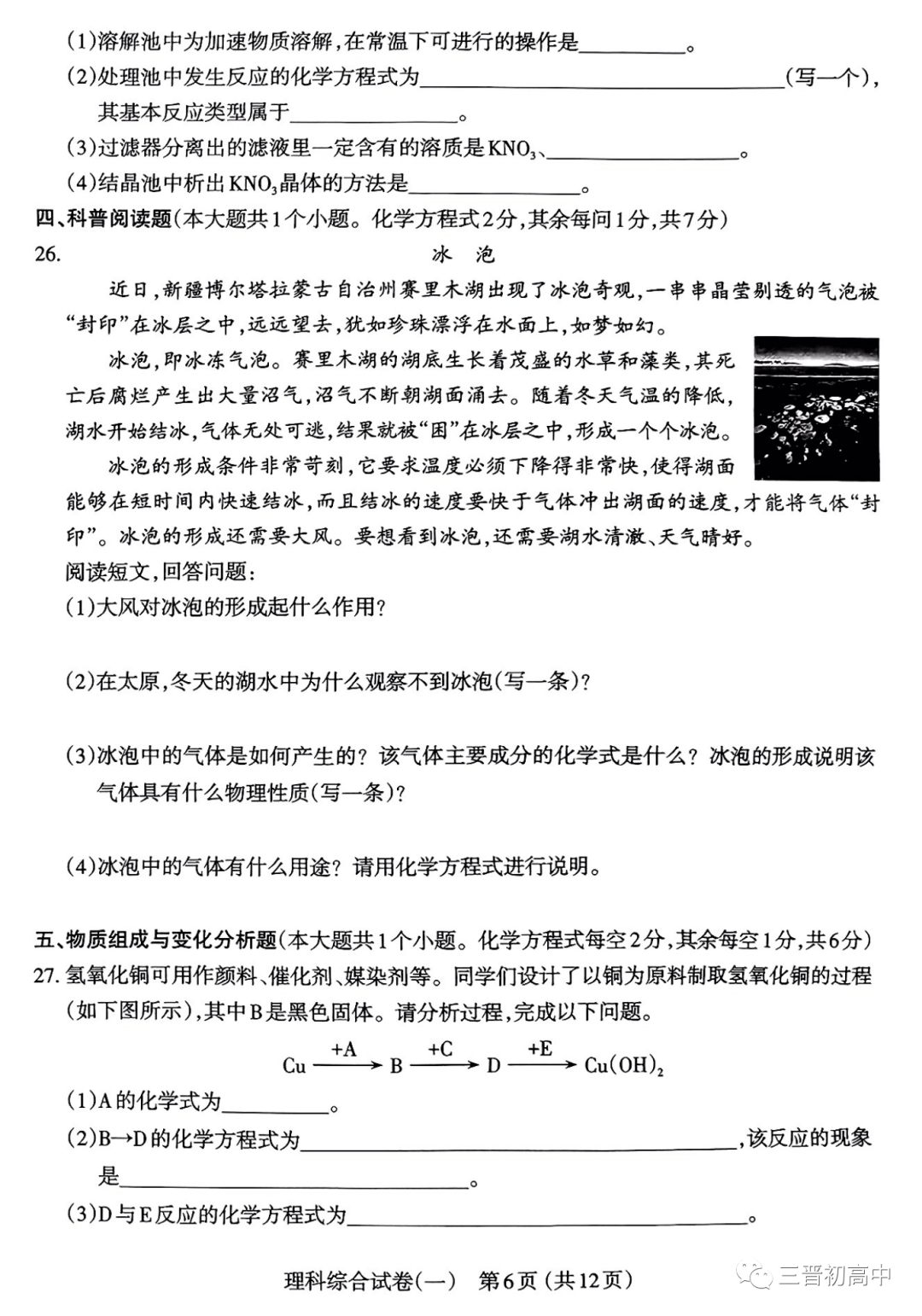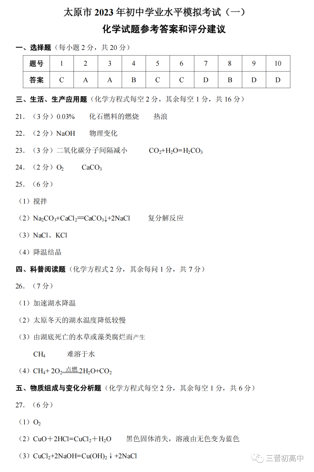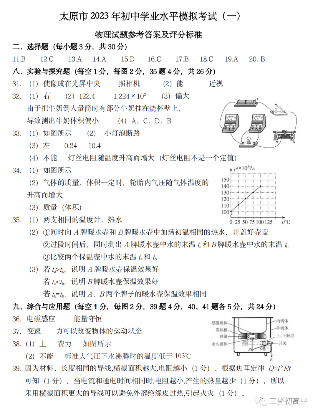 2023年太原中考一模试题+答案电子版领取