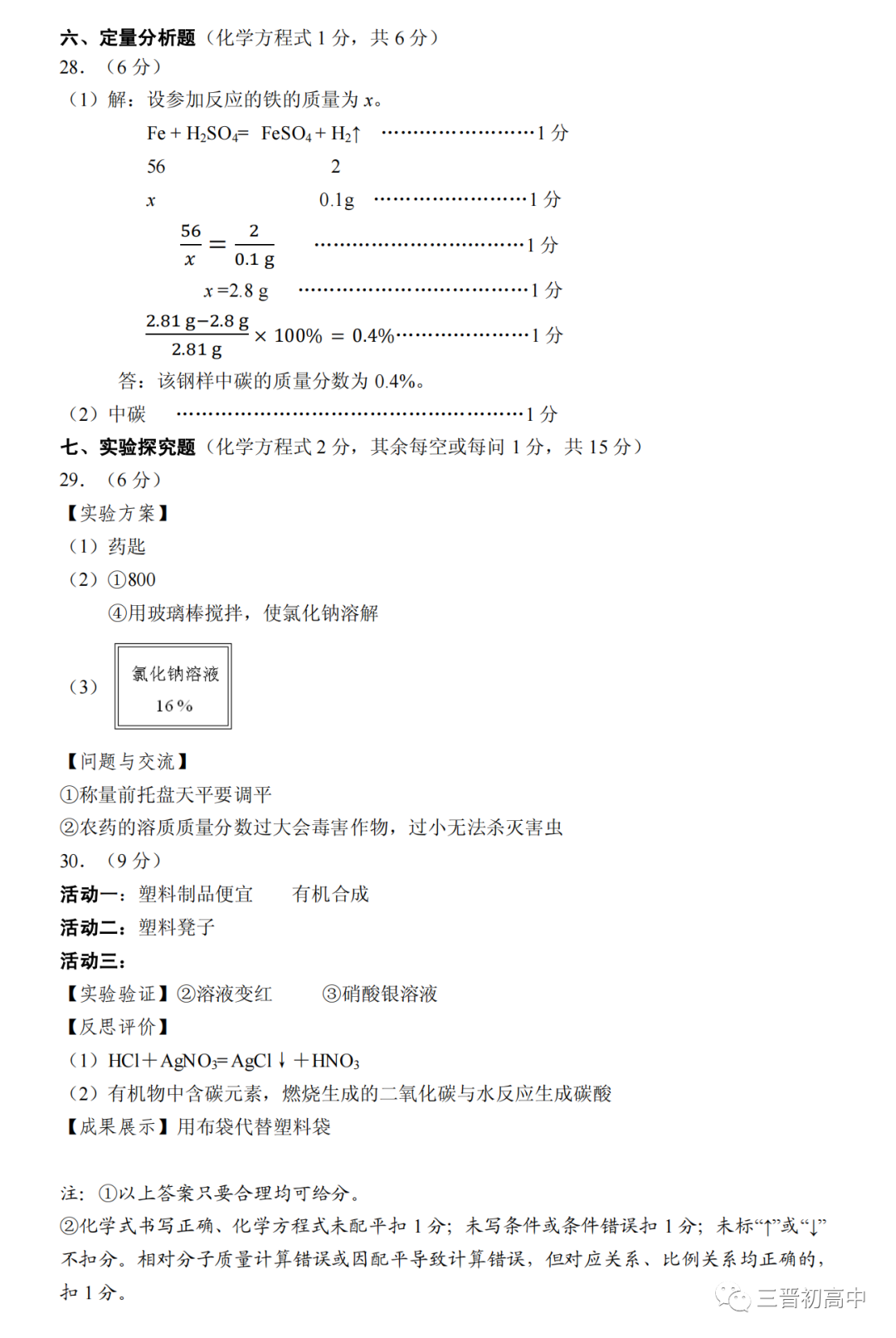 2023中考榆次一模、阳城一模试题答案全