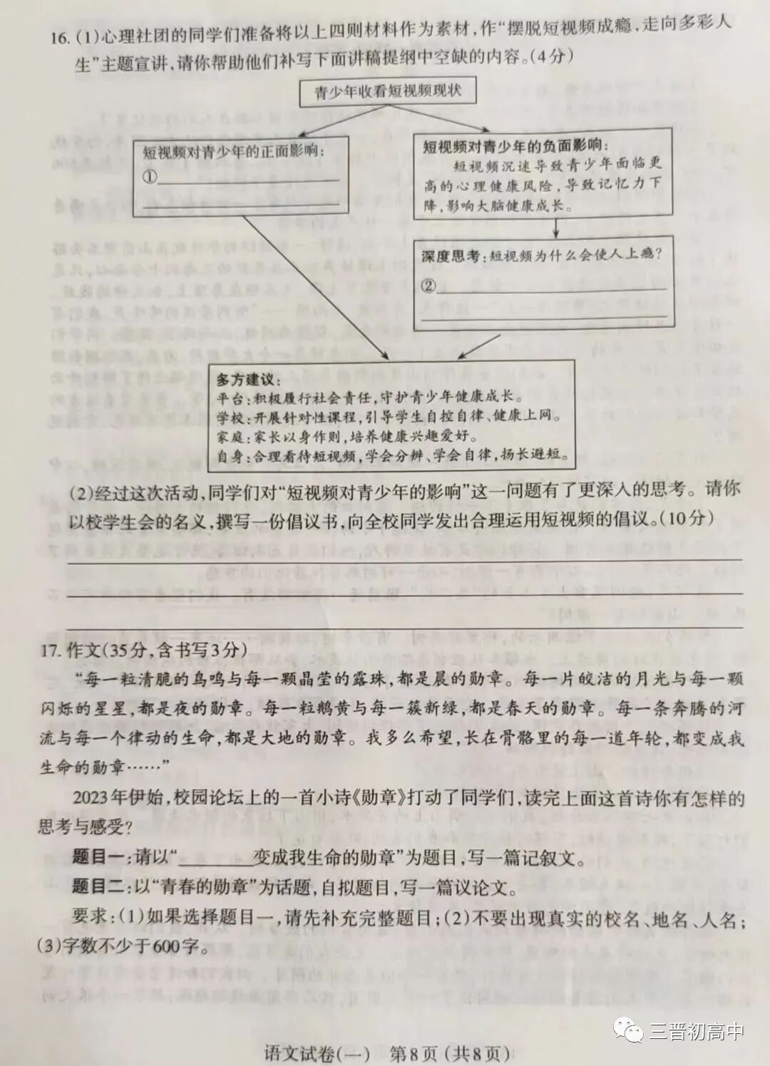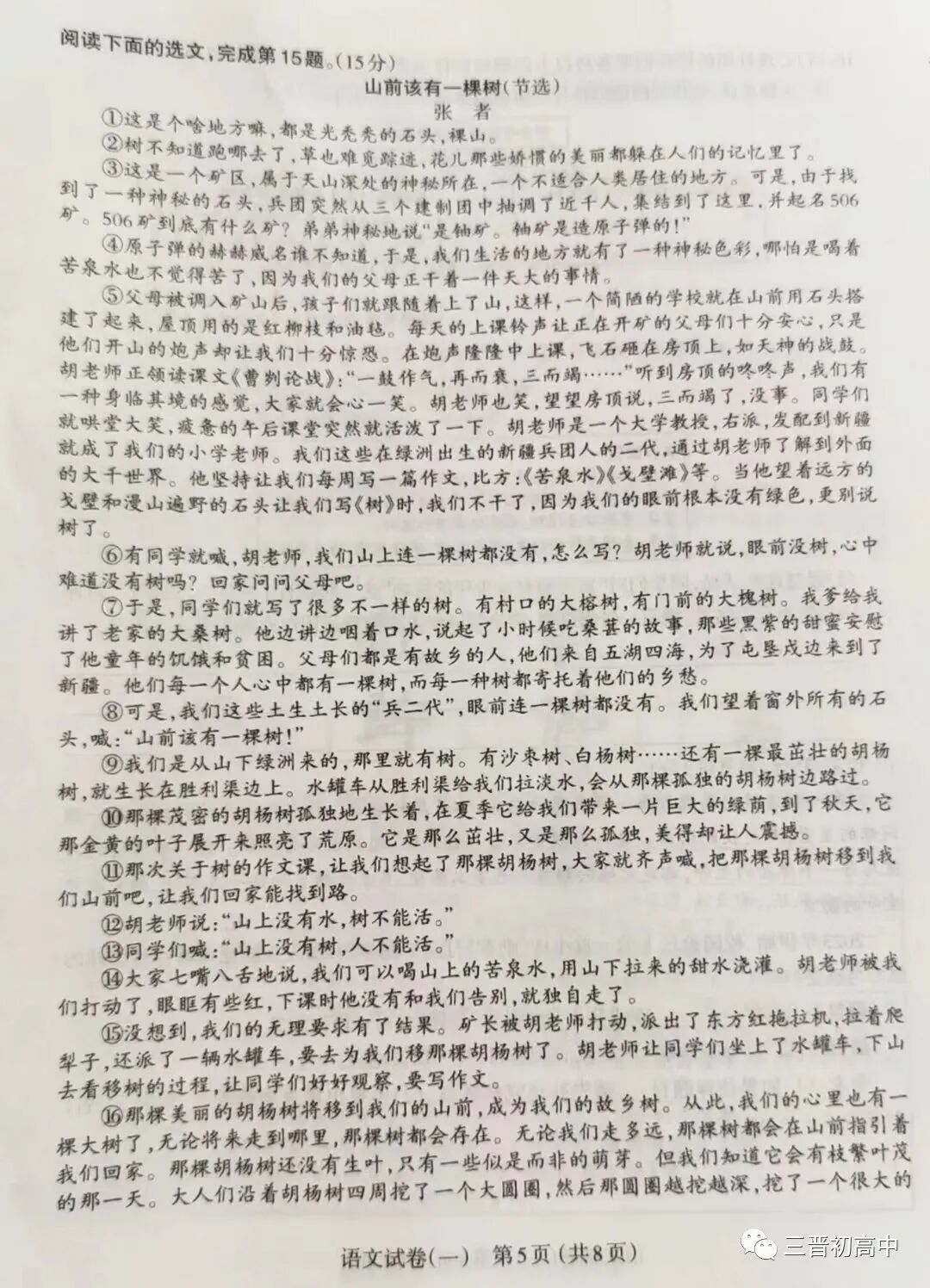 2023太原五中九年级摸底试题及答案全 含英语听力