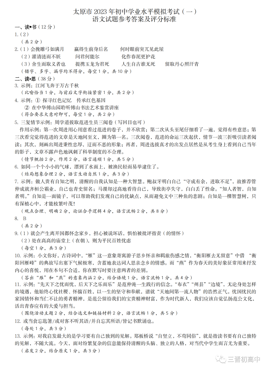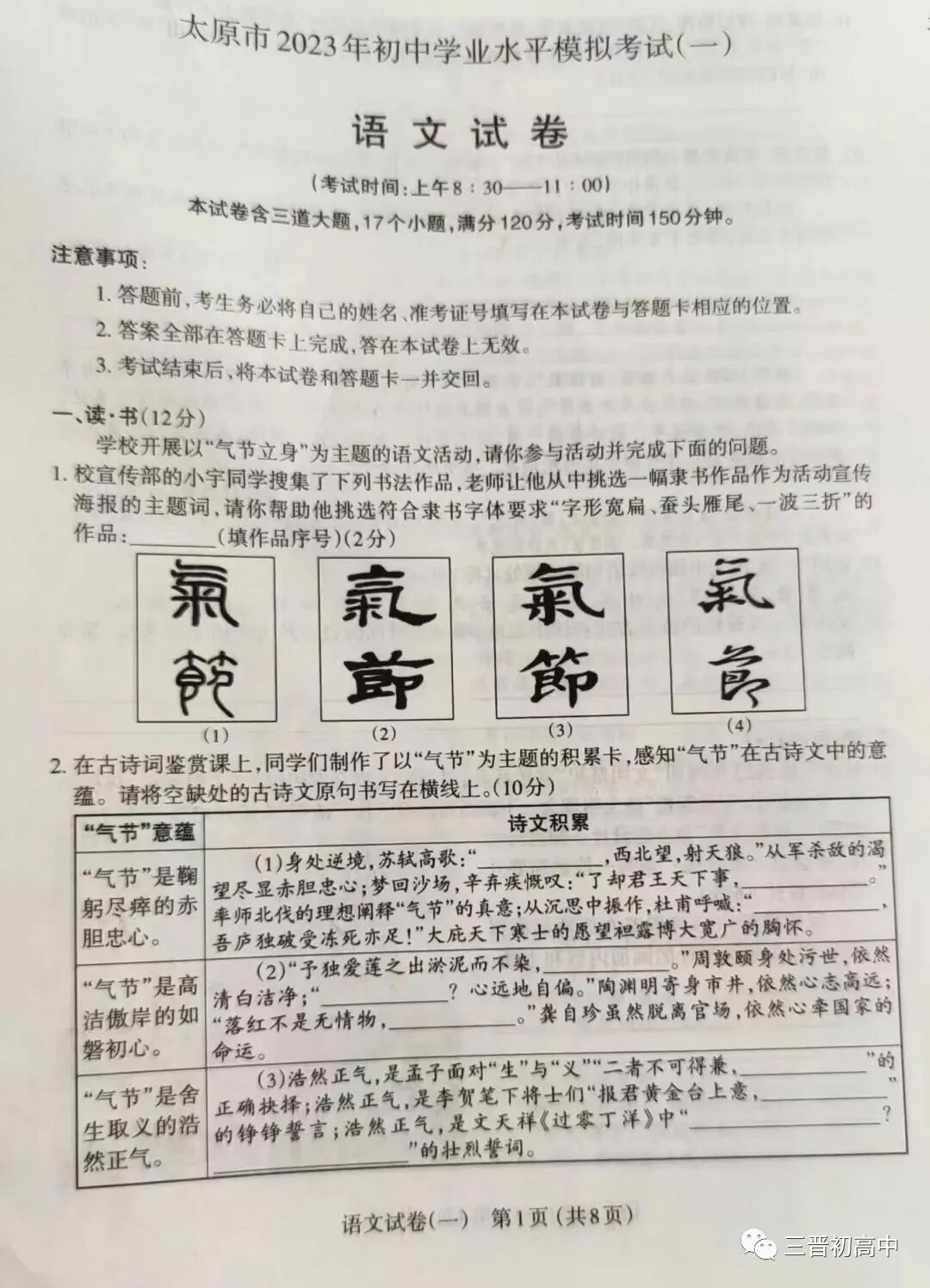 2023年太原市中考一二模考试时间发布 附往年真题下载