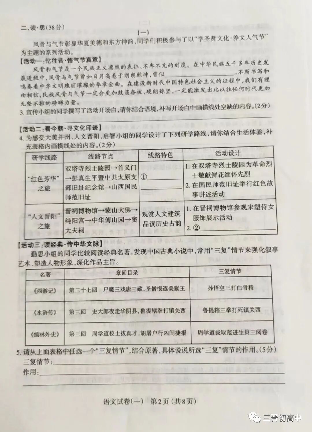 2022山西中考模拟百校联考(二)全科试题及答案已更新