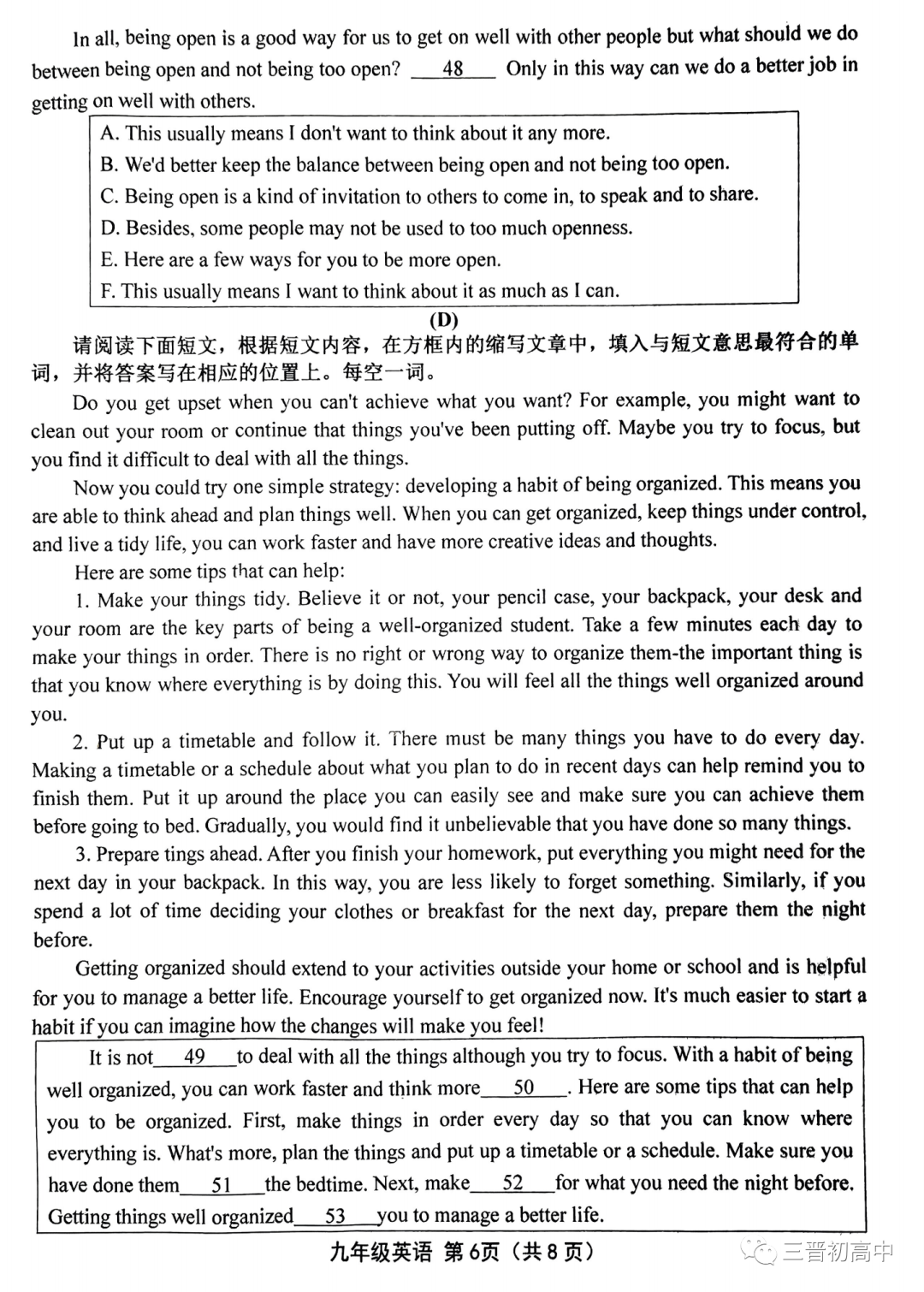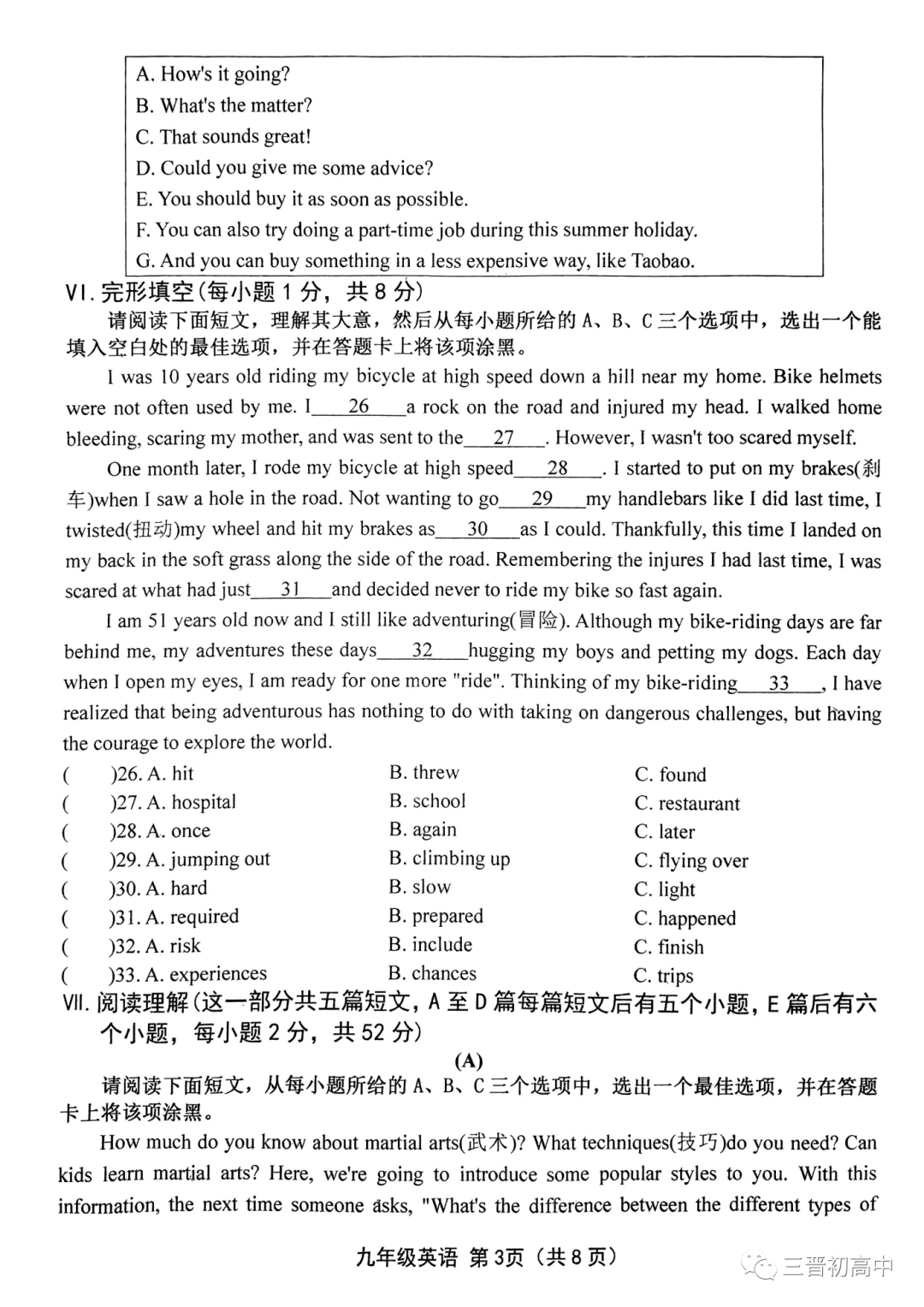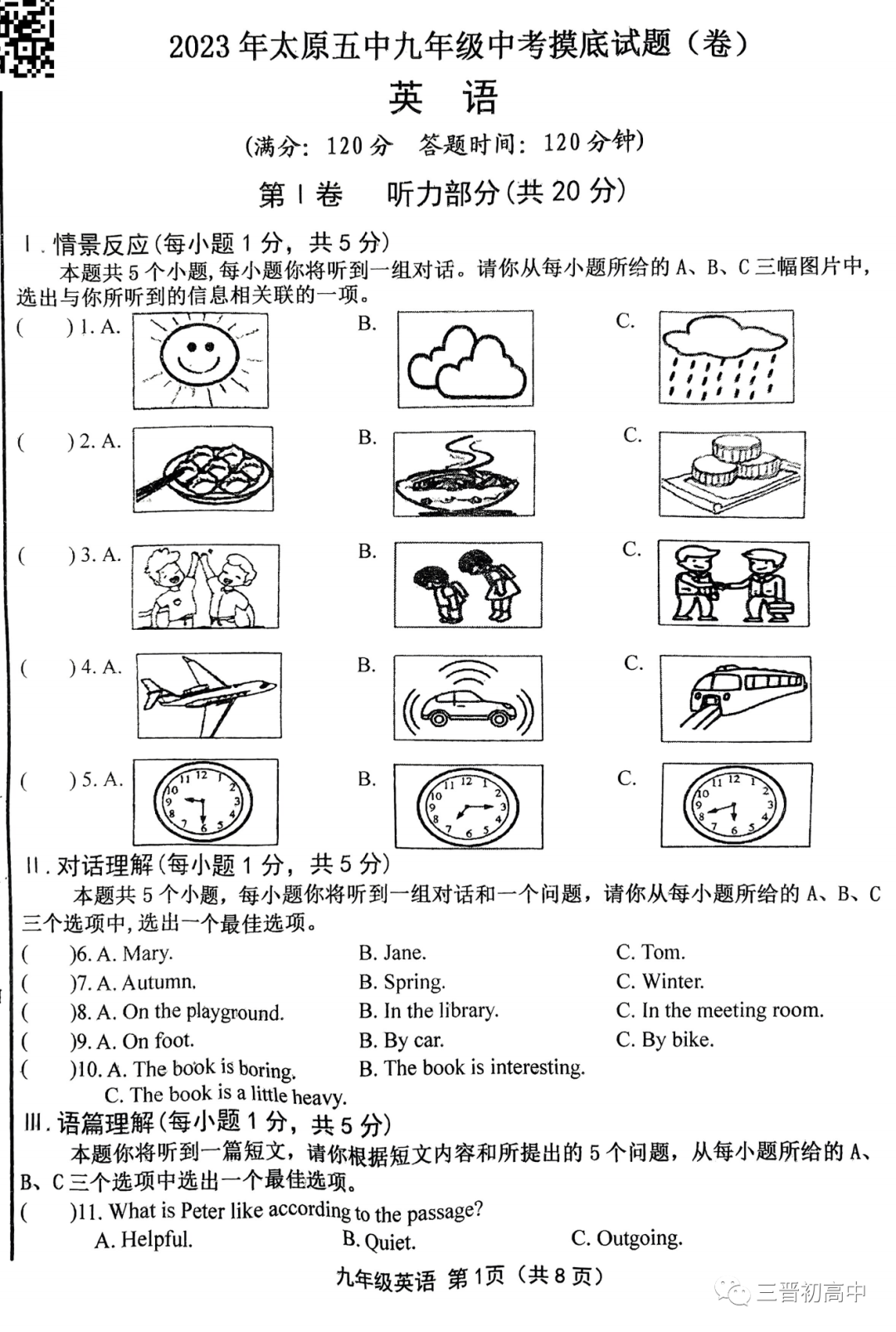 晋一原创卷英语听力 太原五中初三模拟题汇总含英语听力