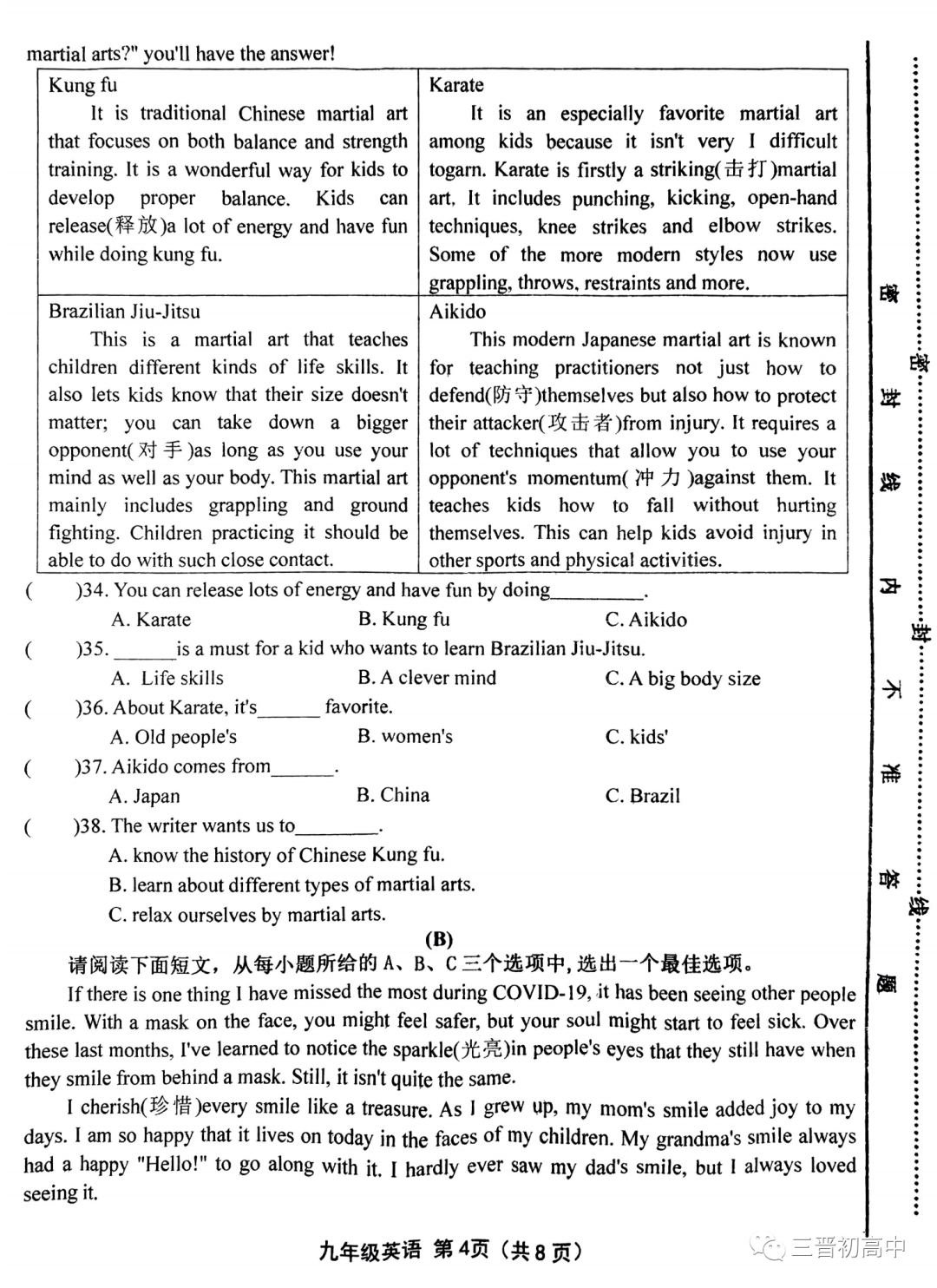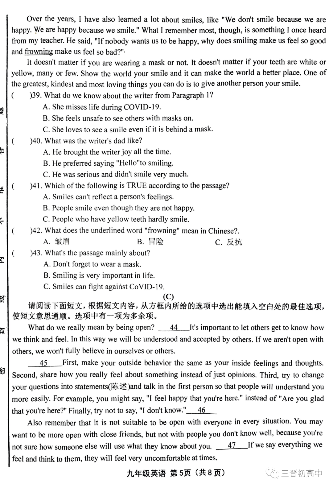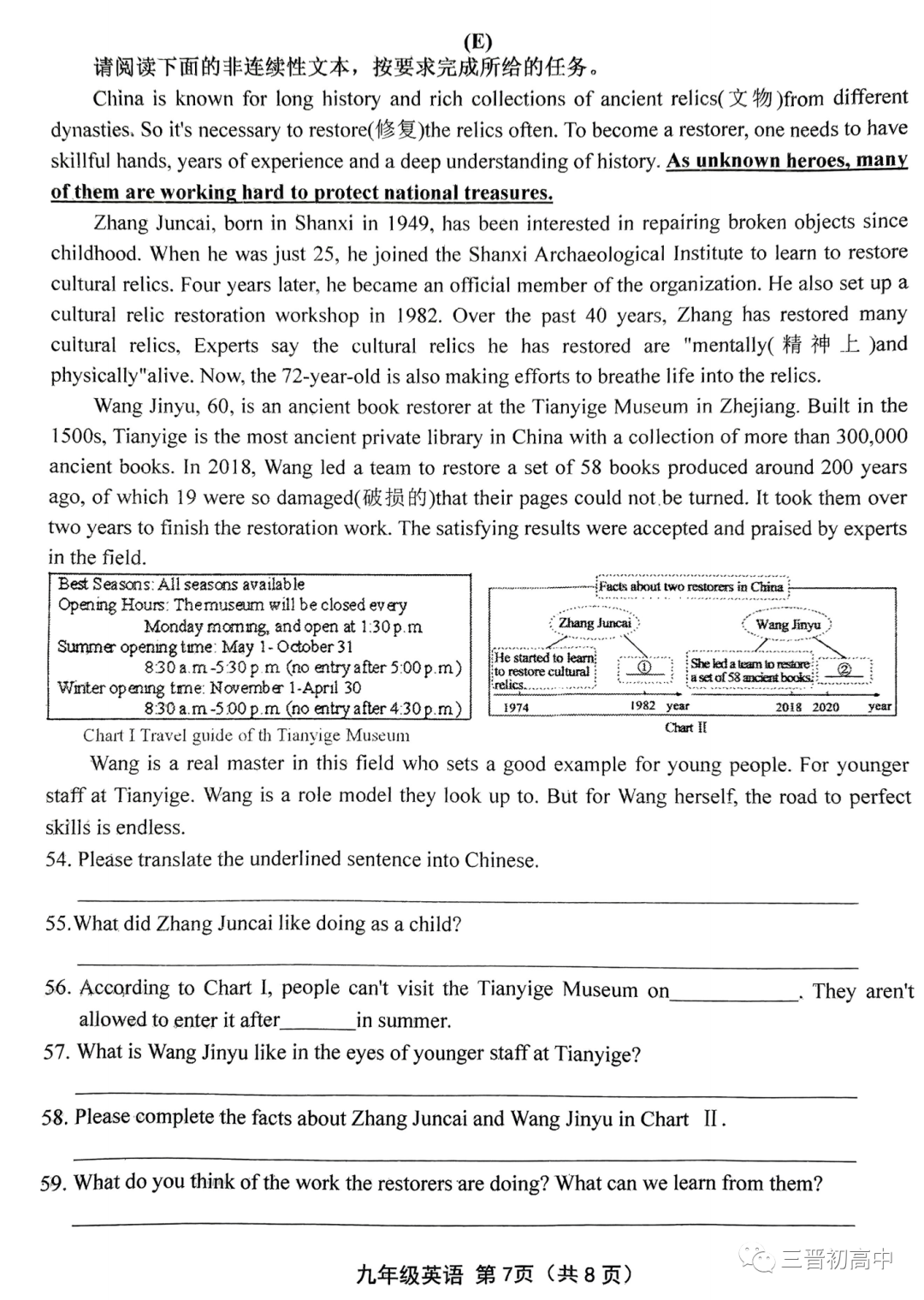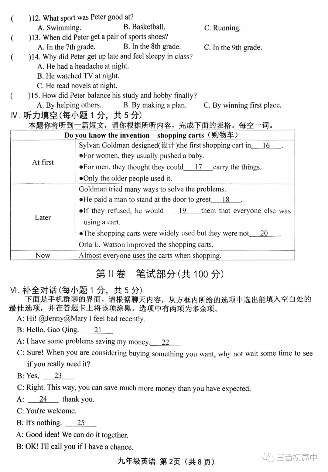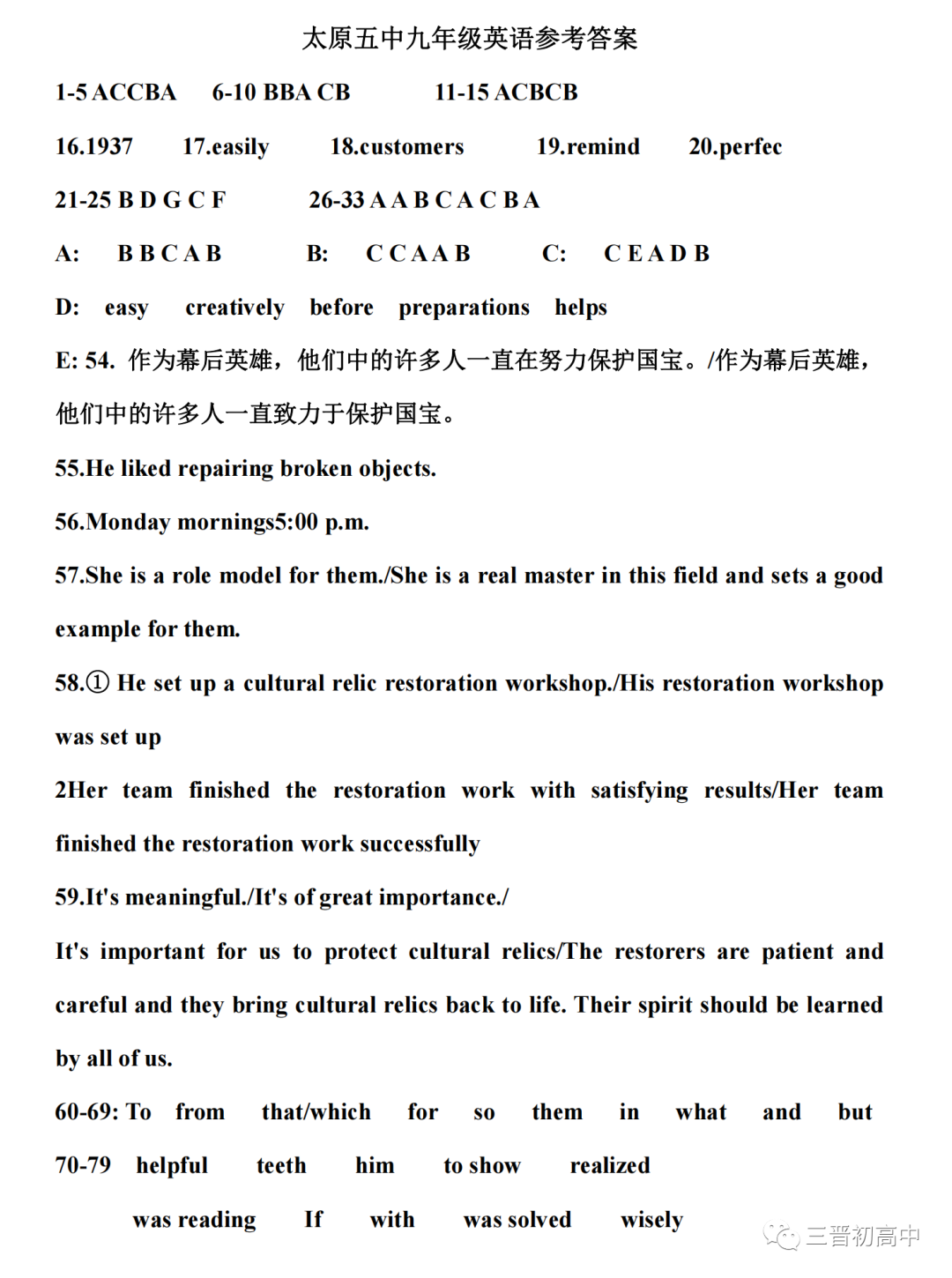 2023年山西省初中学业水平测试信息卷试题答案(含听力)