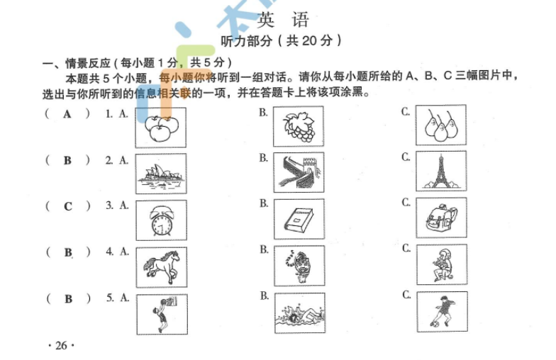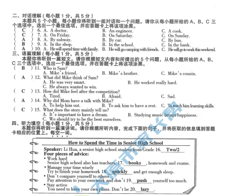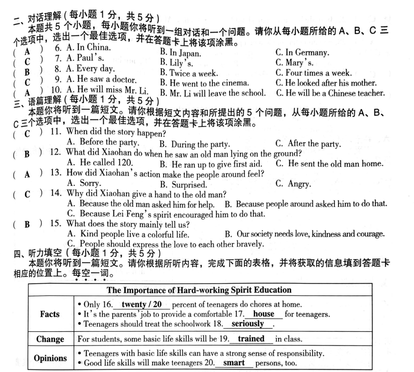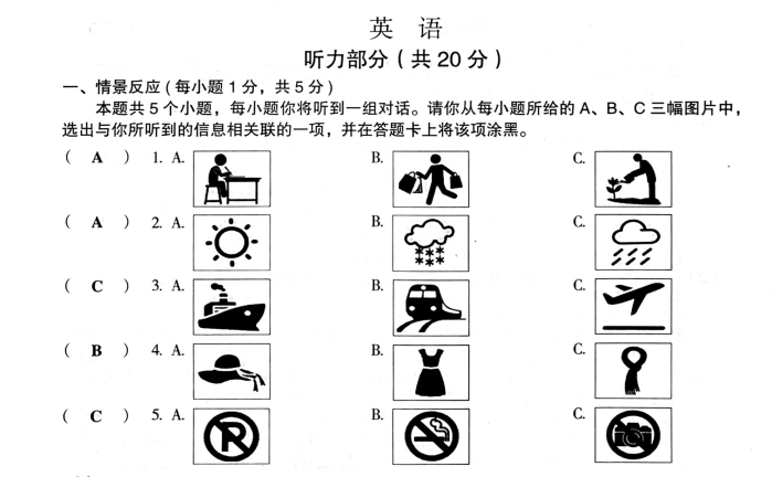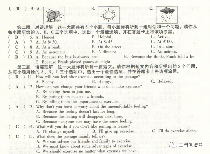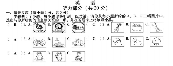 3、2020山西中考真题英语听力