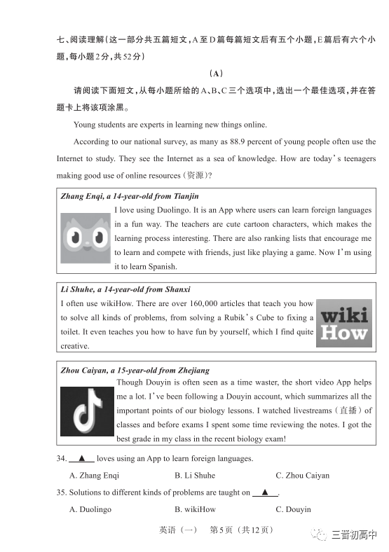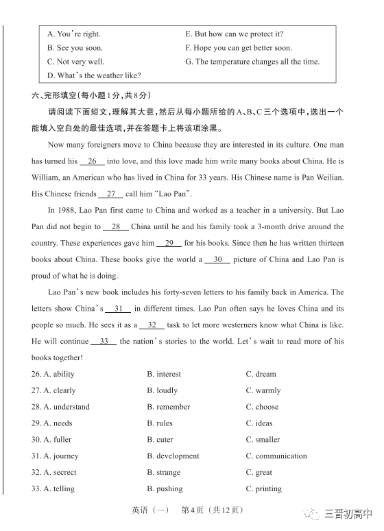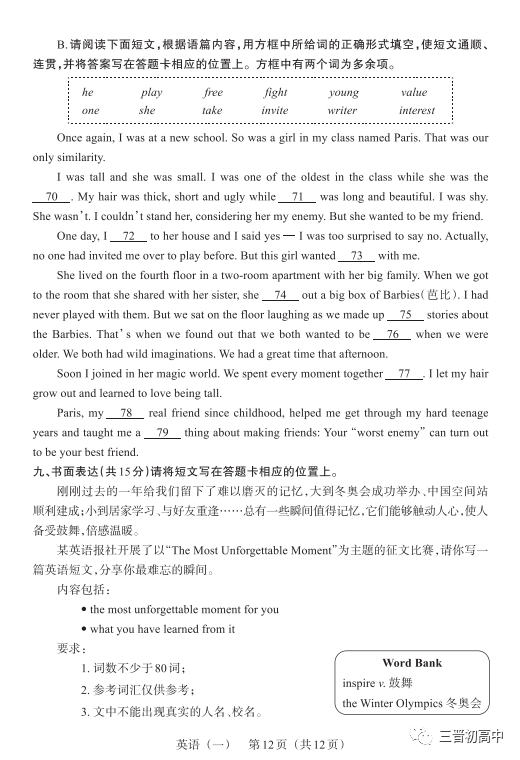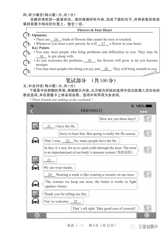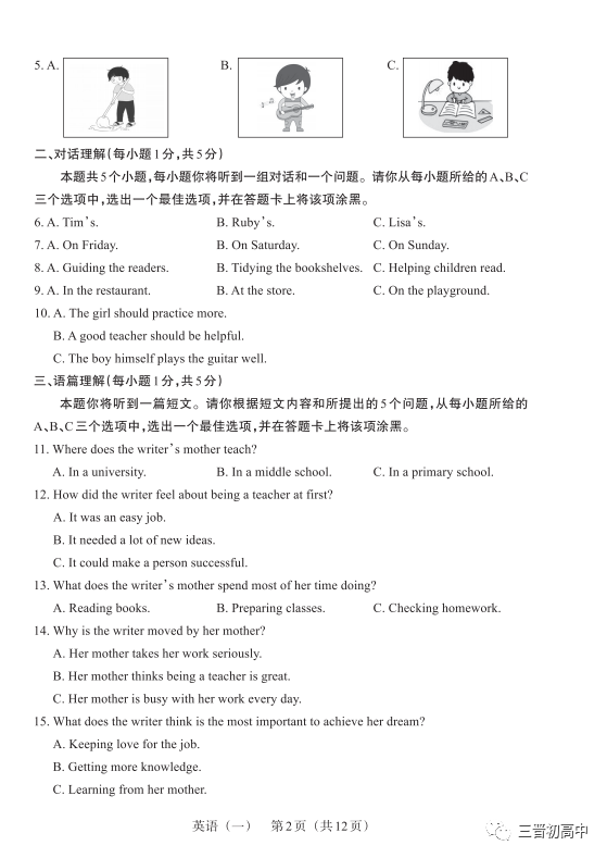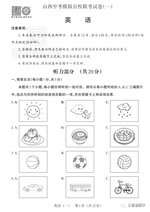 回复【中考听力】获近年山西中考英语听力试题及音频
