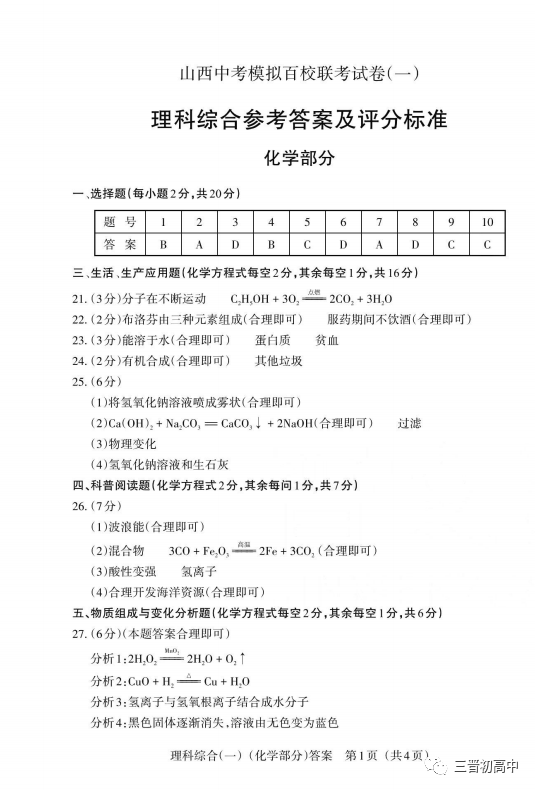 2022山西中考模拟百校联考(二)全科试题及答案已更