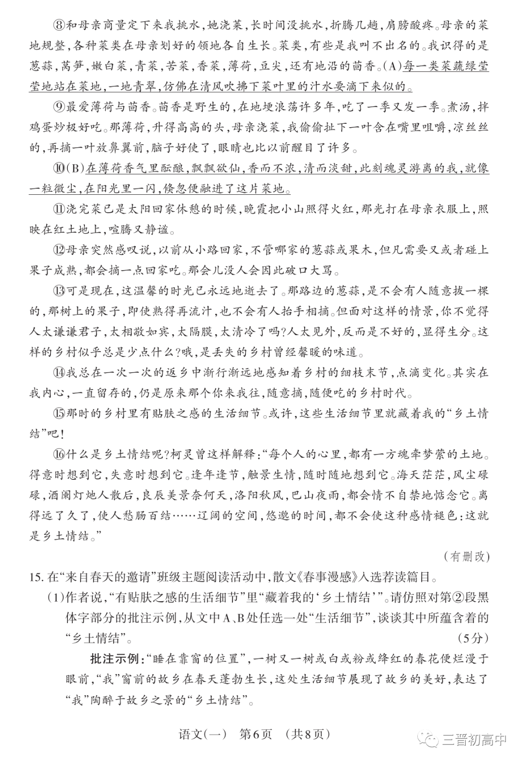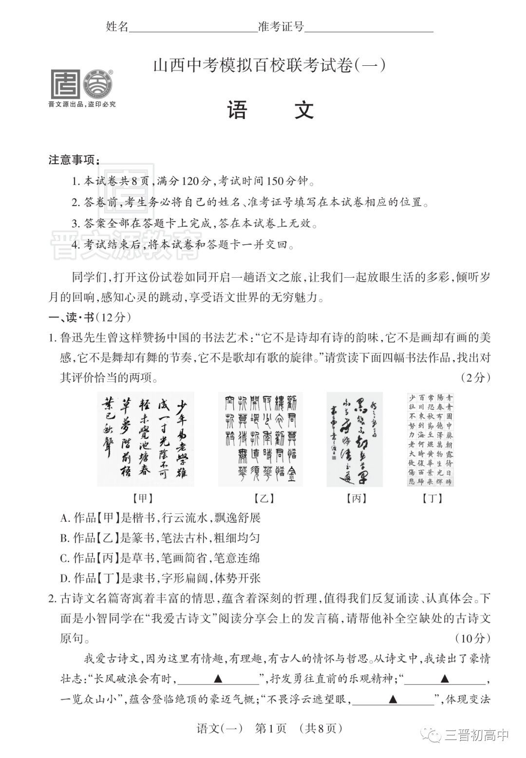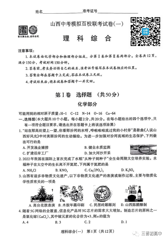 【备战2023山西中考】近六年百校联考(一)试题+答案领取