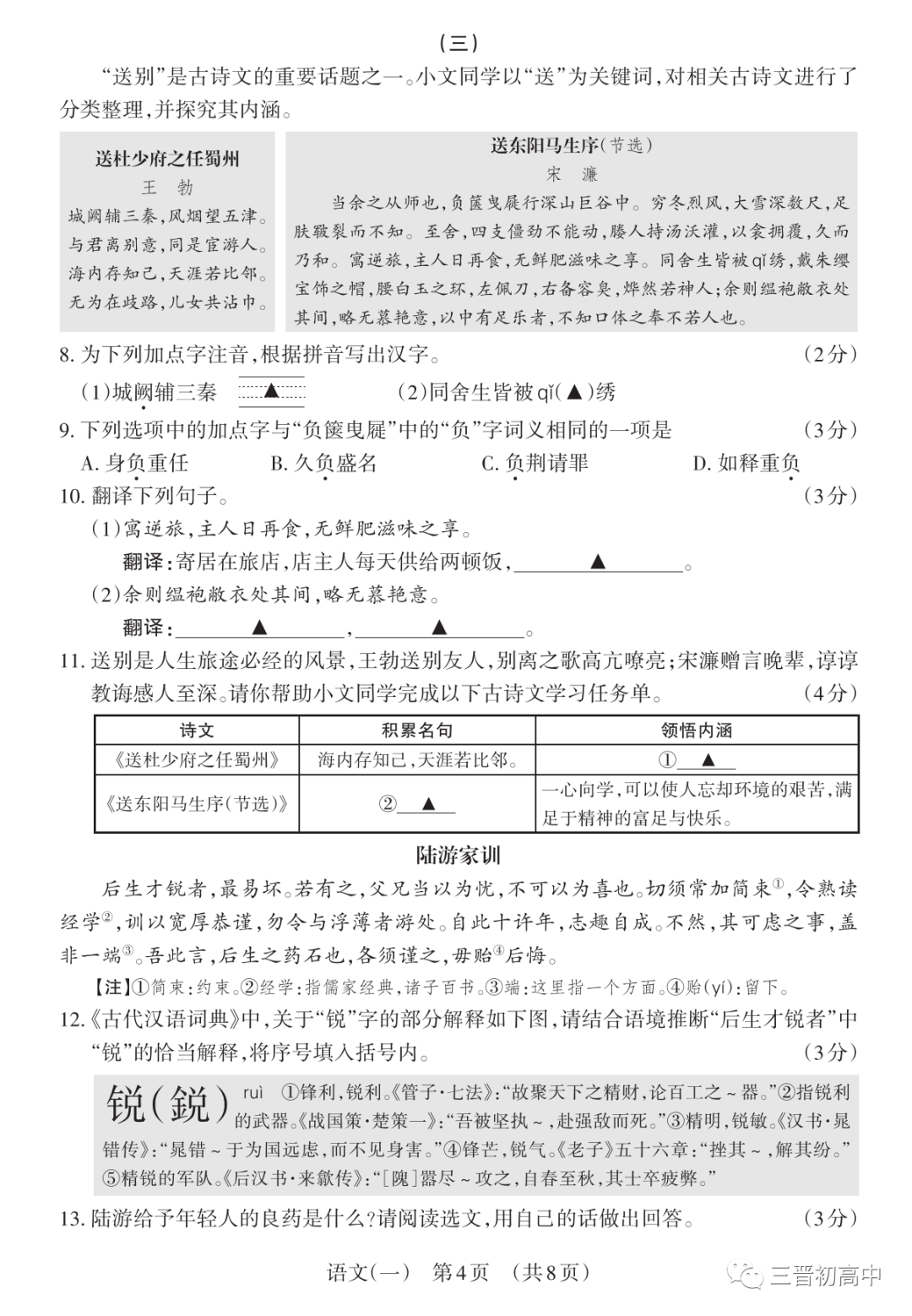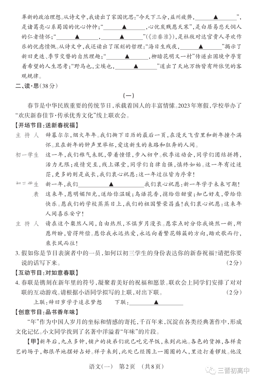 【备战2023山西中考】历年省适应考试题+答案领取