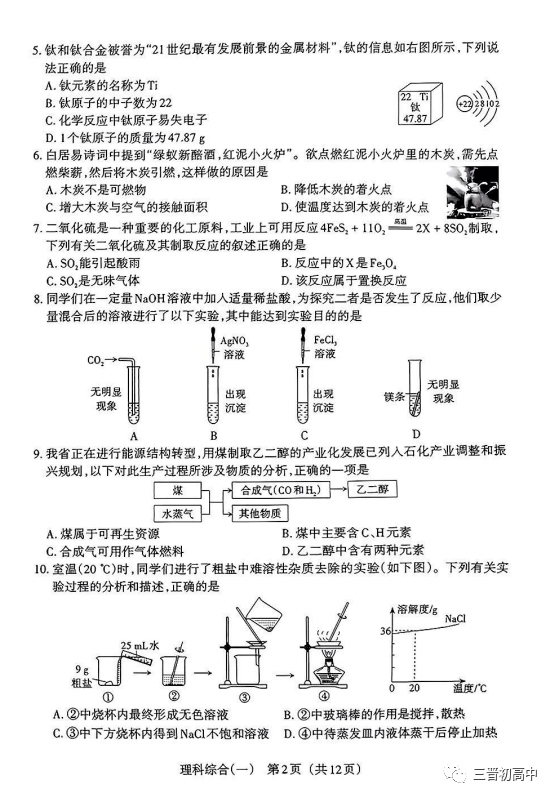 2022山西中考模拟百校联考(二)全科试题及答案已更