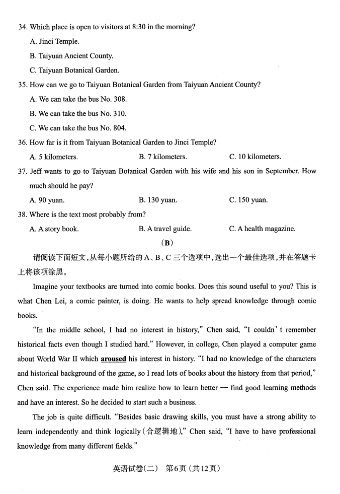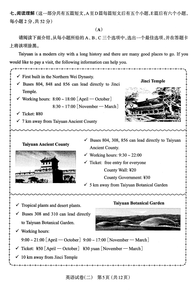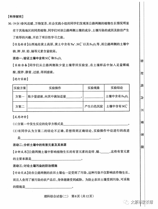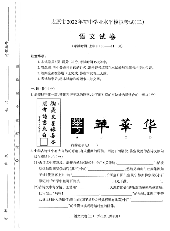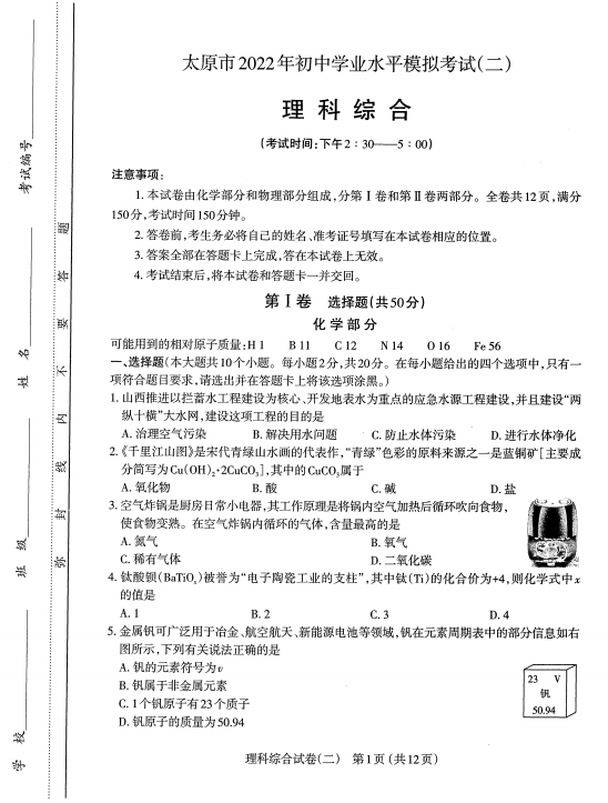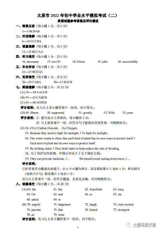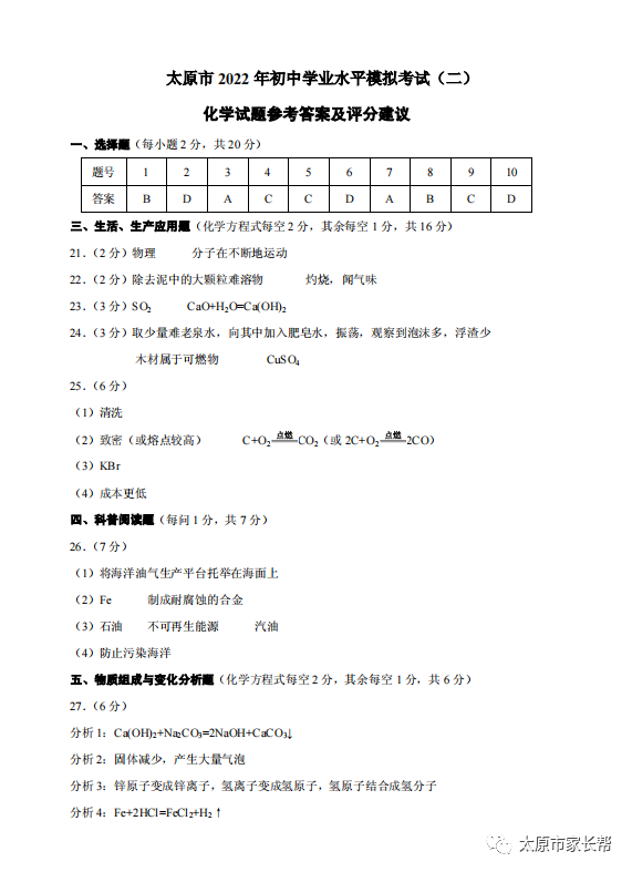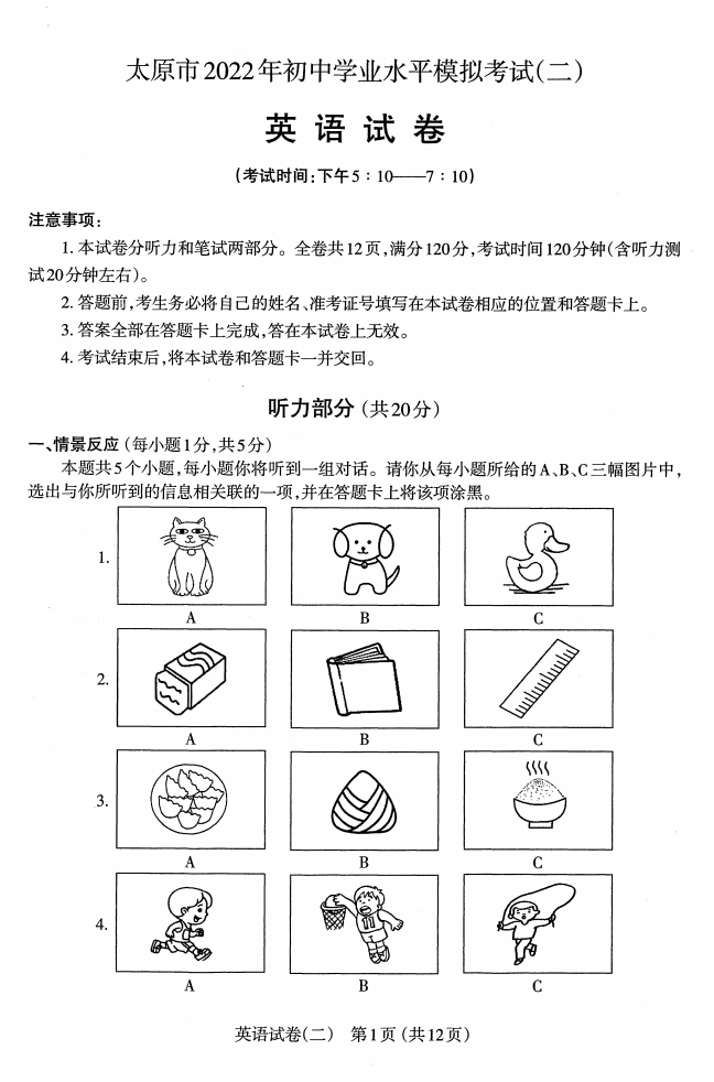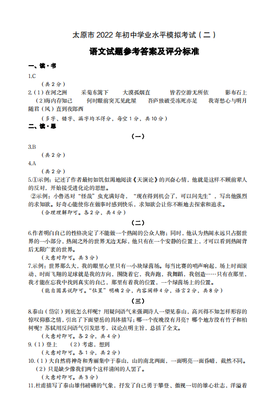 【二模全科】2022年太原二模考试全科试题及答案已更新
