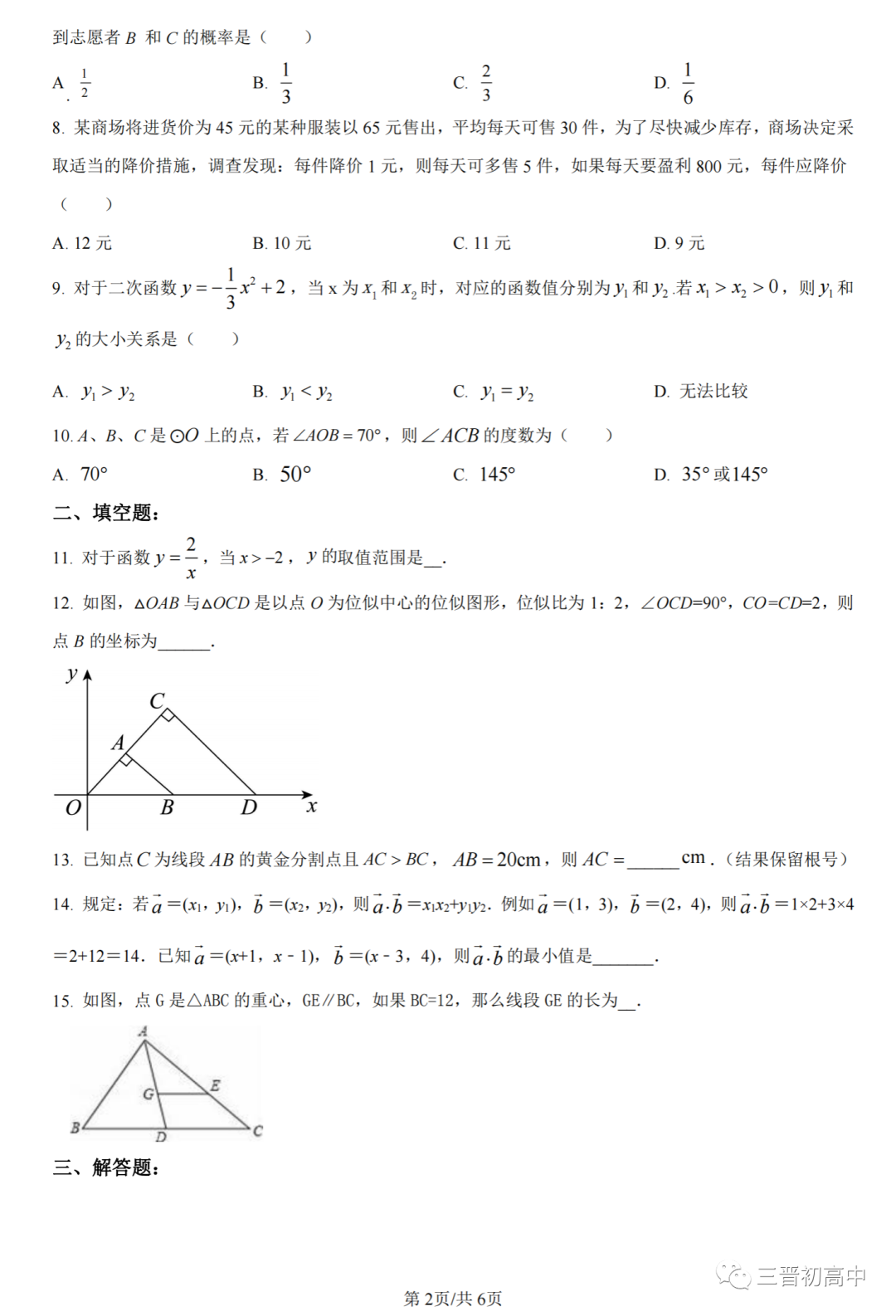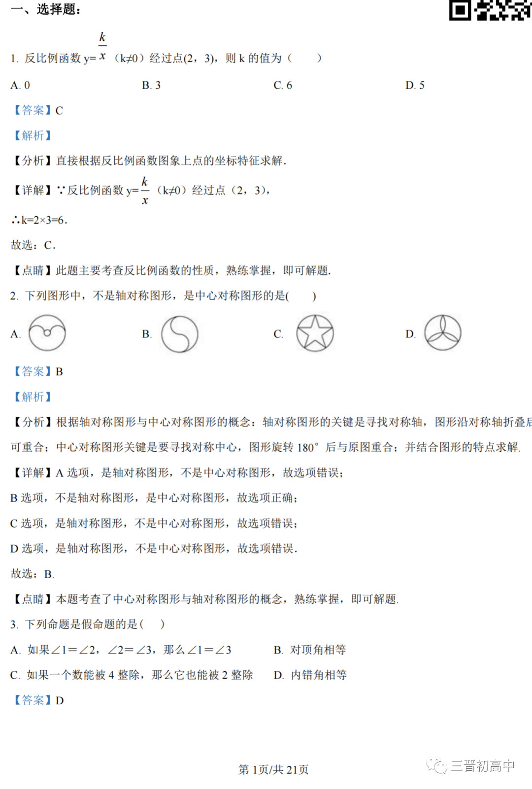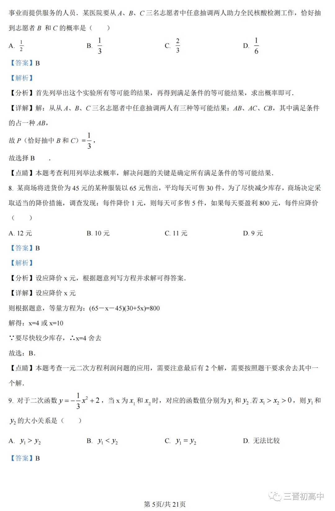 回复【省适应考】获取近年山西中考考前适应性训练历年真题电子版