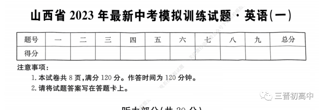 2023版《中考英语听力训练》 汇总近8年山西中考听力音频(真题下载)