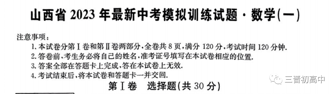 山西省2023年中考模拟一模二模 三模试题及答案汇总