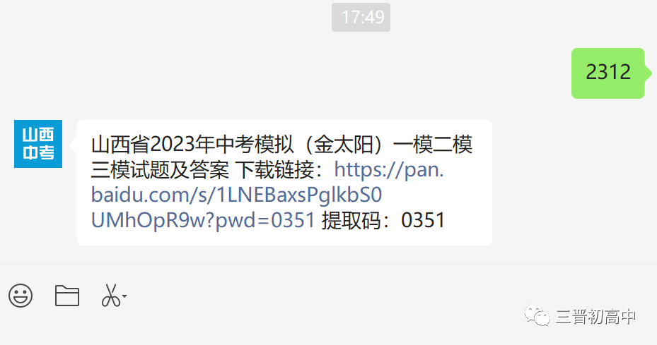 回复【中考真题】获山西省近10年中考真题电子版