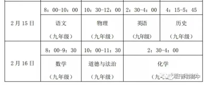 太原2022-2023 学年初高中第一学期期末考试安排(2月13-17日)