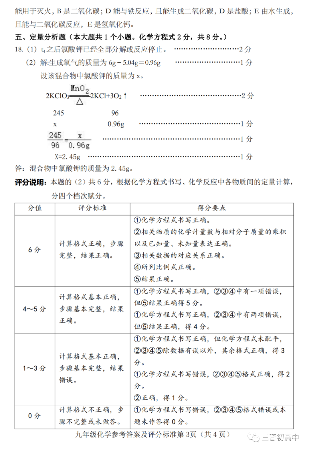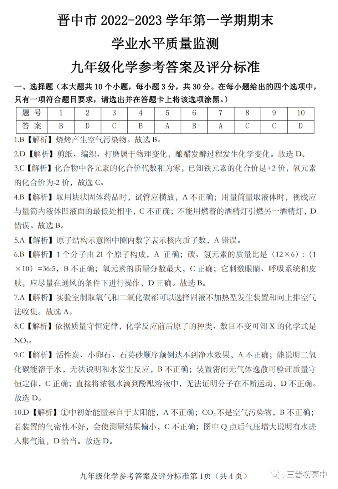 晋中市2022-2023学年第一学期期末学业水平监测试题答案