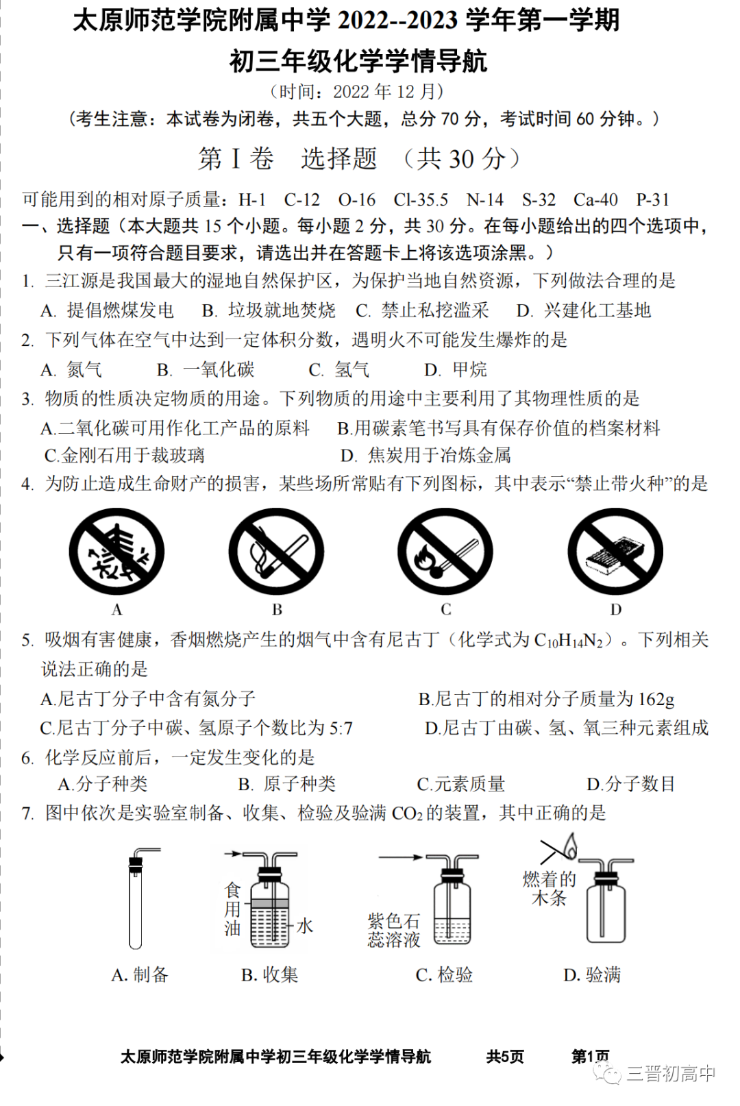 太原师院附中22-23学年第一学期初三学情导航(12月月考)