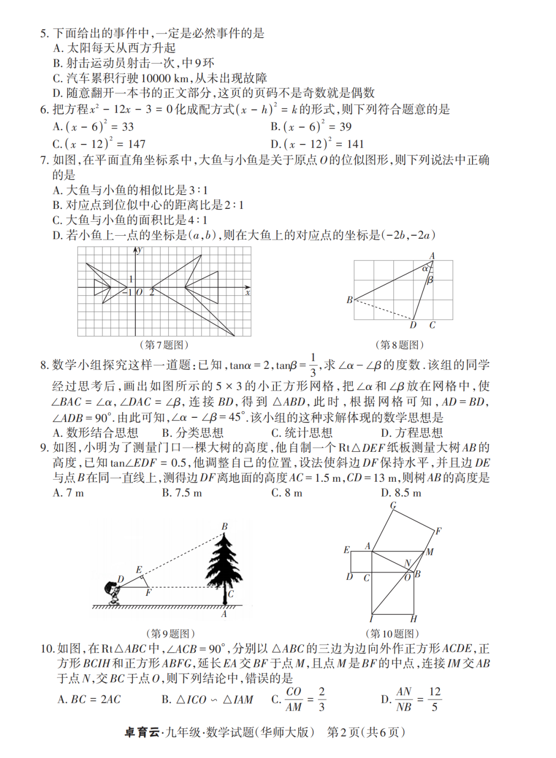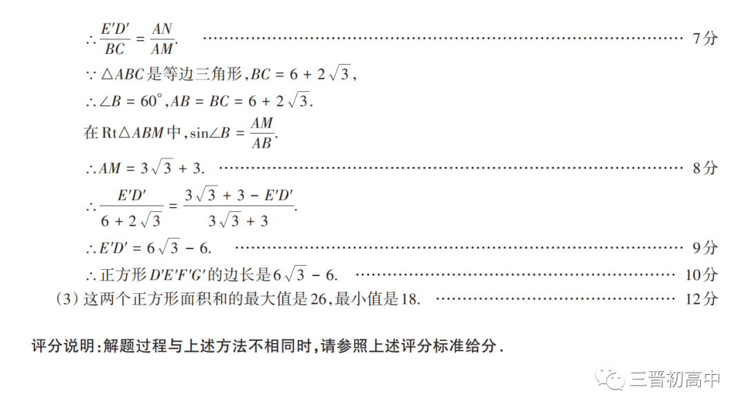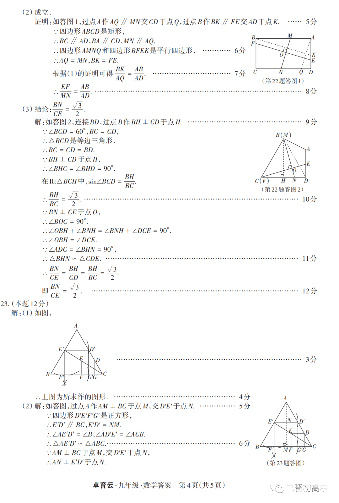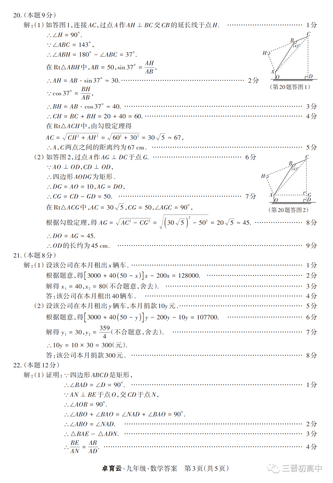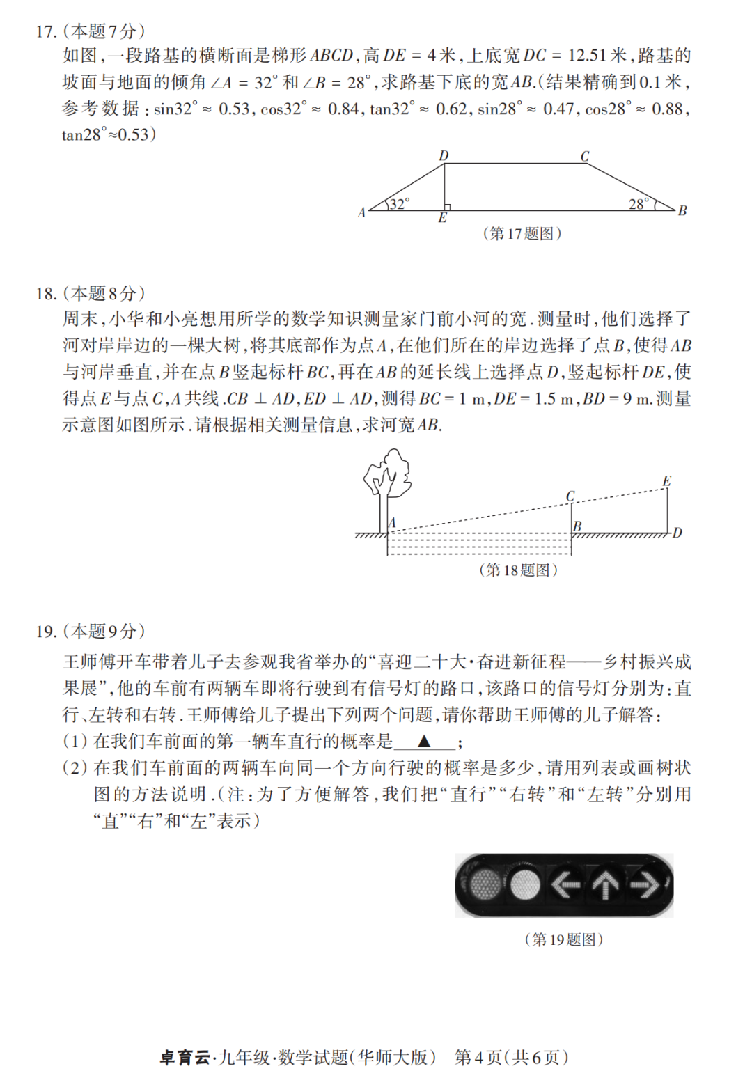 卓育云22-23中考学科素养自主测评卷(三)数学(华师大)试题及答案
