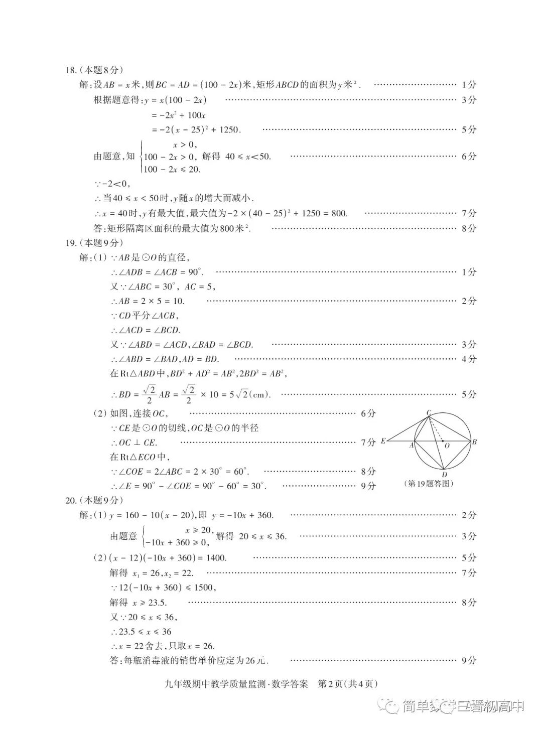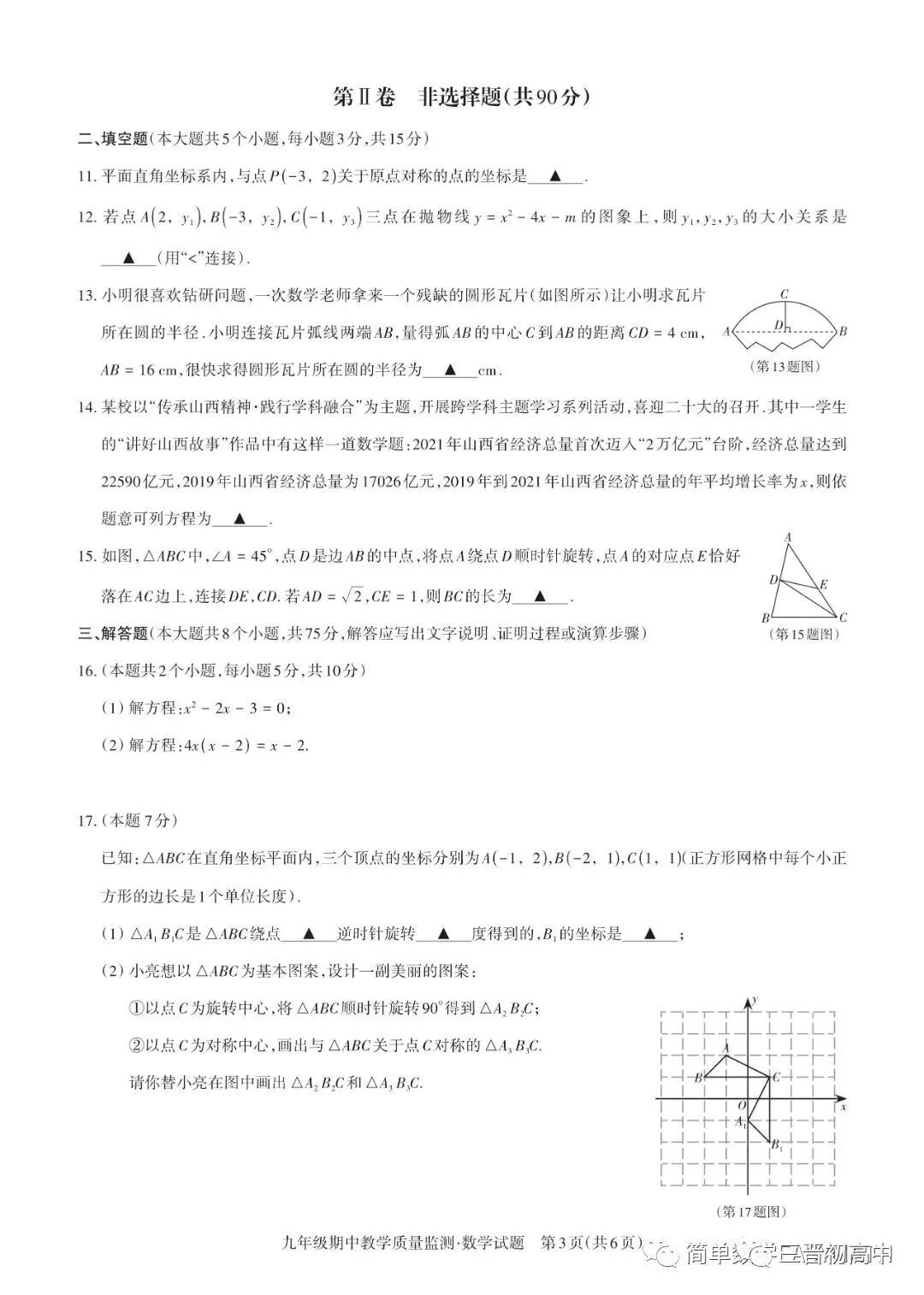 初三数学试题及答案 人教版