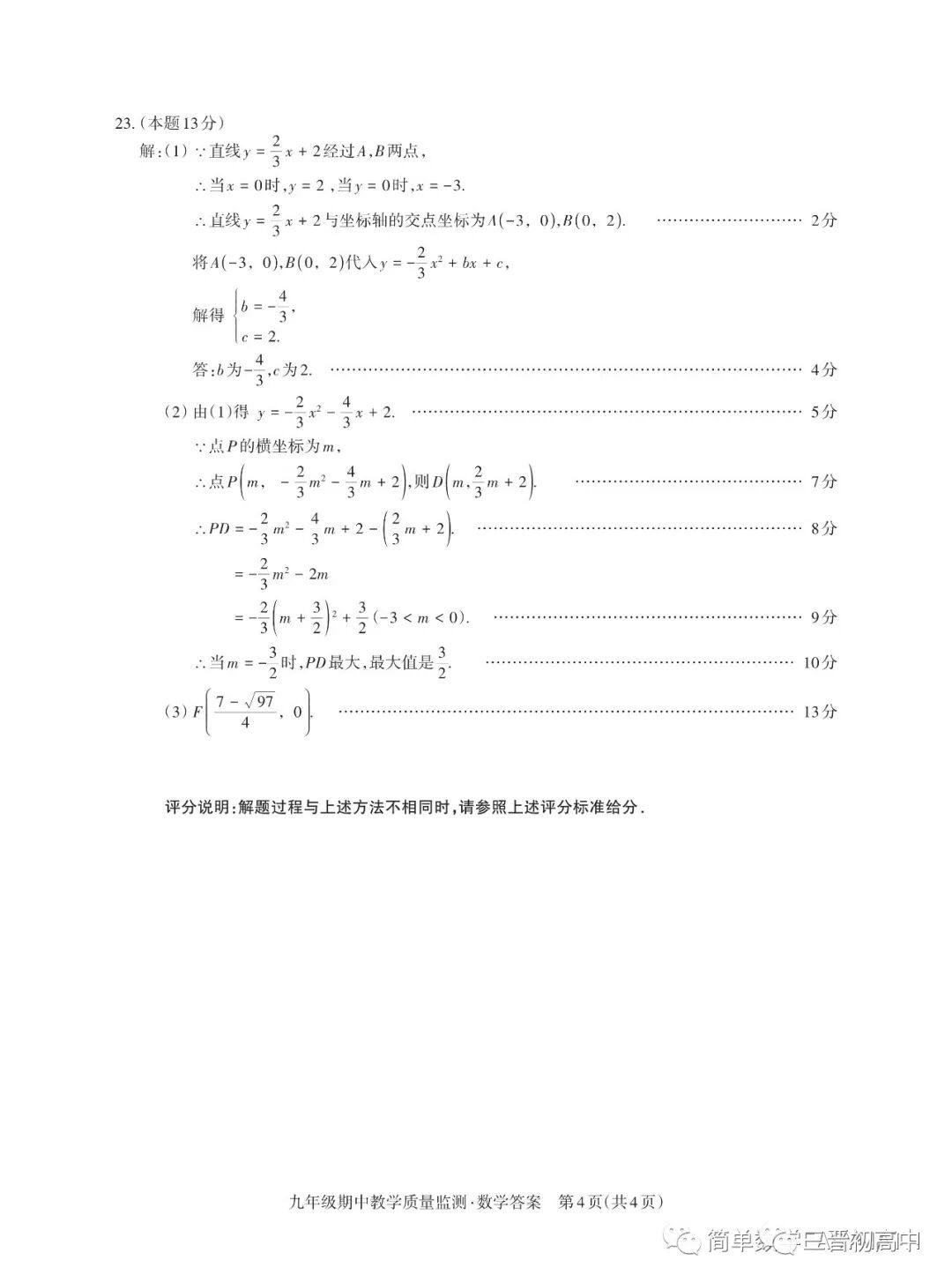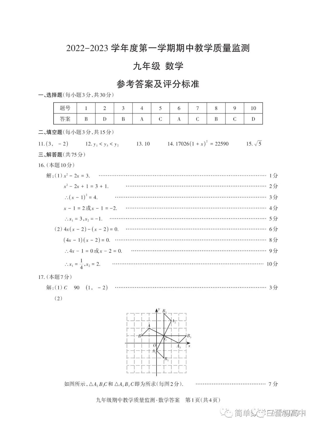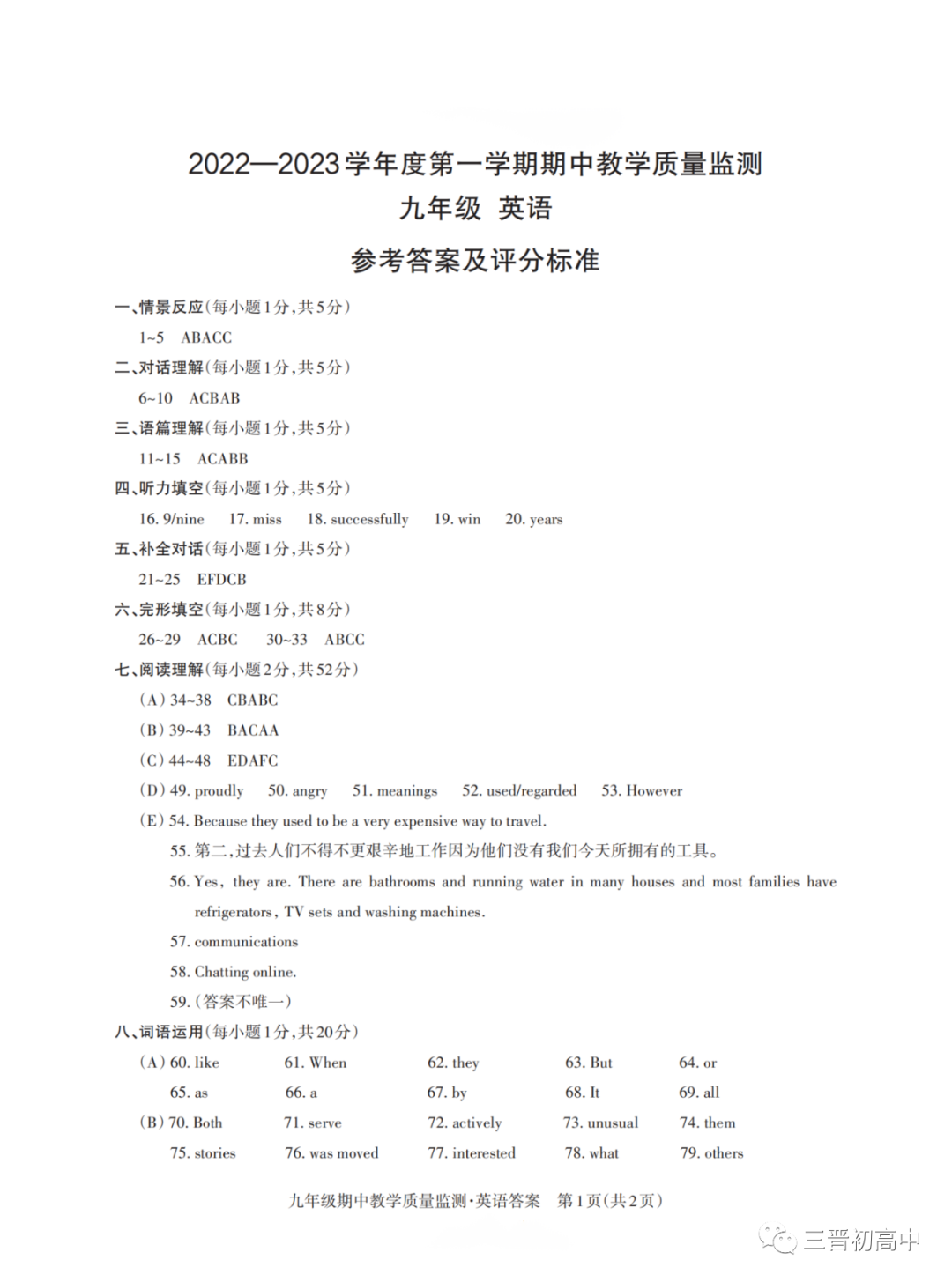 山西省实验中学2022-2023学年第一学期初三期中试题答案汇总