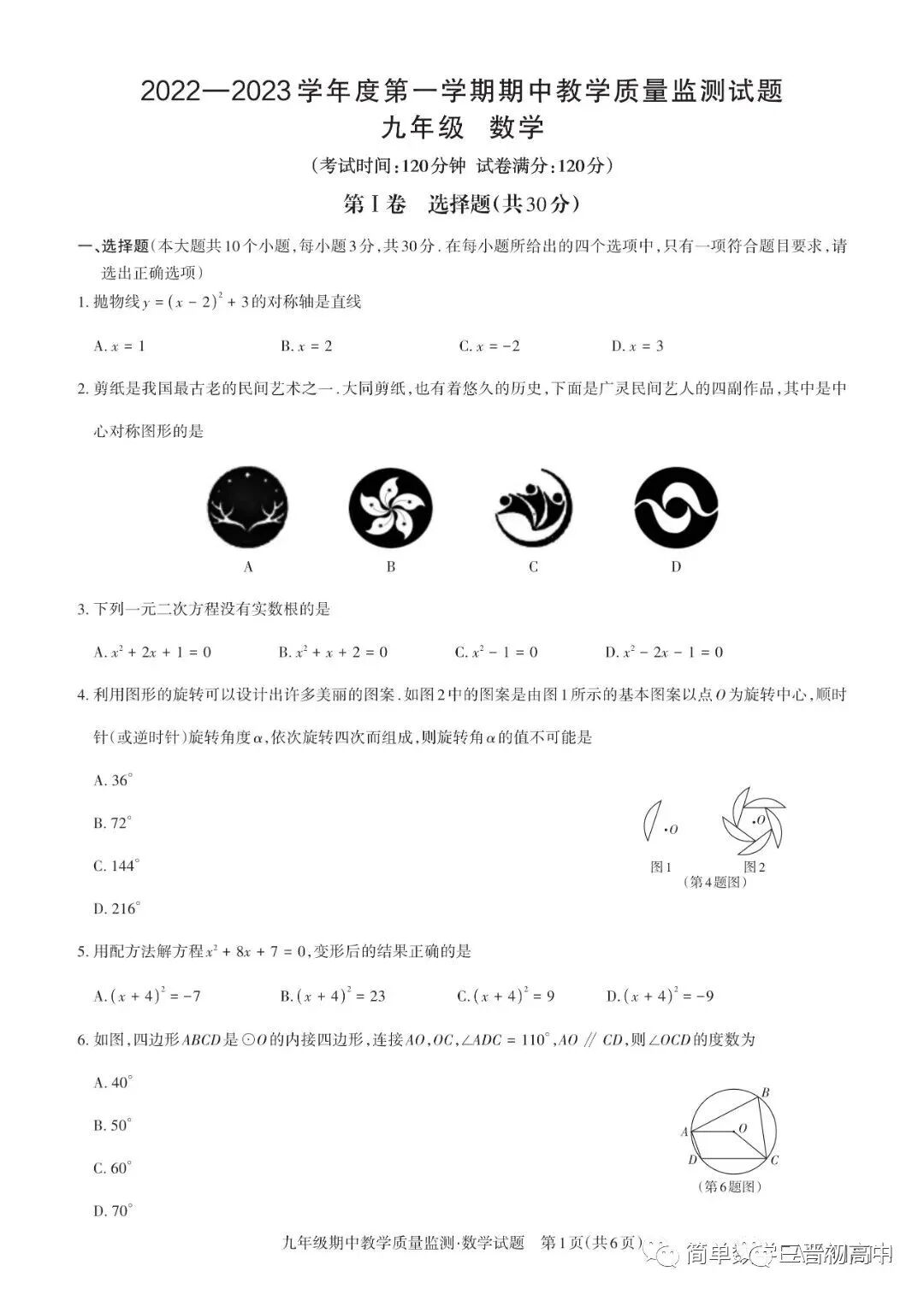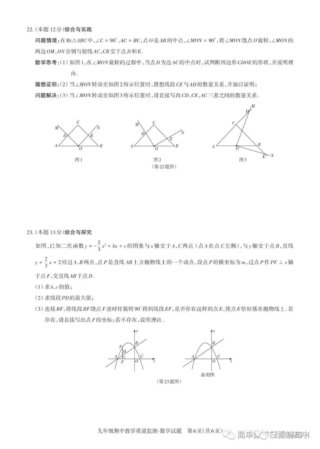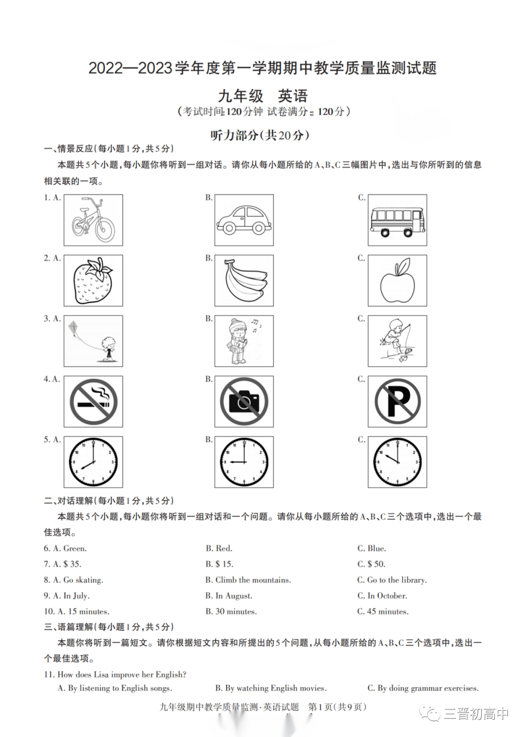 山西大同22-23学年第一学期初三期中质量评估试题全科试题及答案