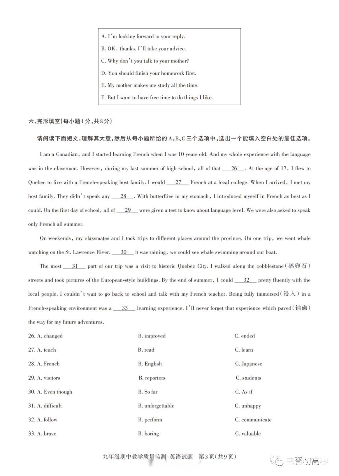 2、回复“初三期中”即可获取下载电子版