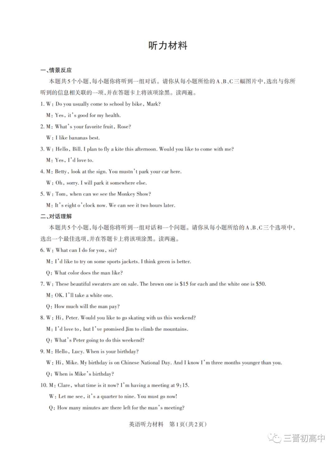 1、点击关注“三晋初高中”公众号