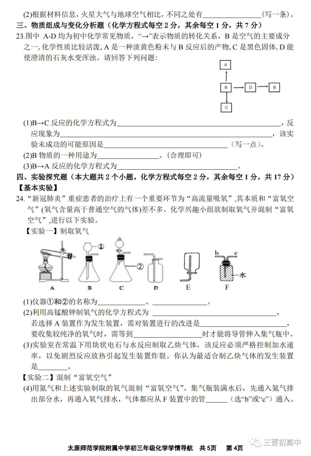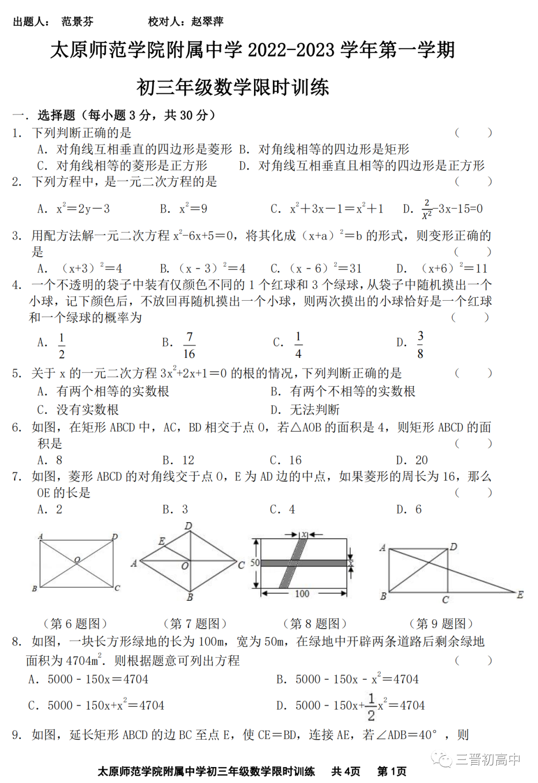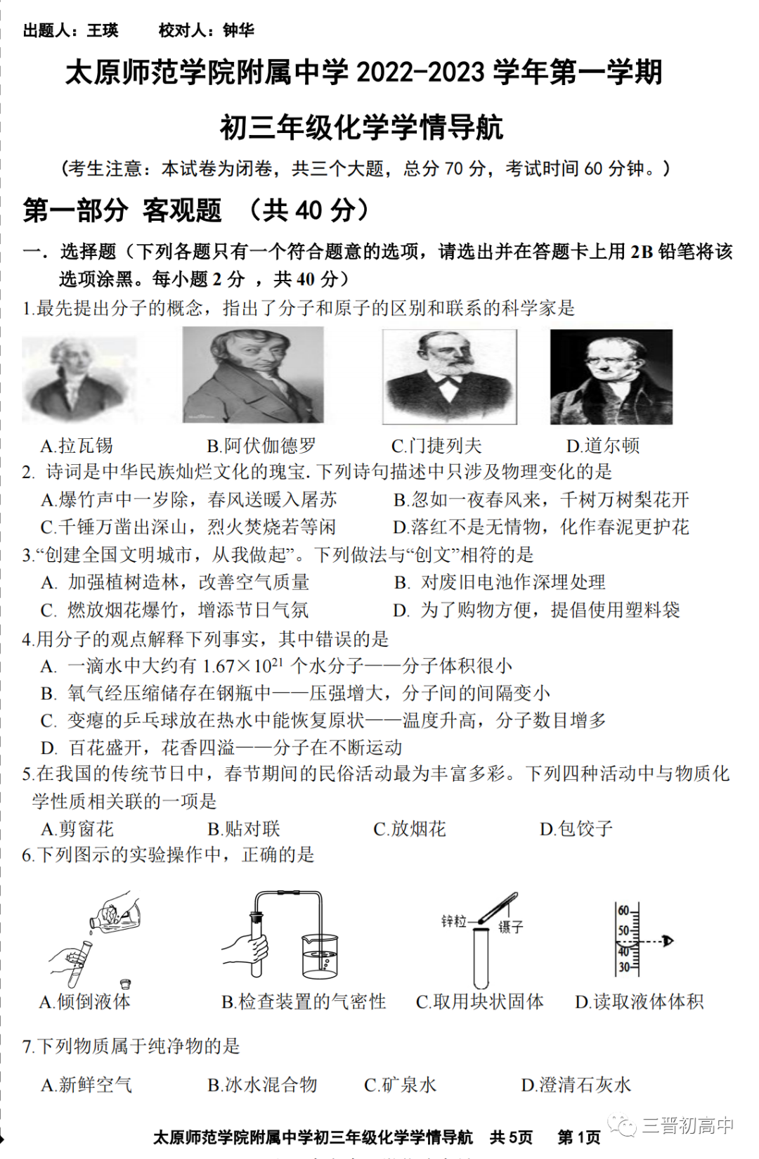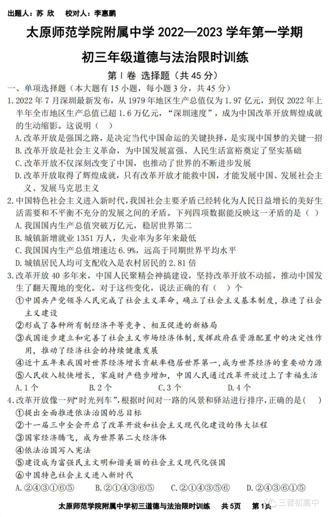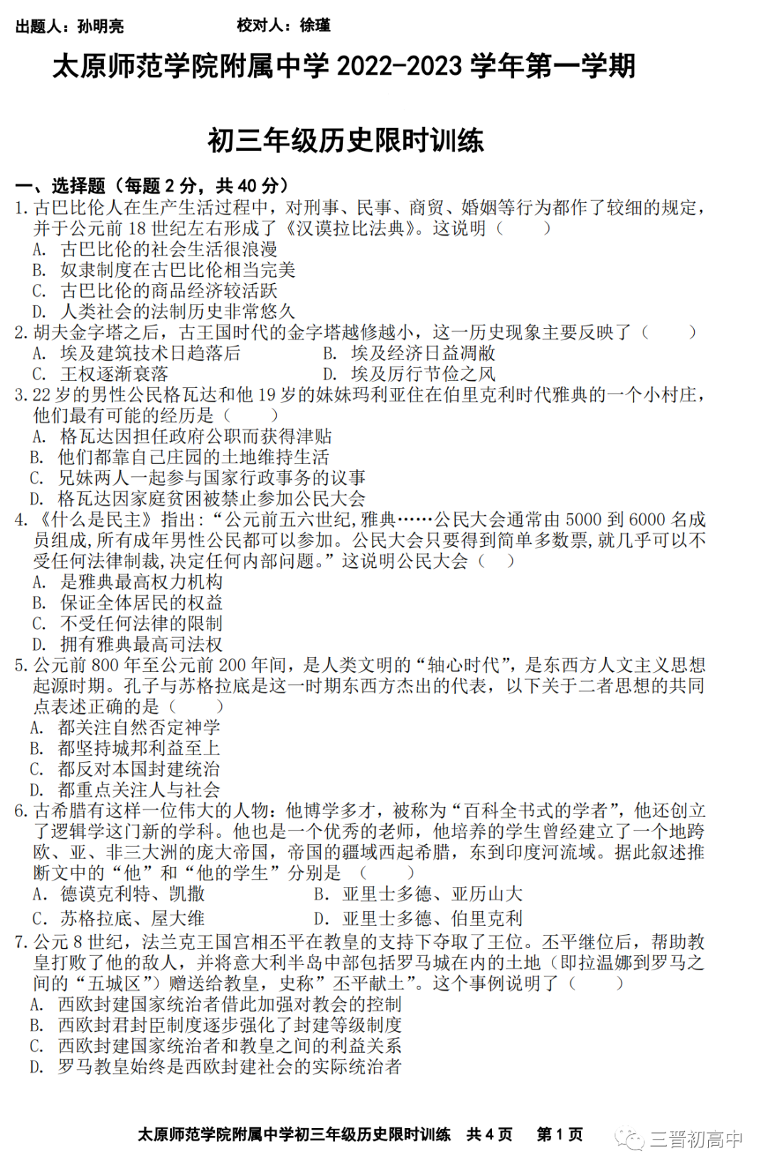 【初三月考】太原师院附中22-23学年第一学期10月月考全科试题及答案汇总