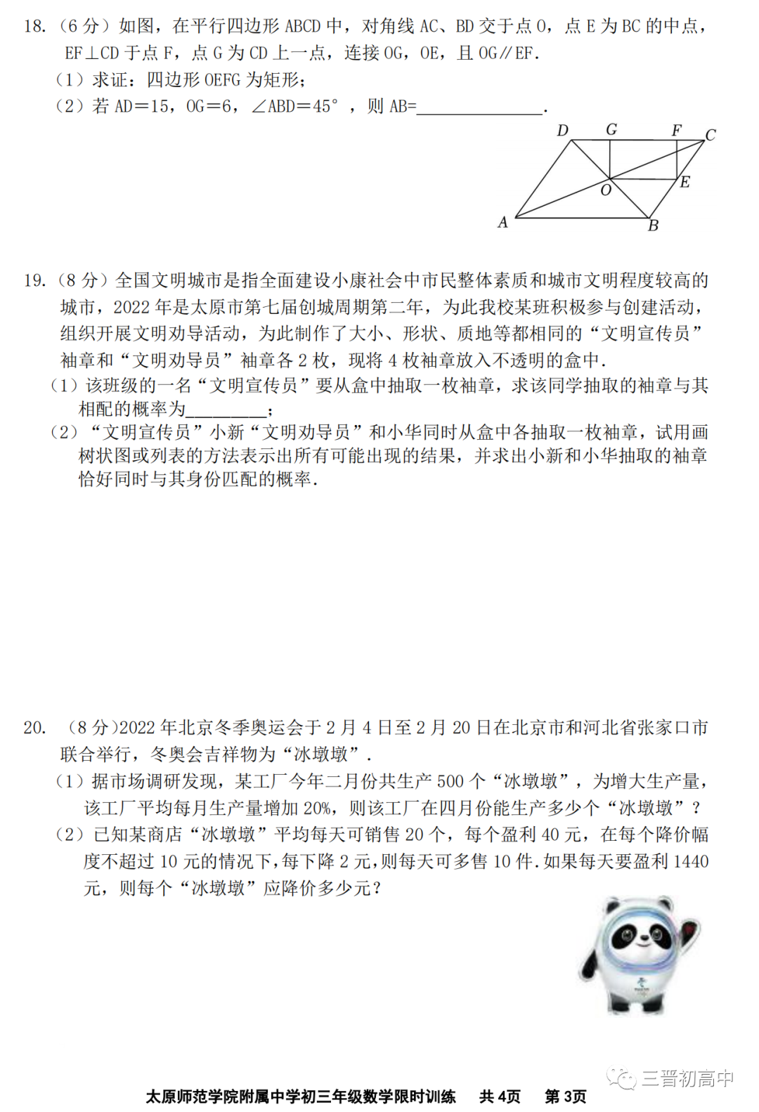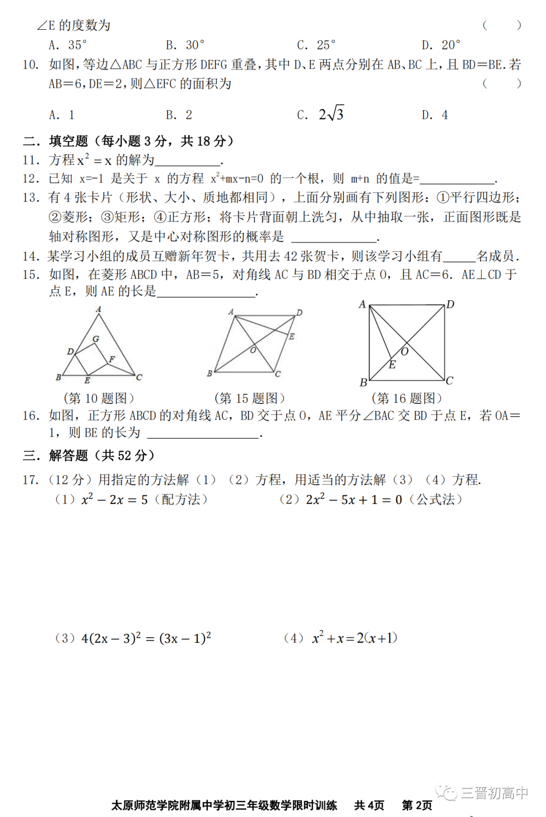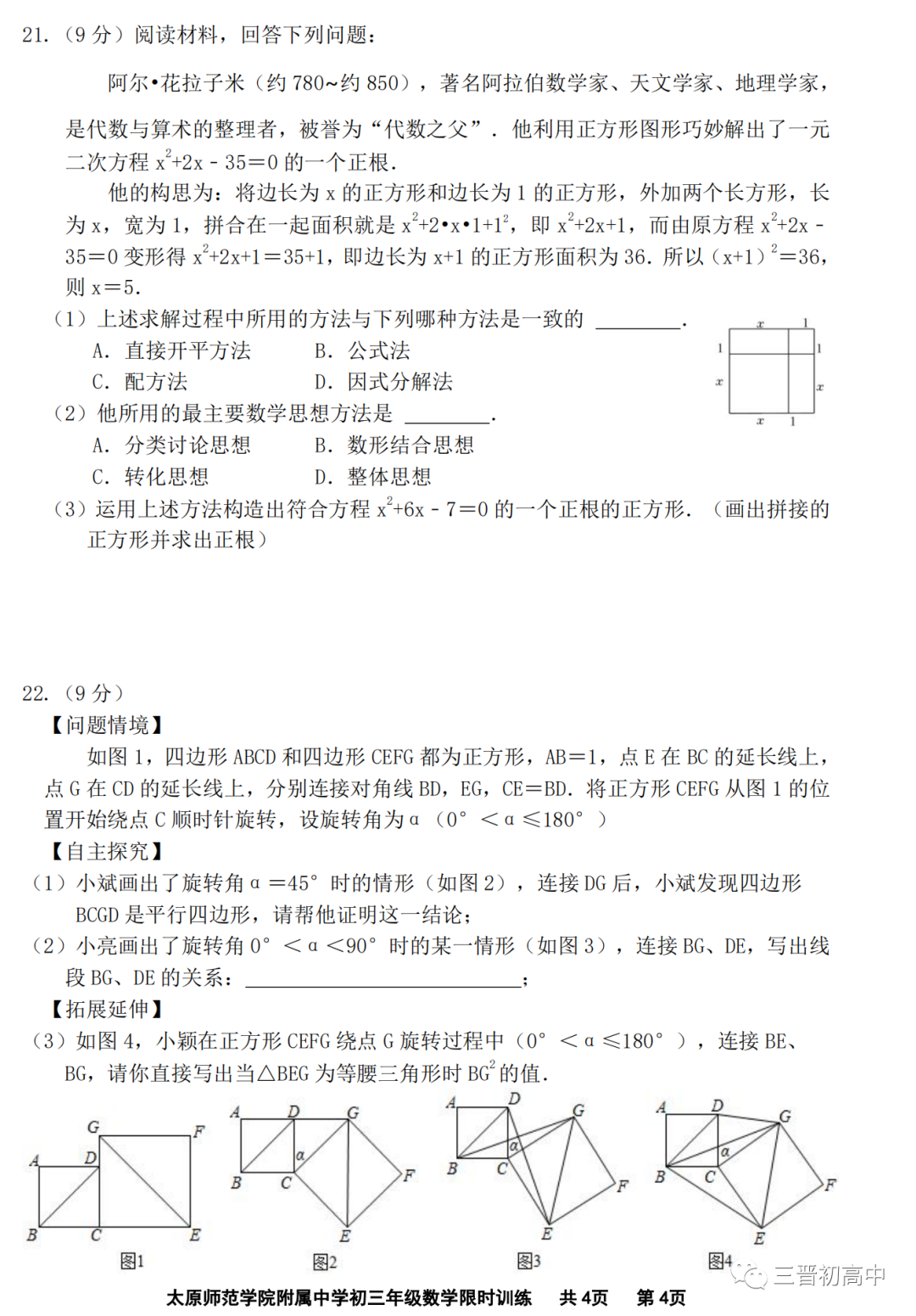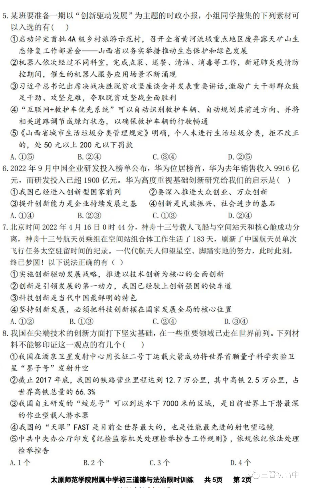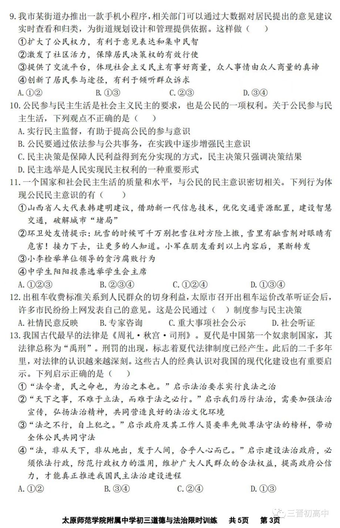 【初三月考】太原师院附中22-23学年第一学期10月月考全科试题及答案汇总