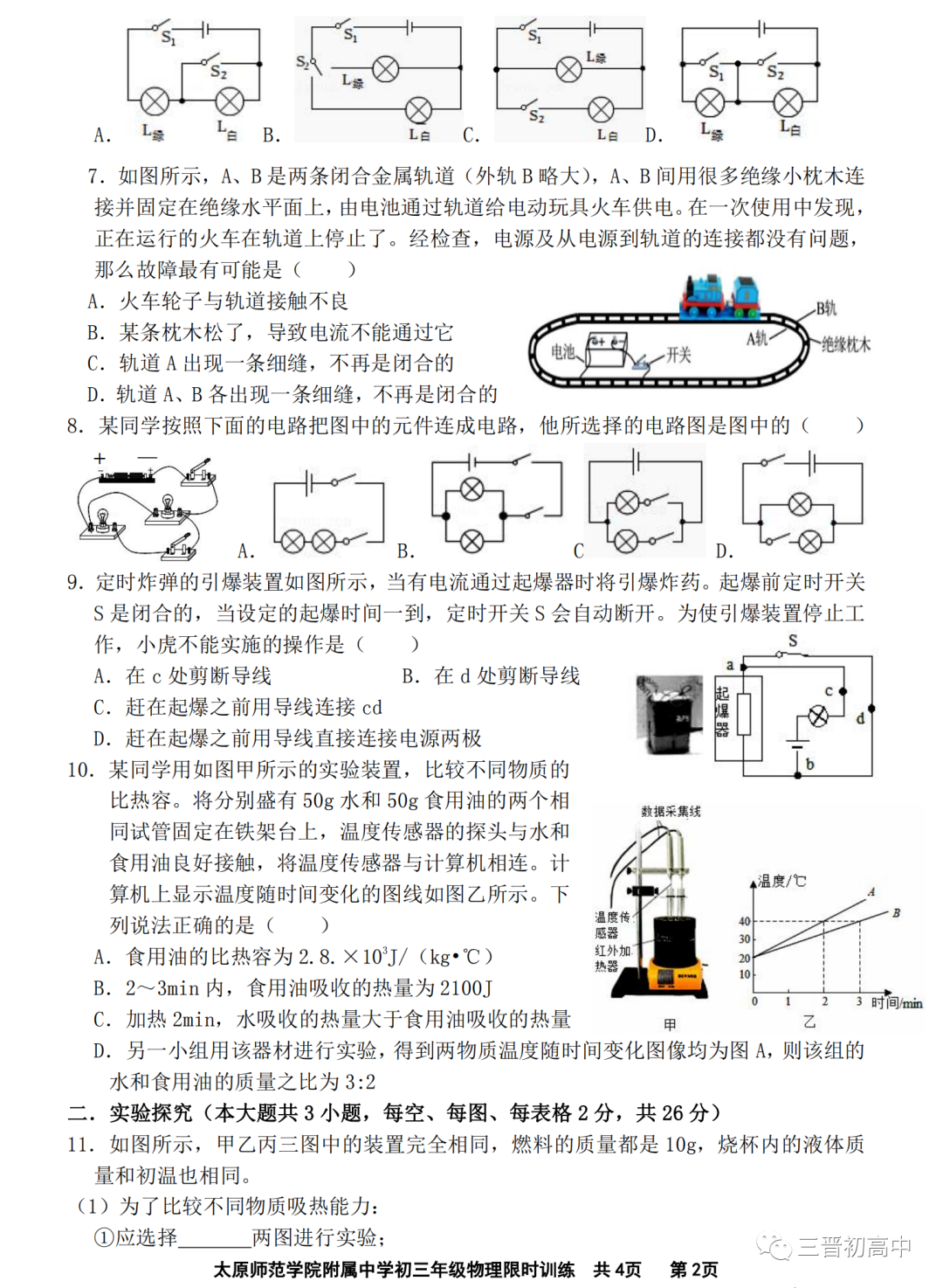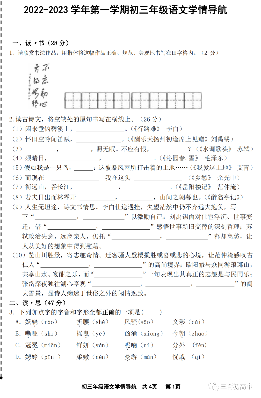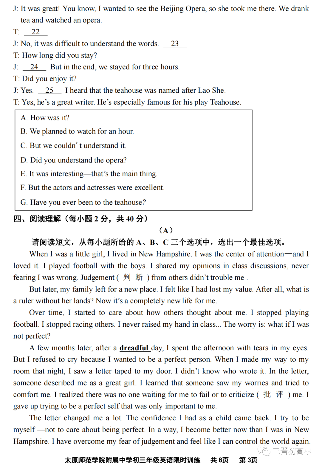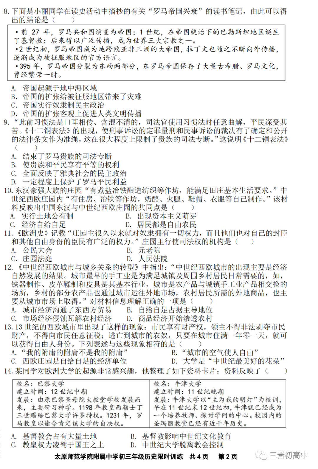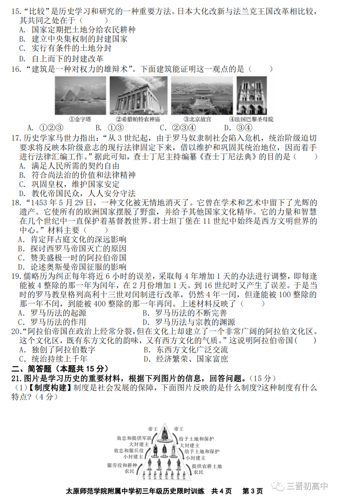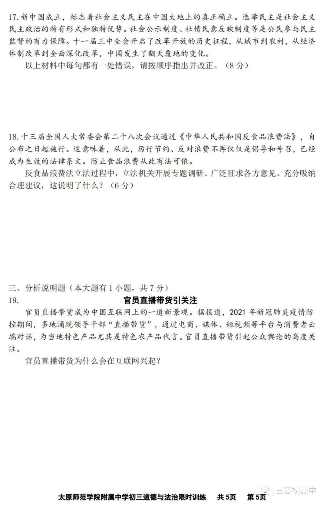 【初三月考】太原师院附中22-23学年第一学期10月月考全科试题及答案汇总