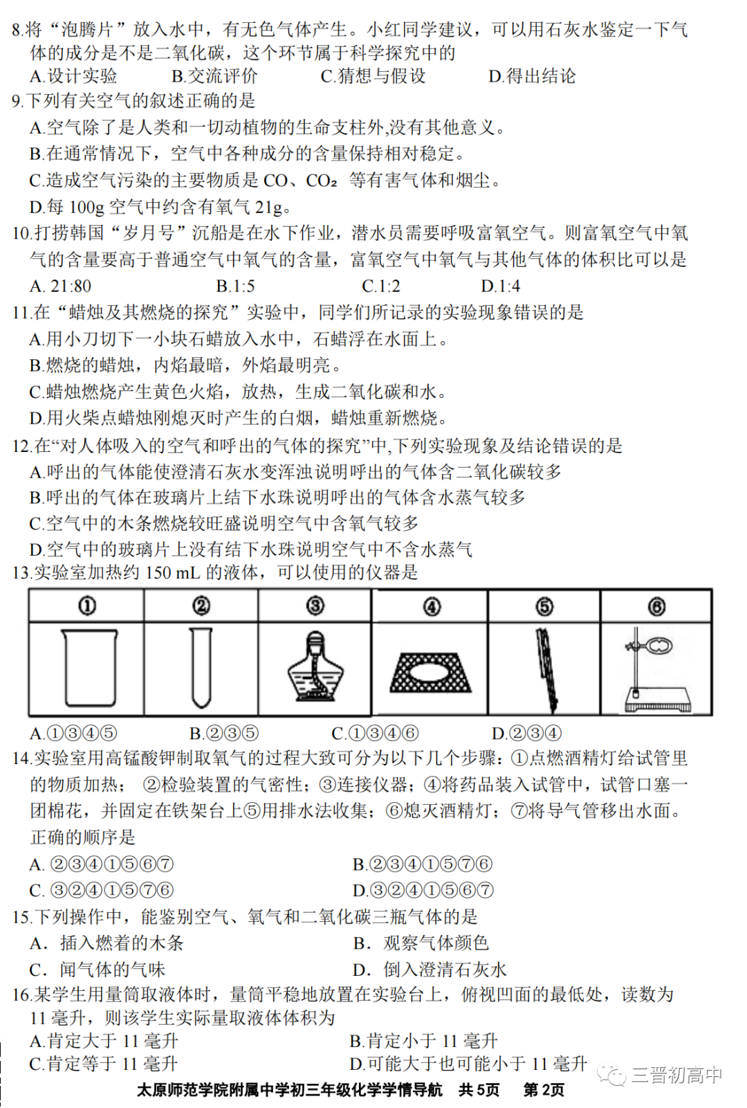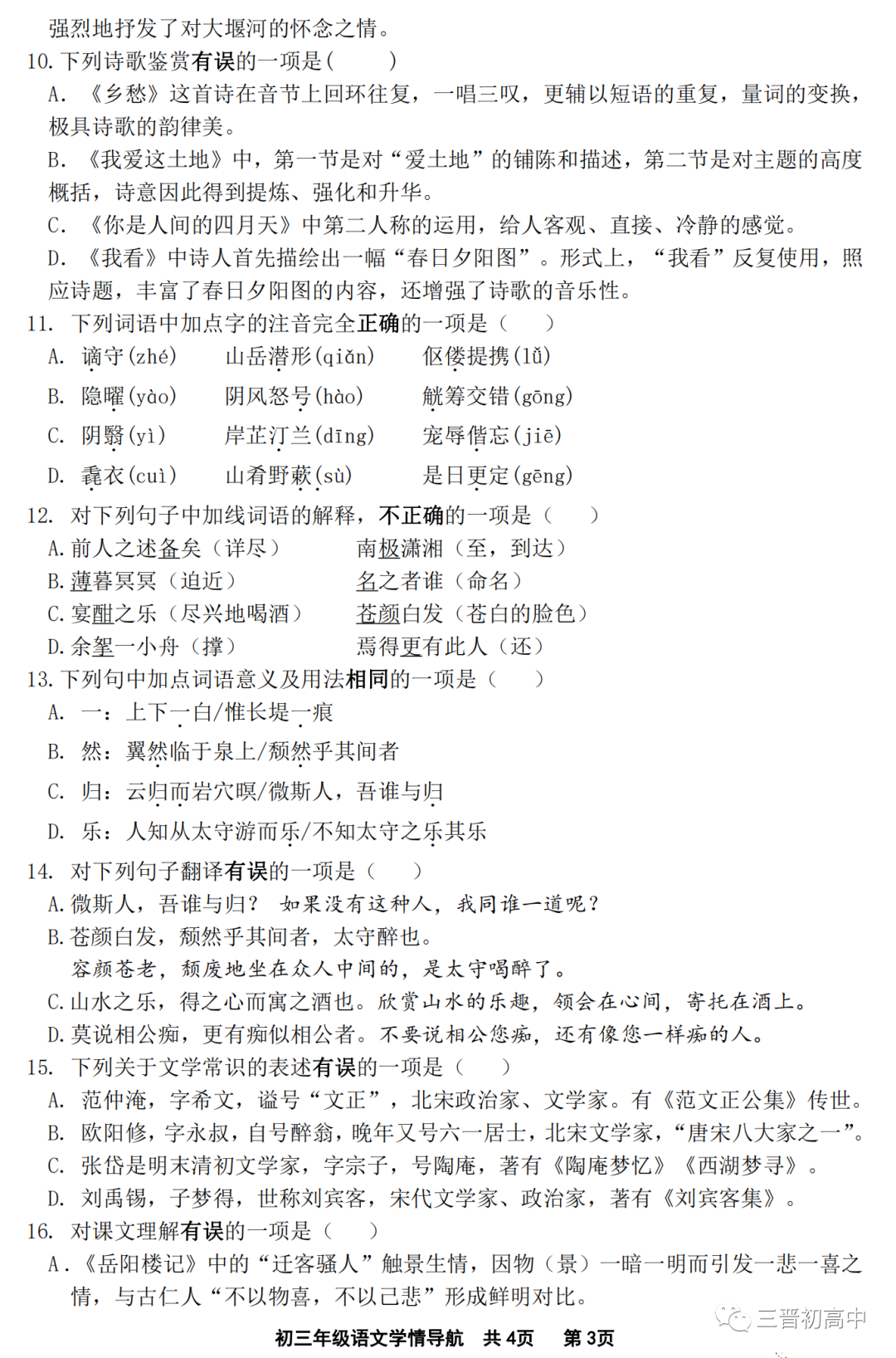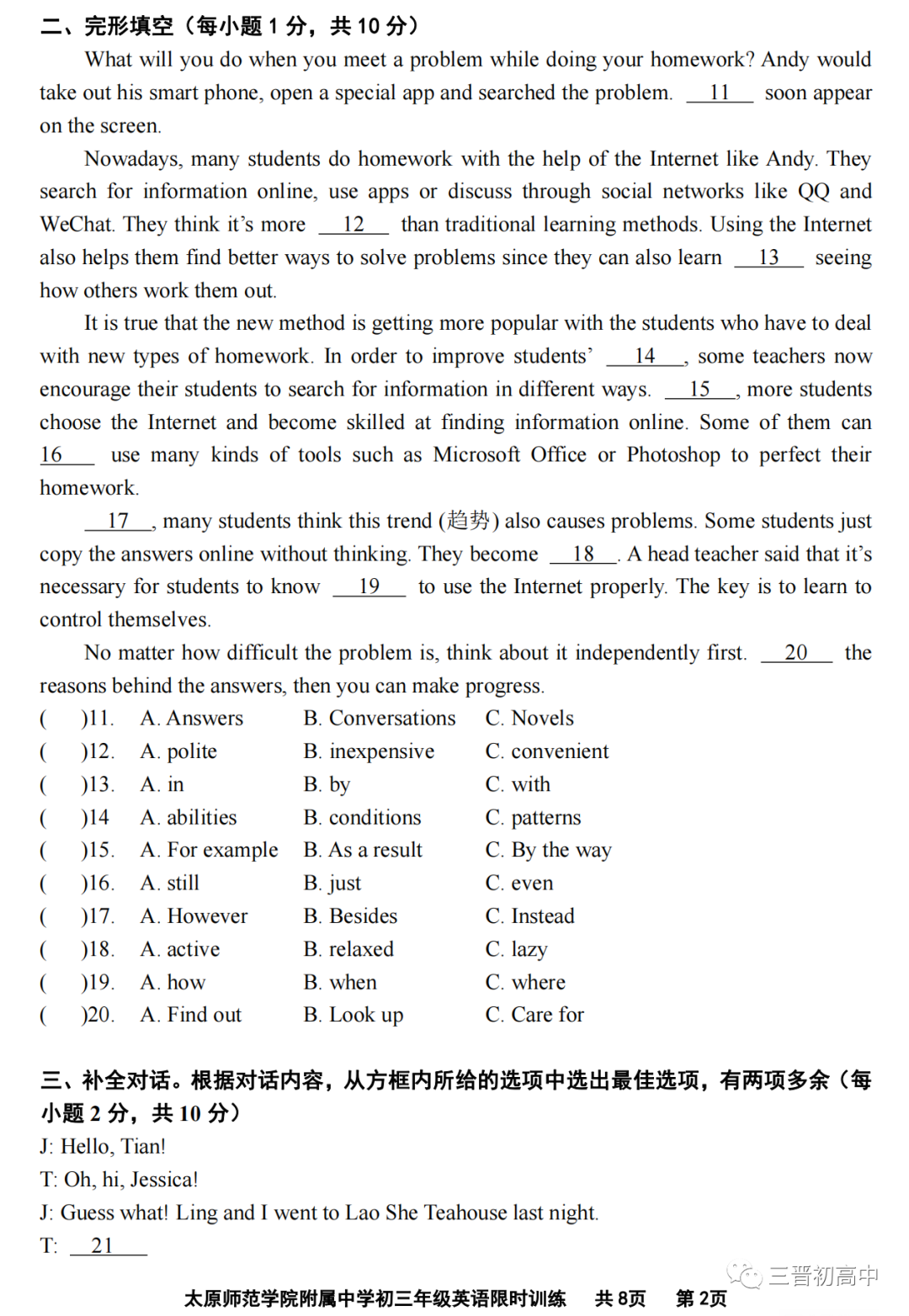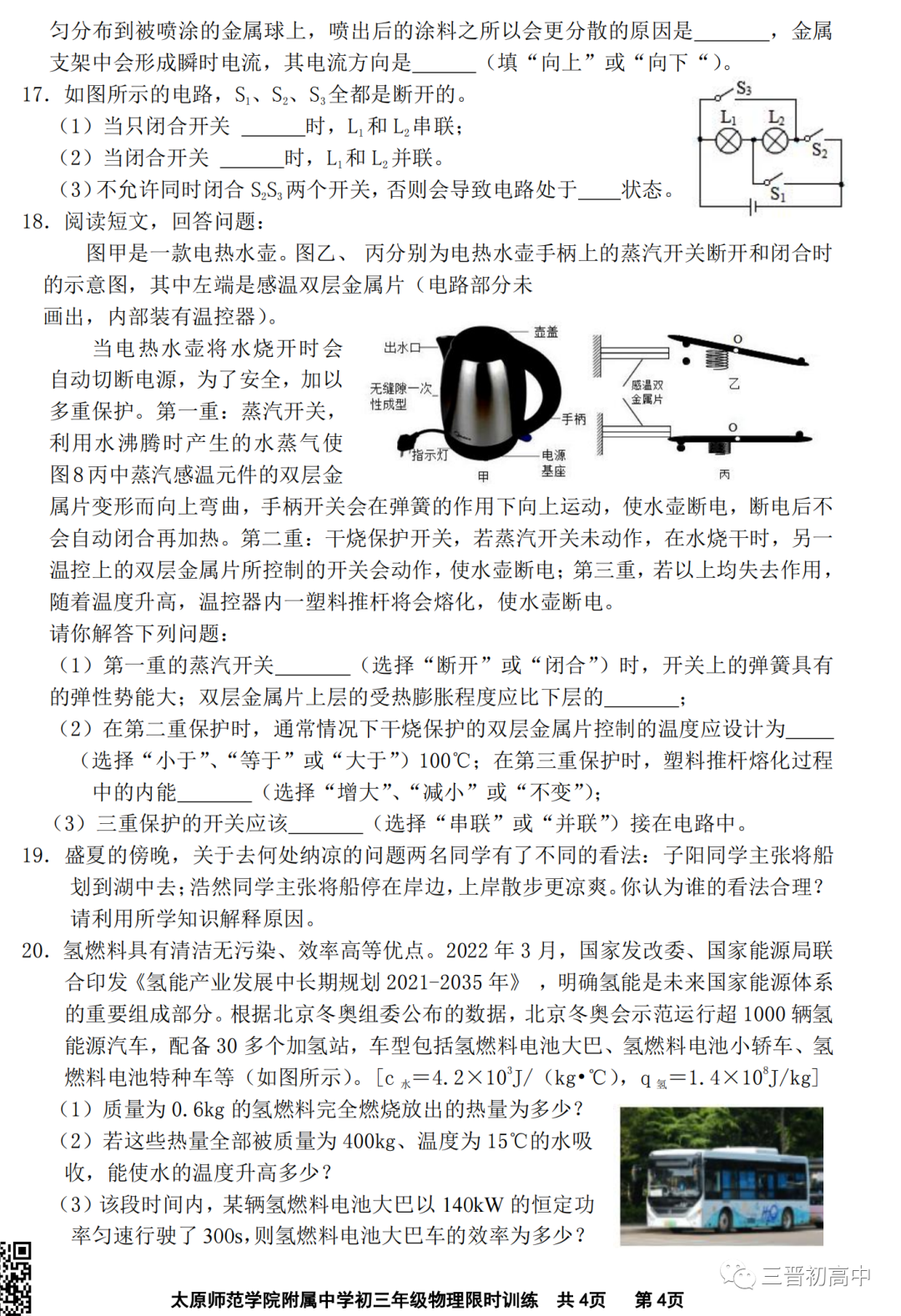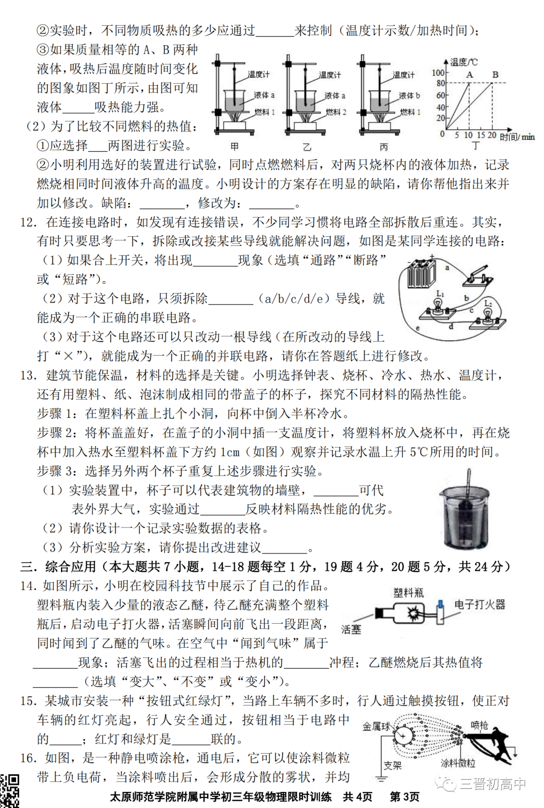 【初三月考】太原师院附中22-23学年第一学期10月月考全科试题及答案汇总
