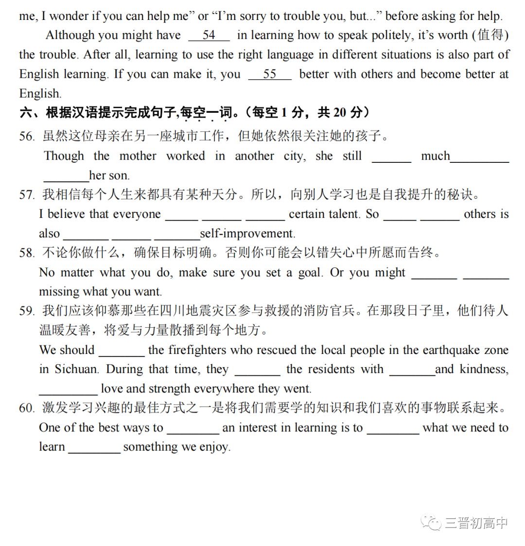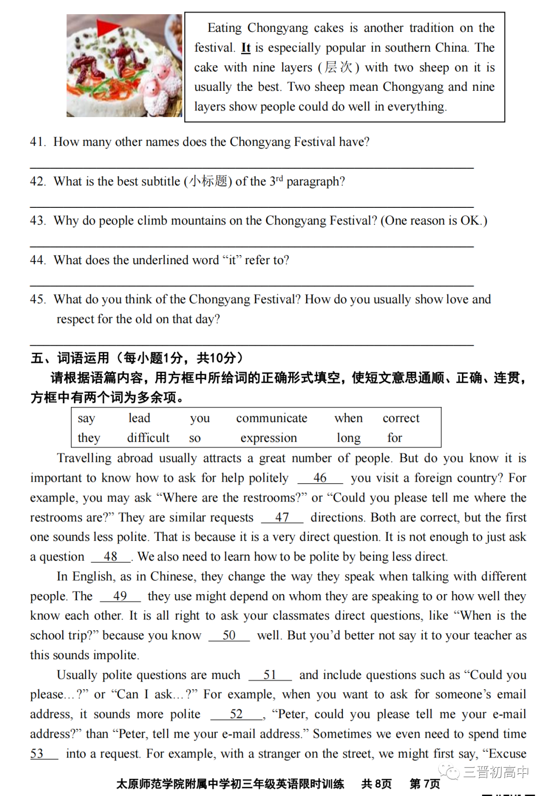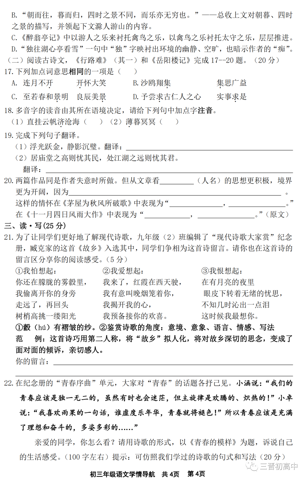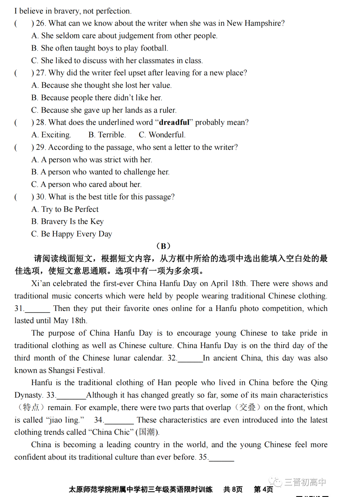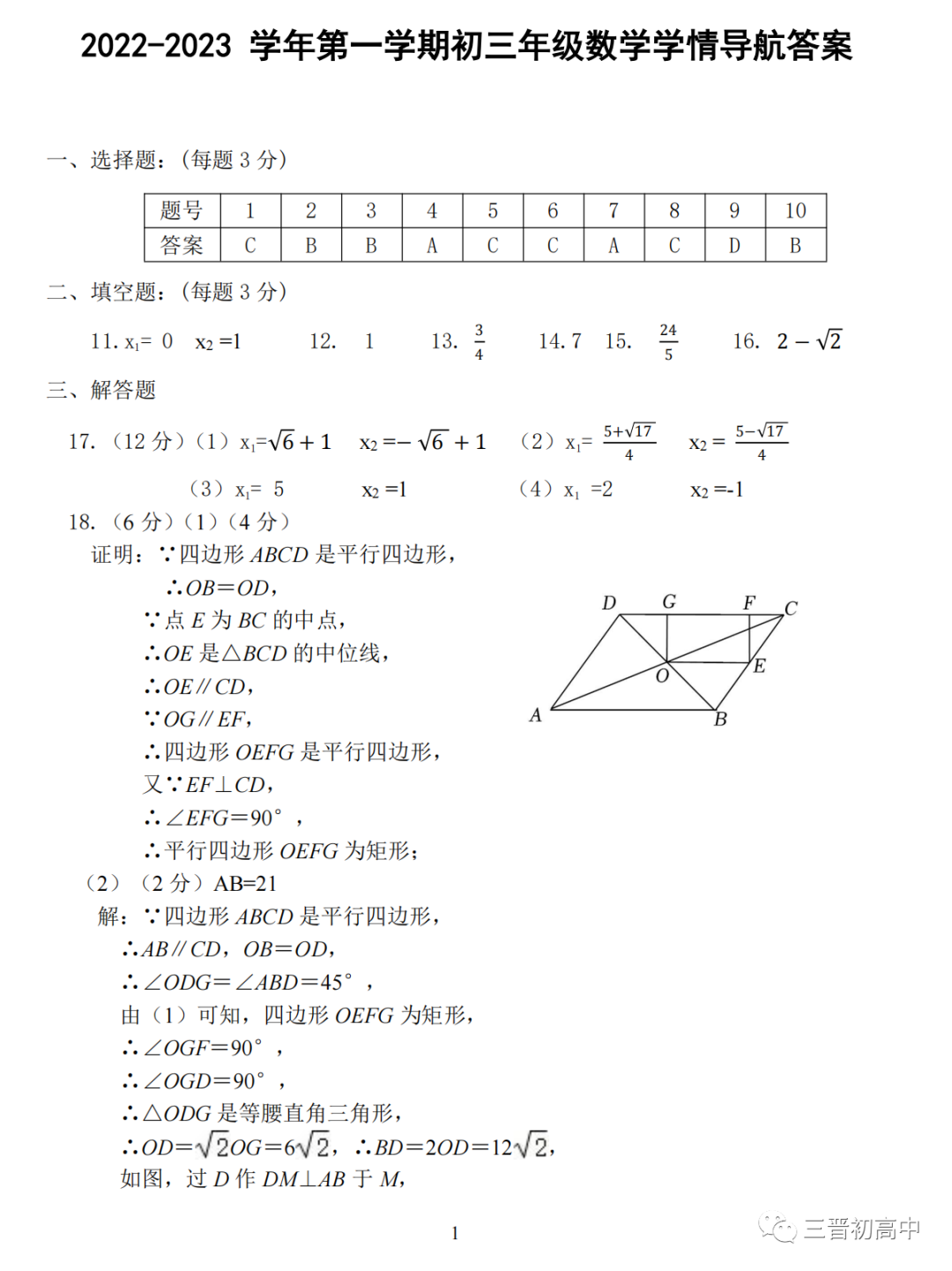 【初三月考】太原师院附中22-23学年第一学期10月月考全科试题及答案汇总