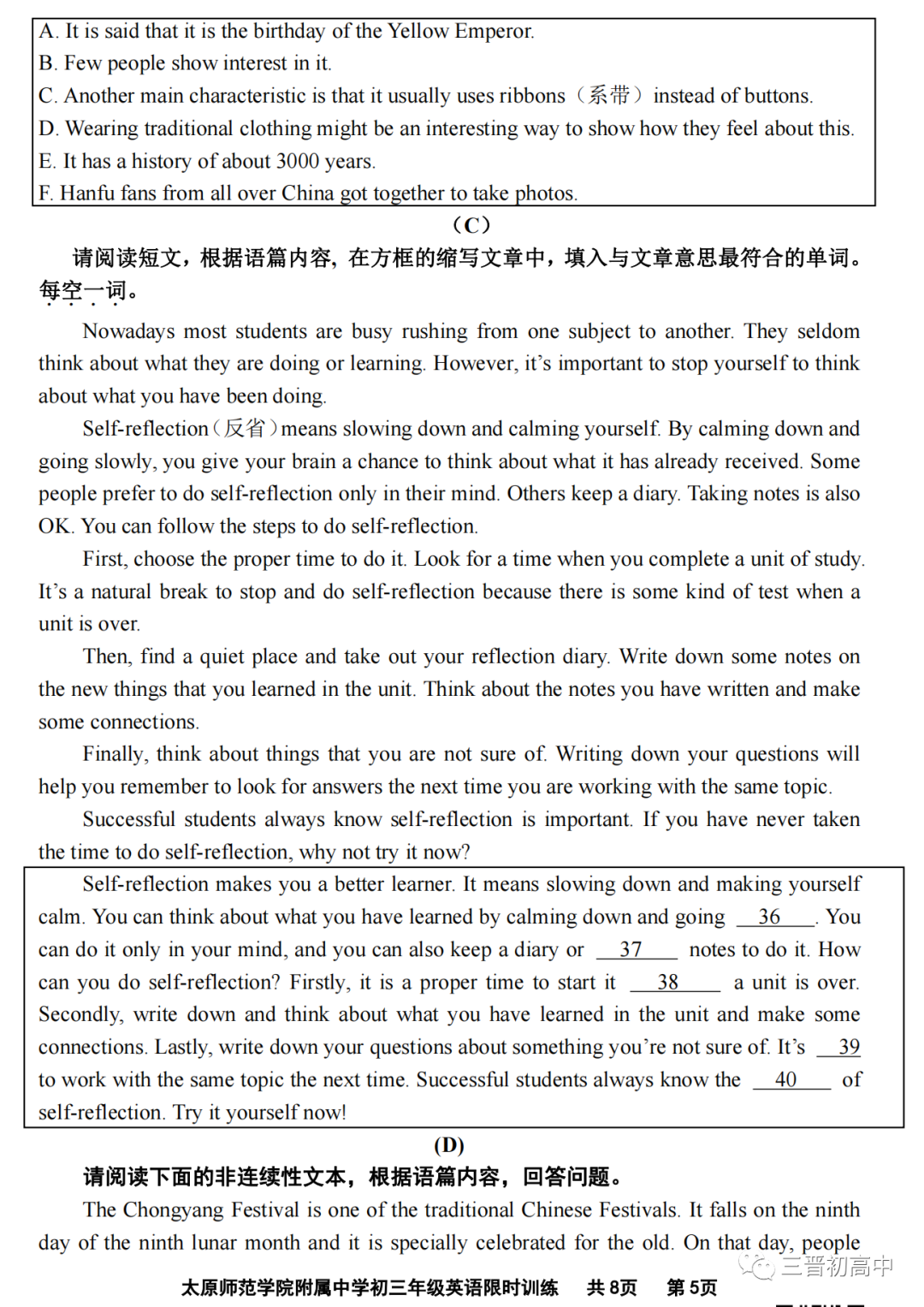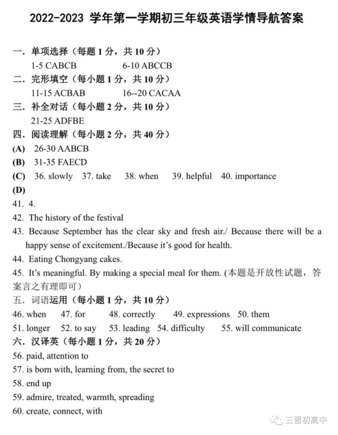 2022—2023学年太原初高中第一学期教学进度表 期中考试时间 附往年真题