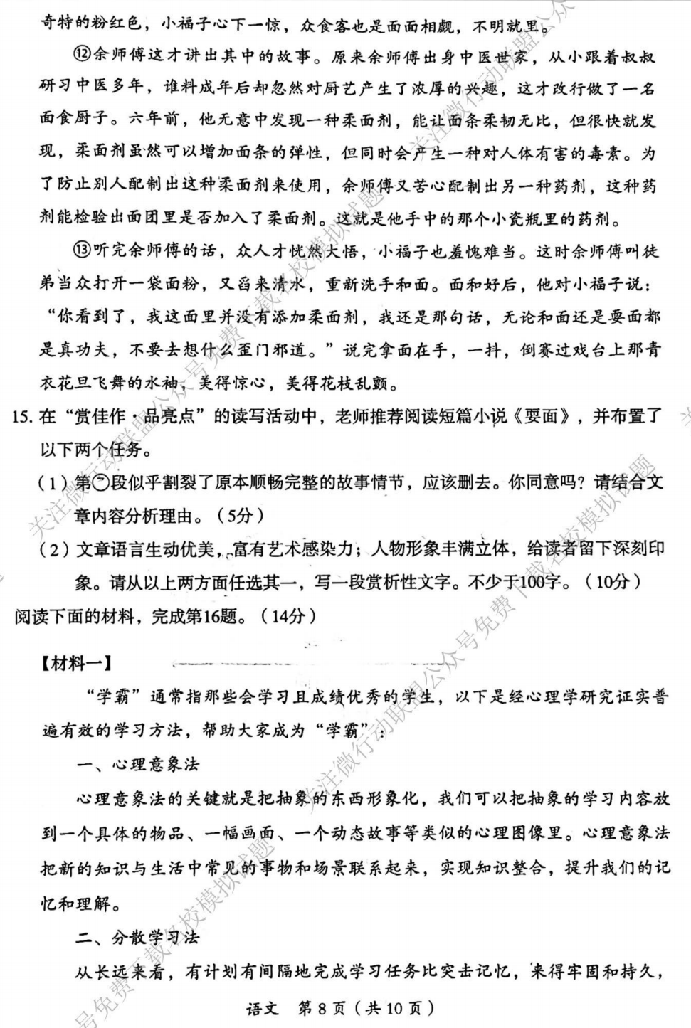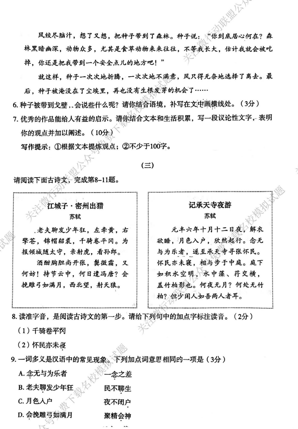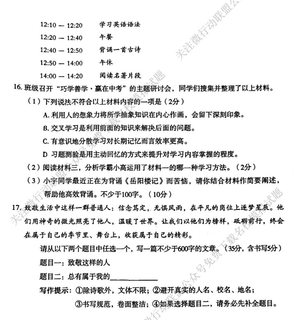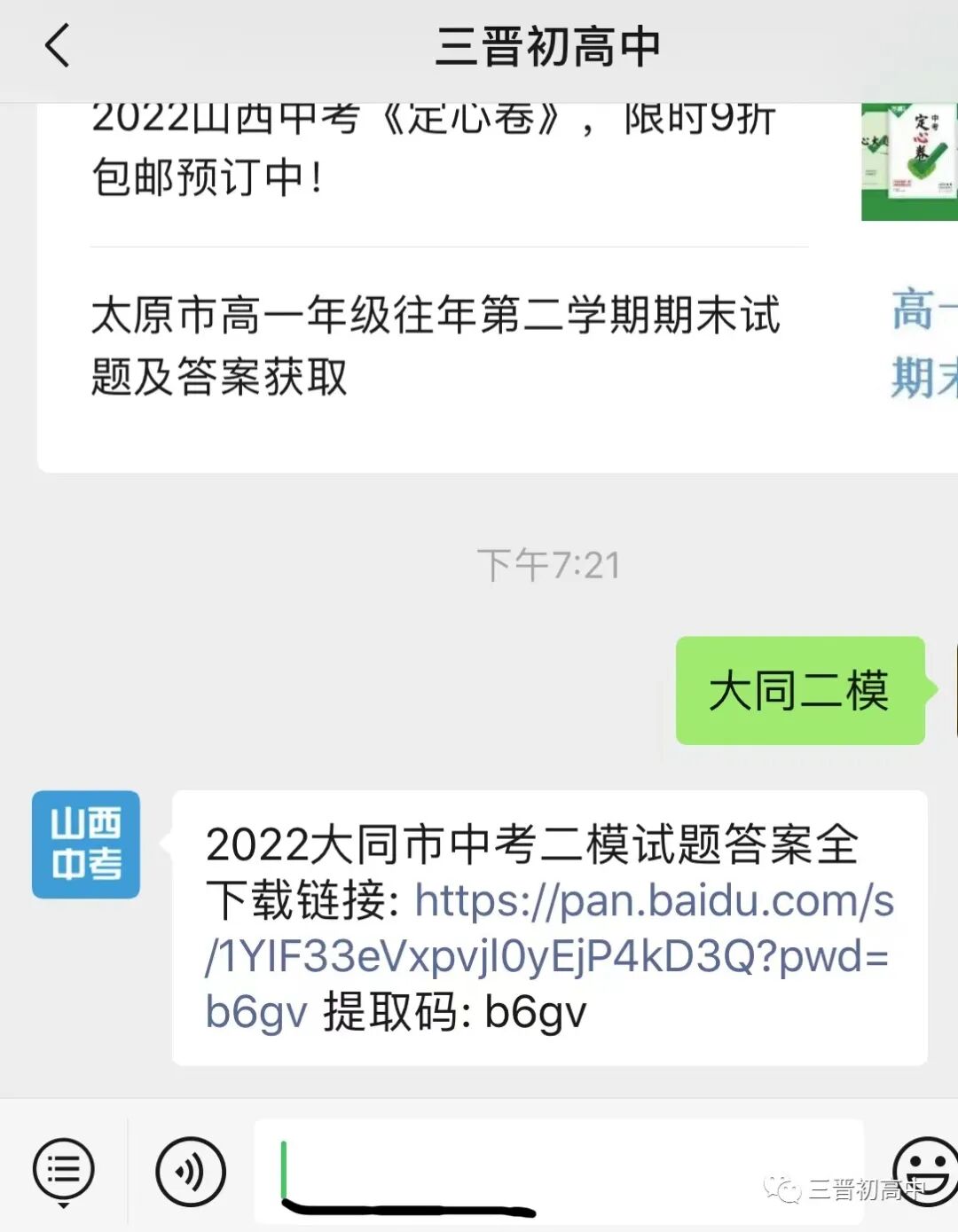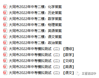 公众号首页下 发信息“大同二模” 获取全科试题及答案
