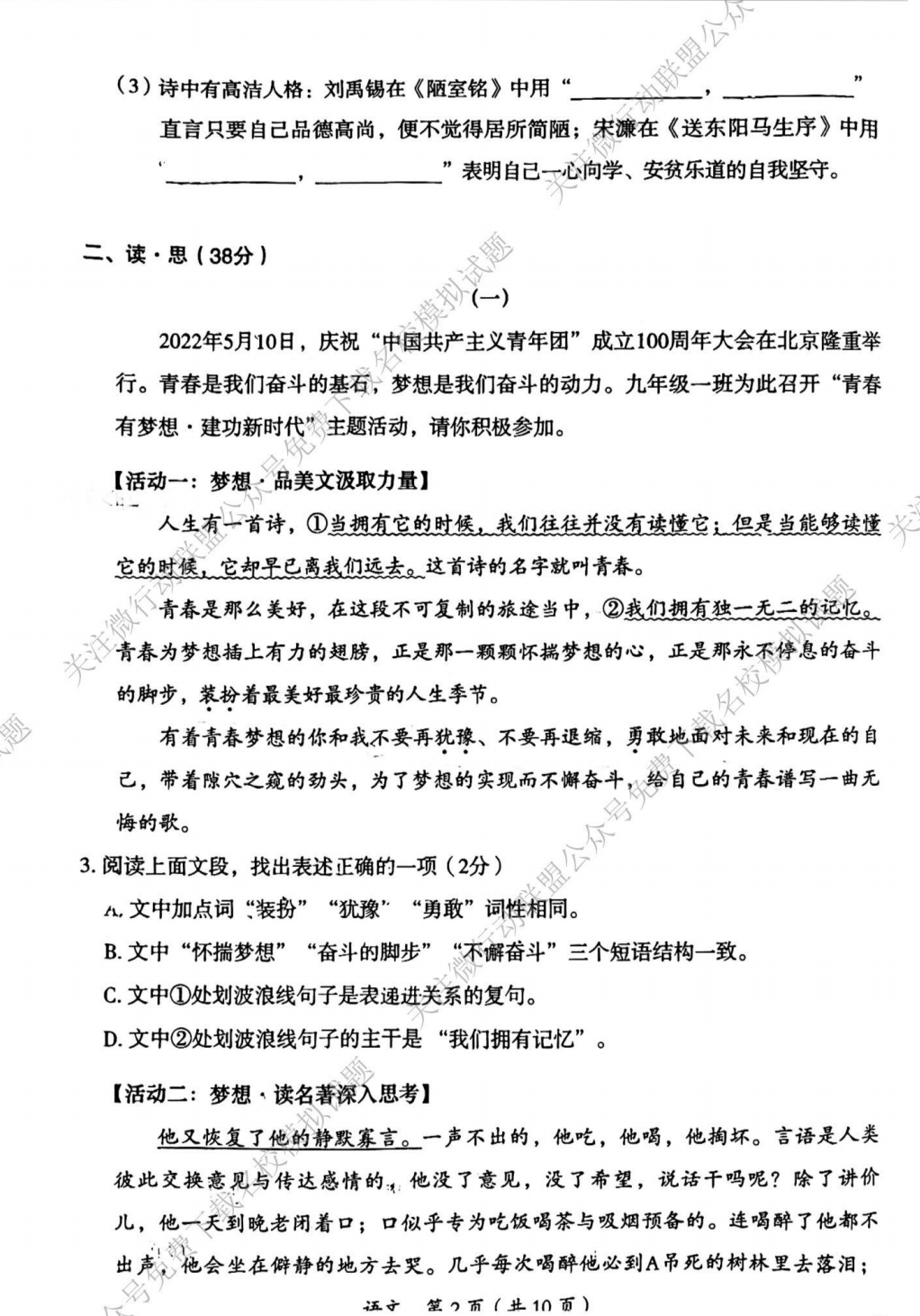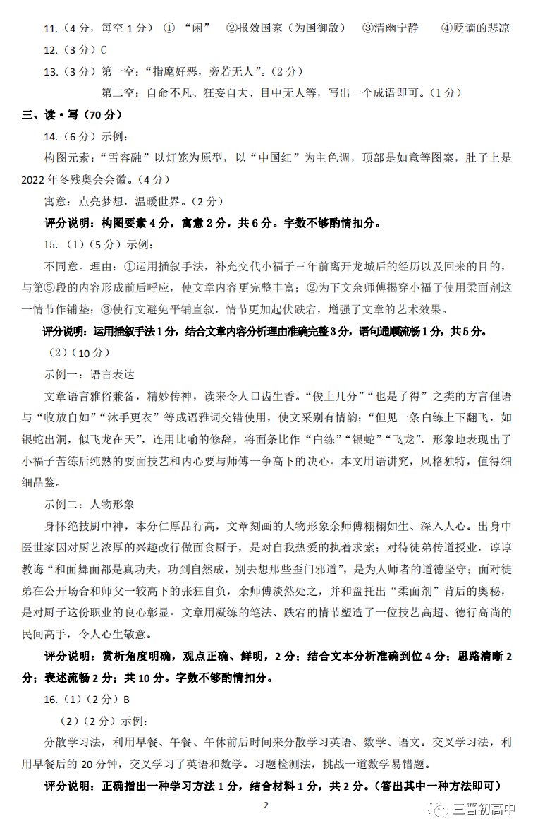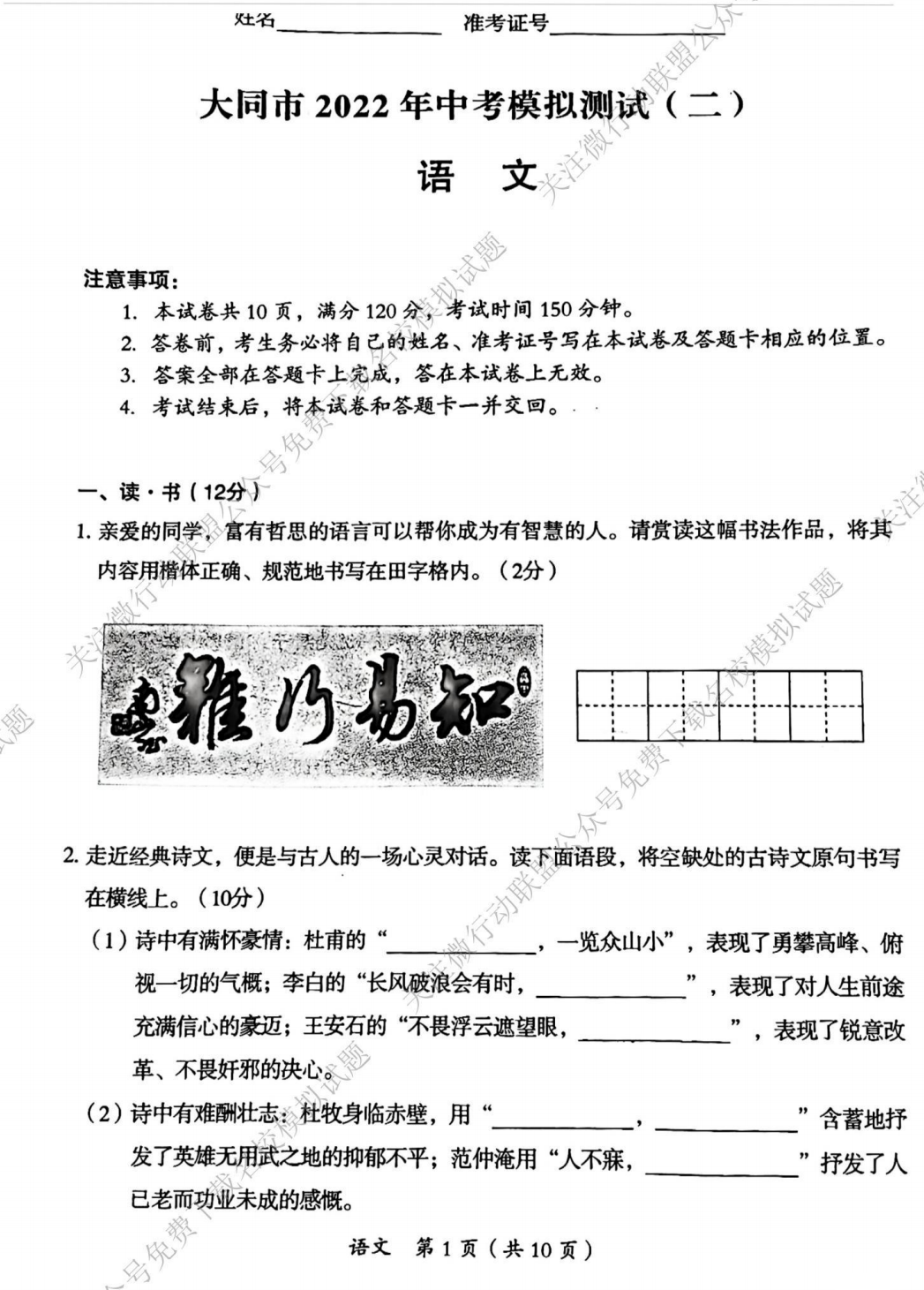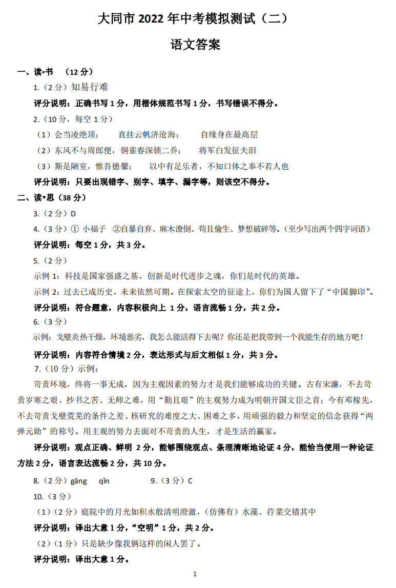 2022大同市中考二模语文试题及答案