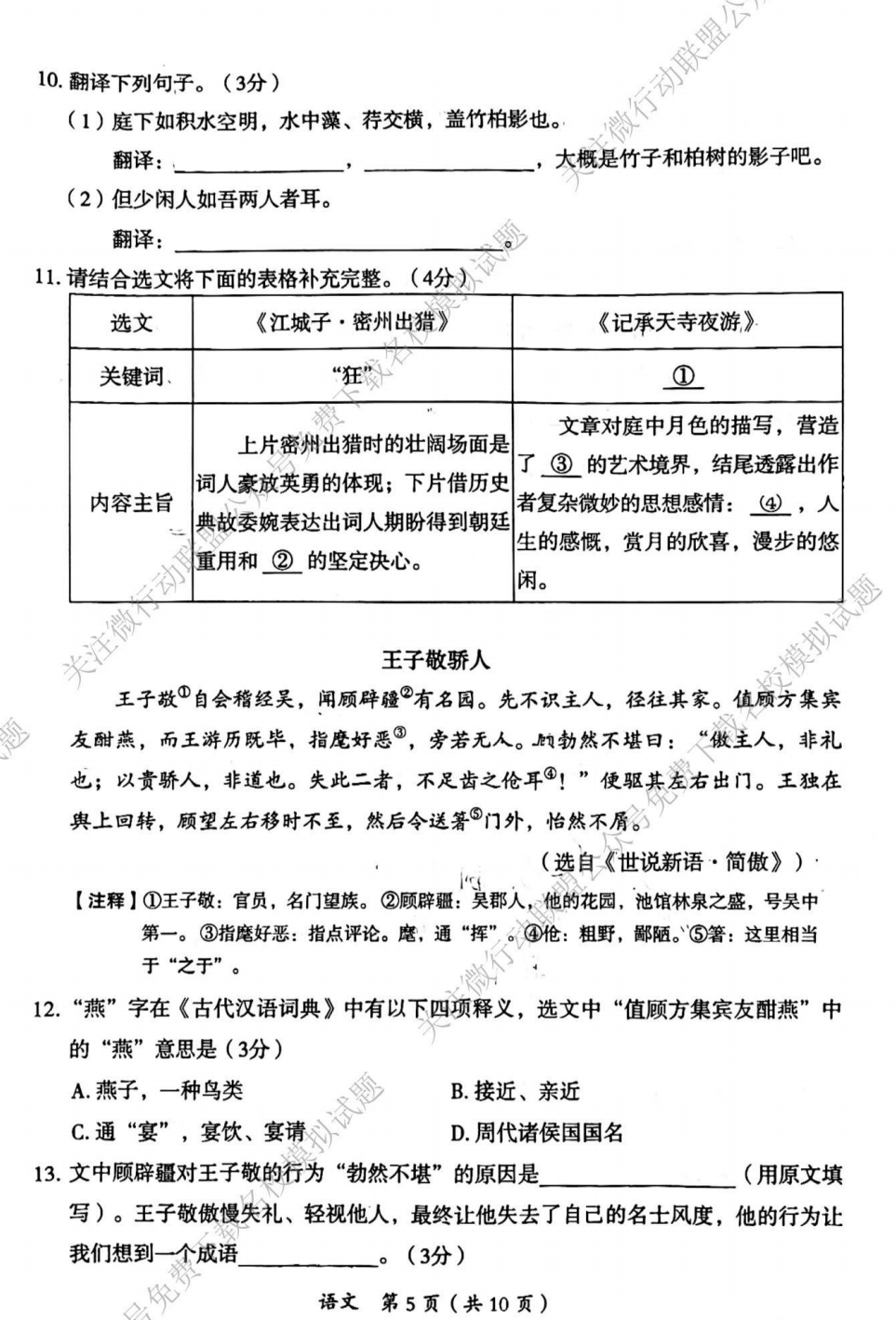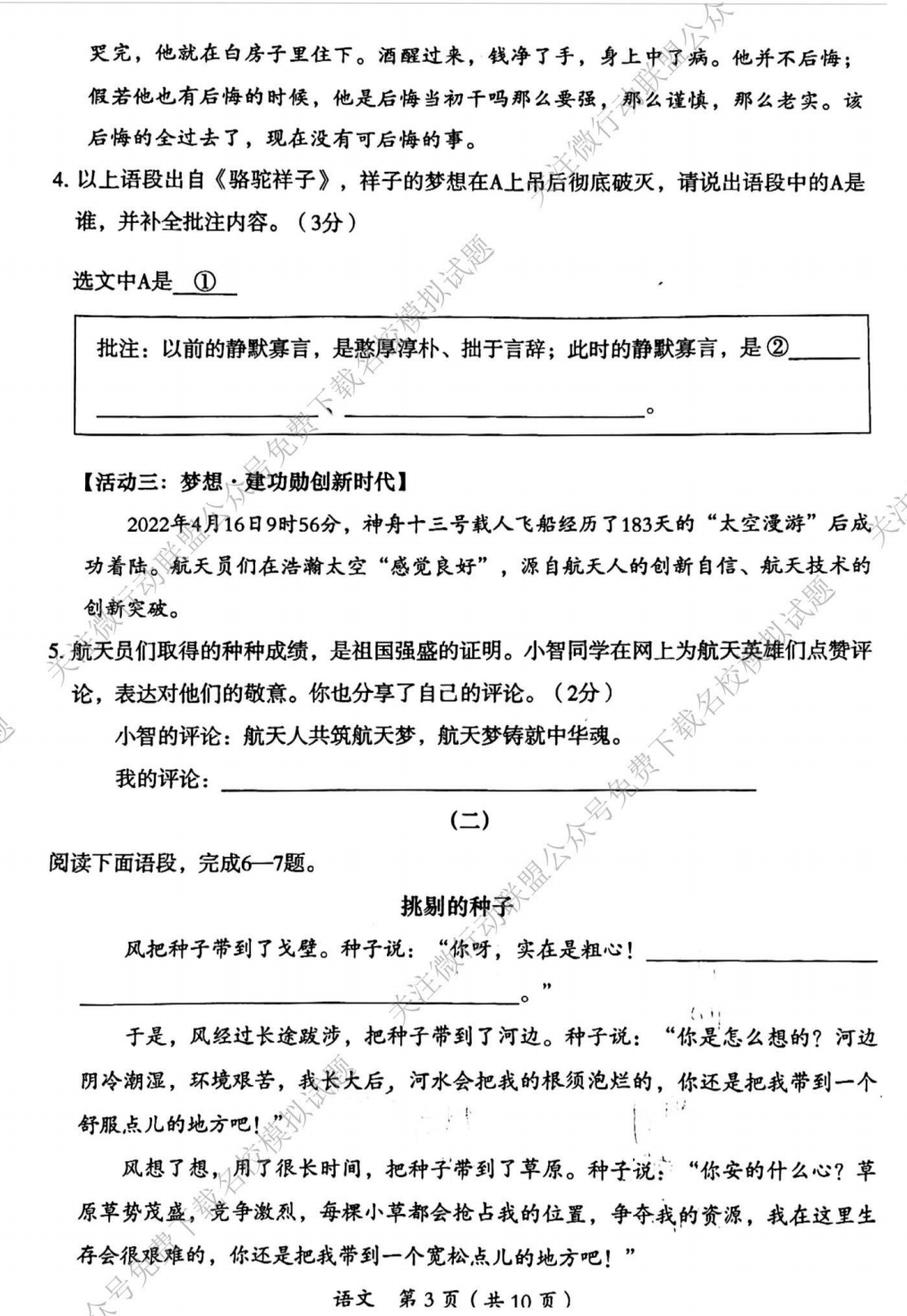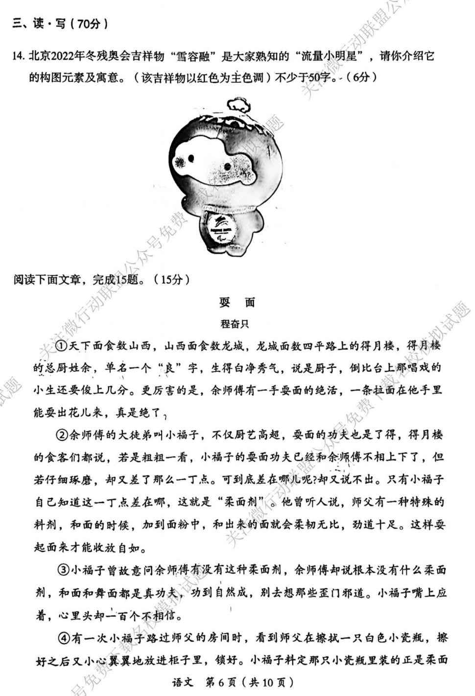 2022大同市中考二模语文试题及答案