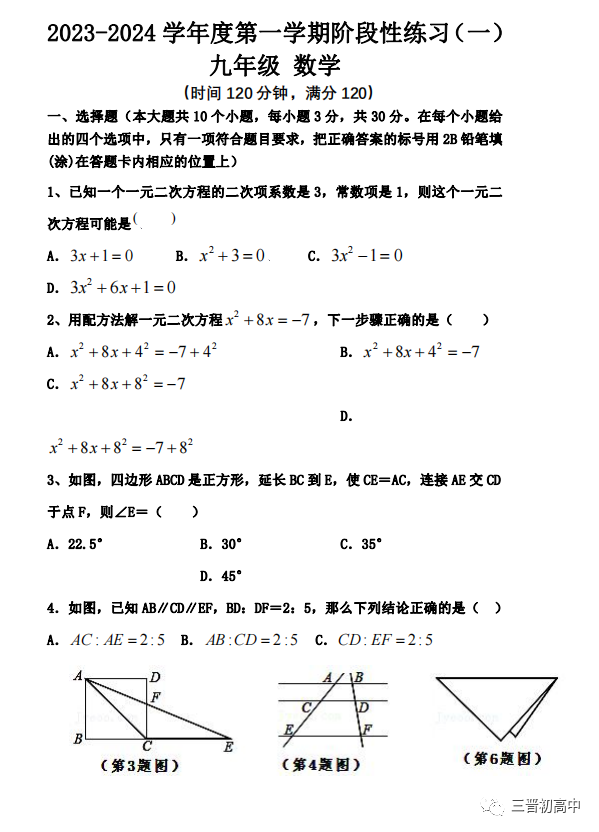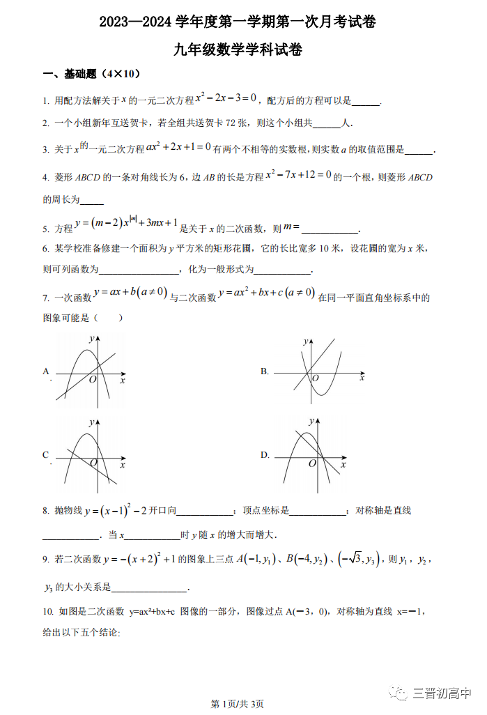 2023-2024学年九年级质量监测试卷持续更新中