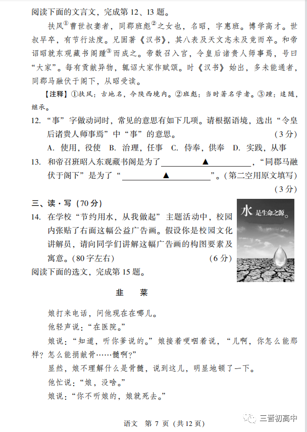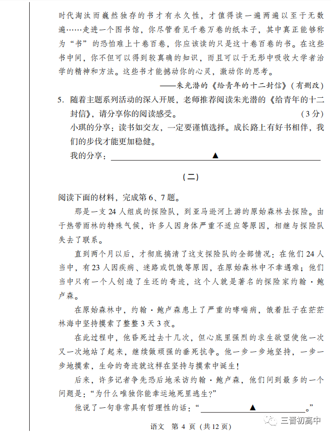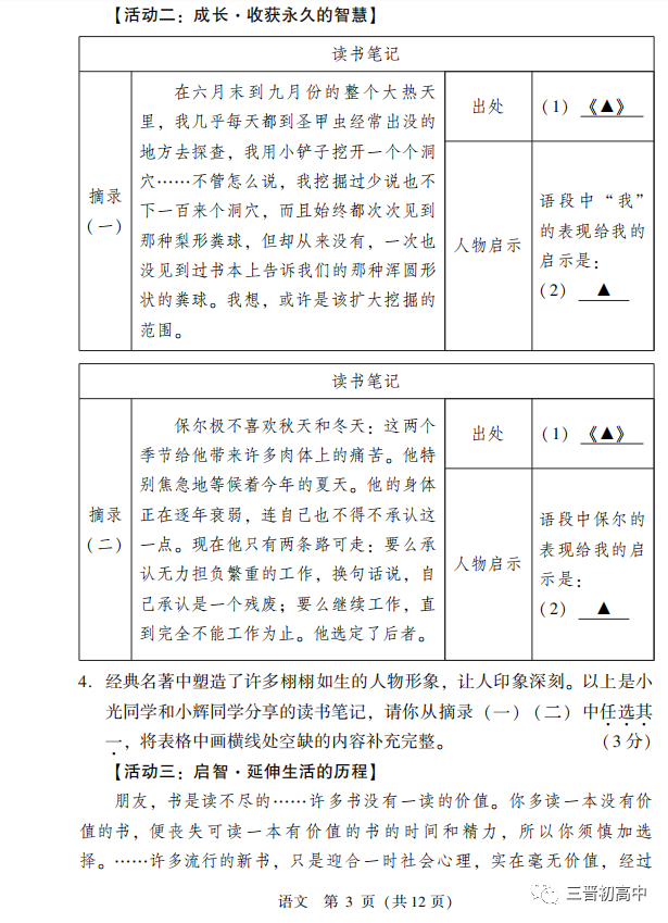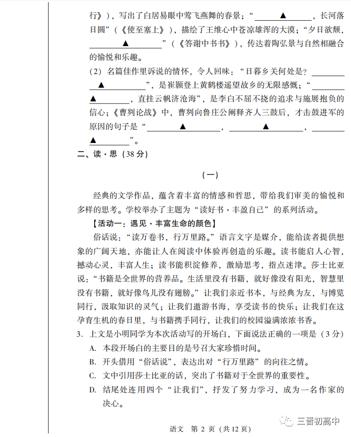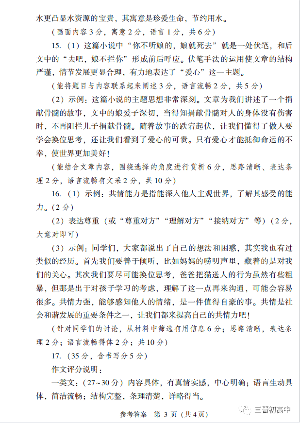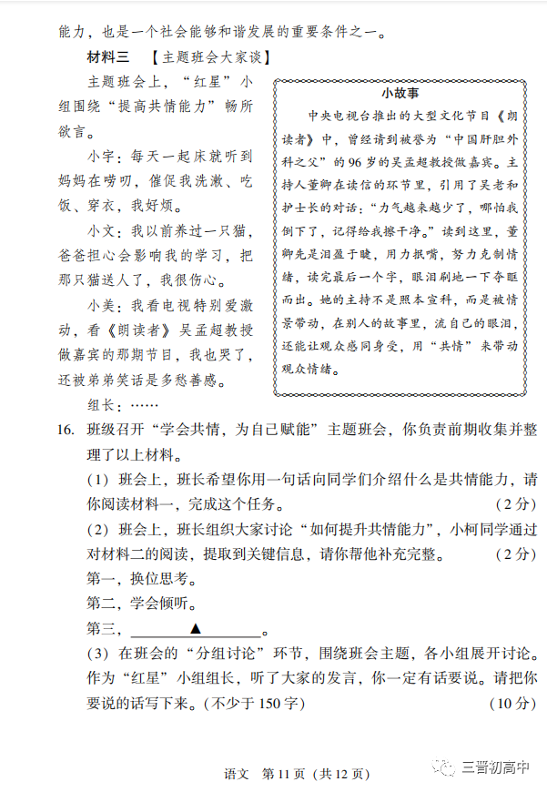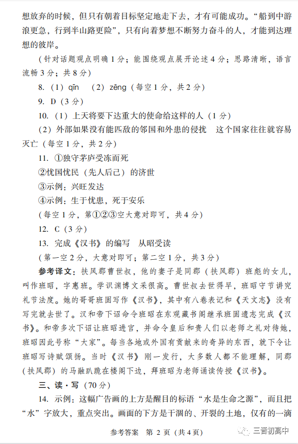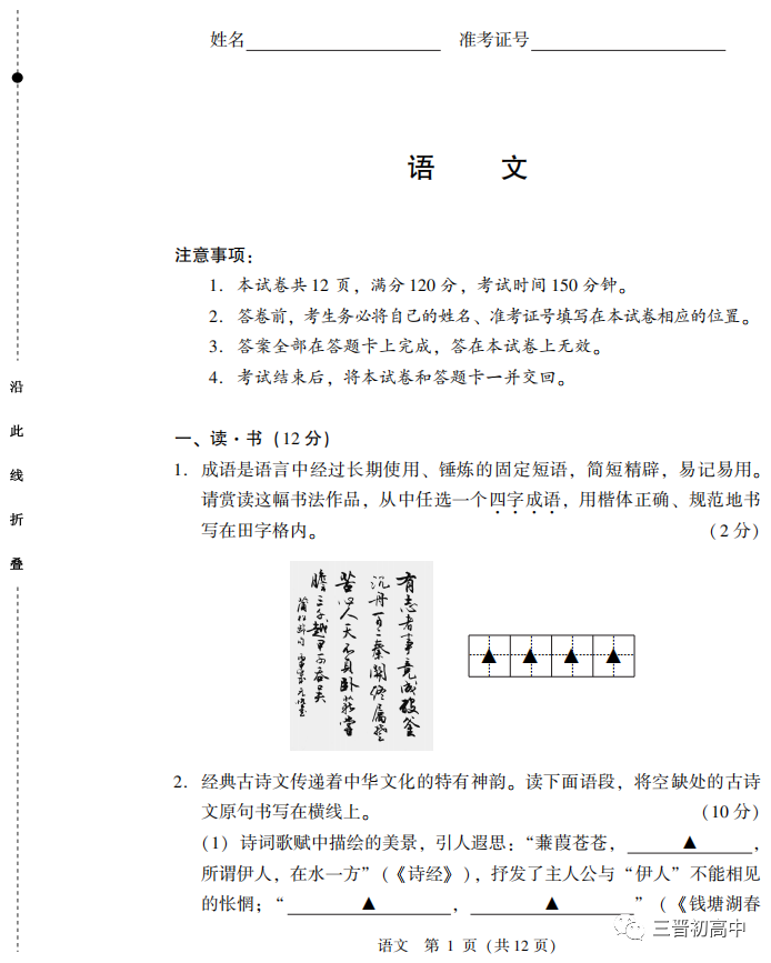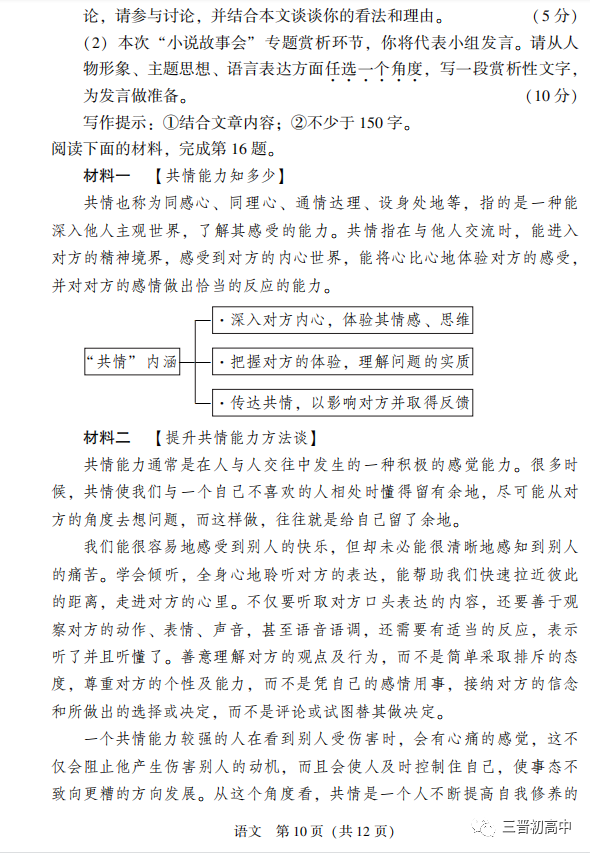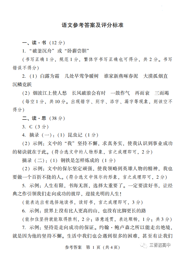 【百县联考】山西中考模拟试题高清下载全科试题答案