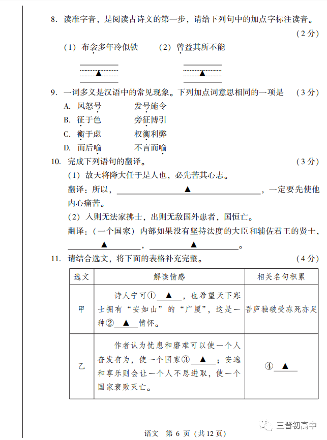 2021晋一中考《聚能卷 · A卷》试题及答案全汇总