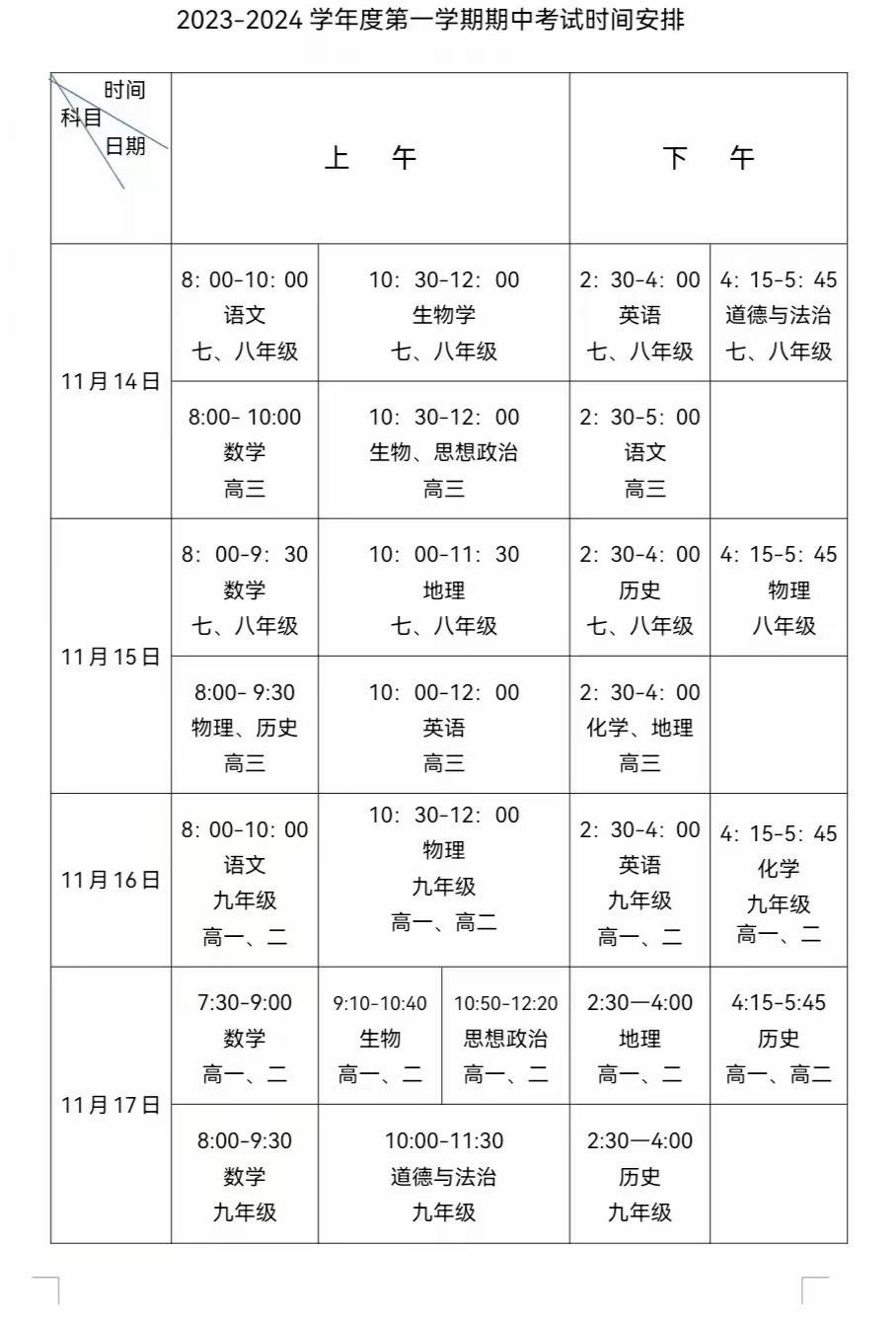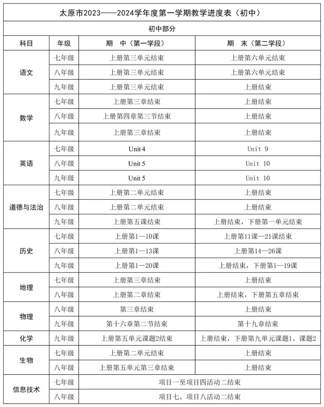 太原市2023-2024学年度第一学期初高中各年级期中考时间及考试范围公布,历年期中真题已给大家备好了,文末可下载!!