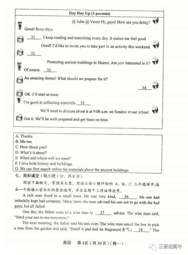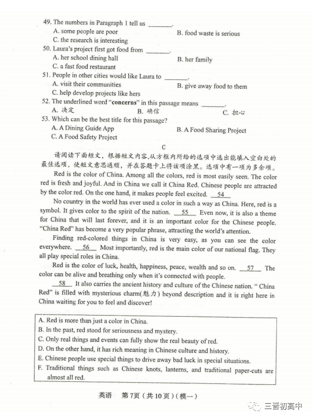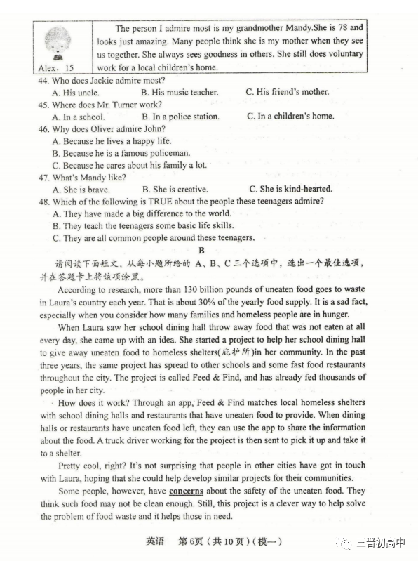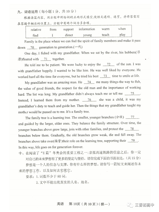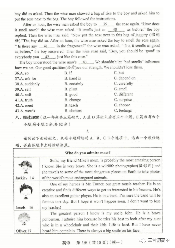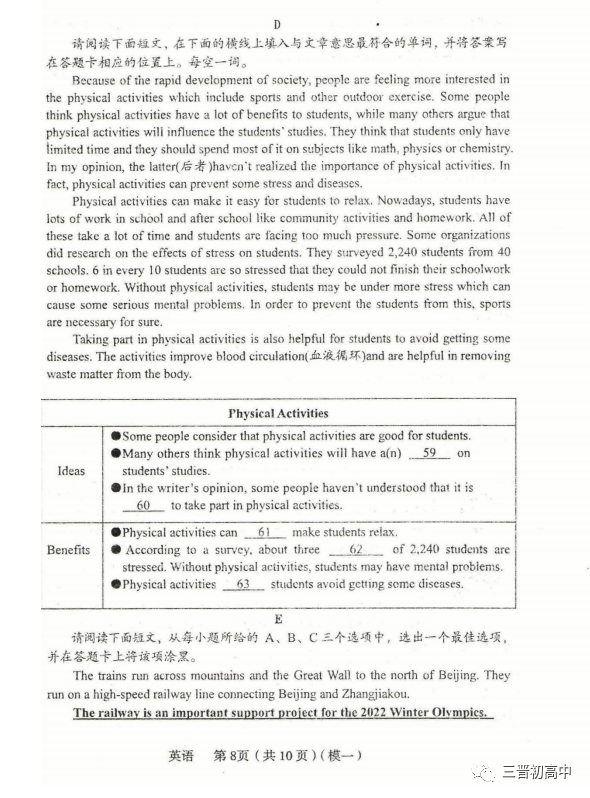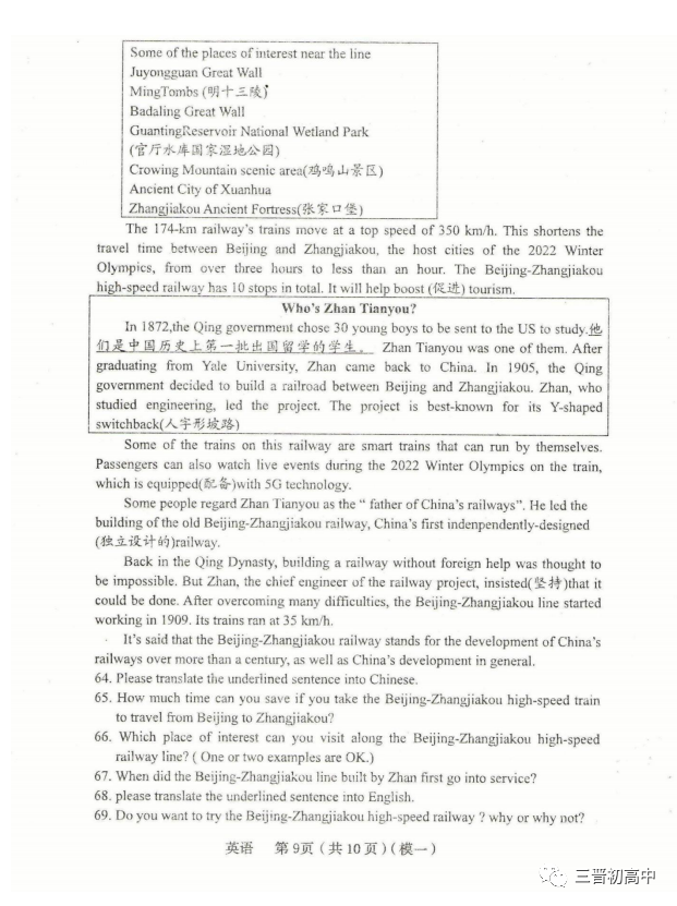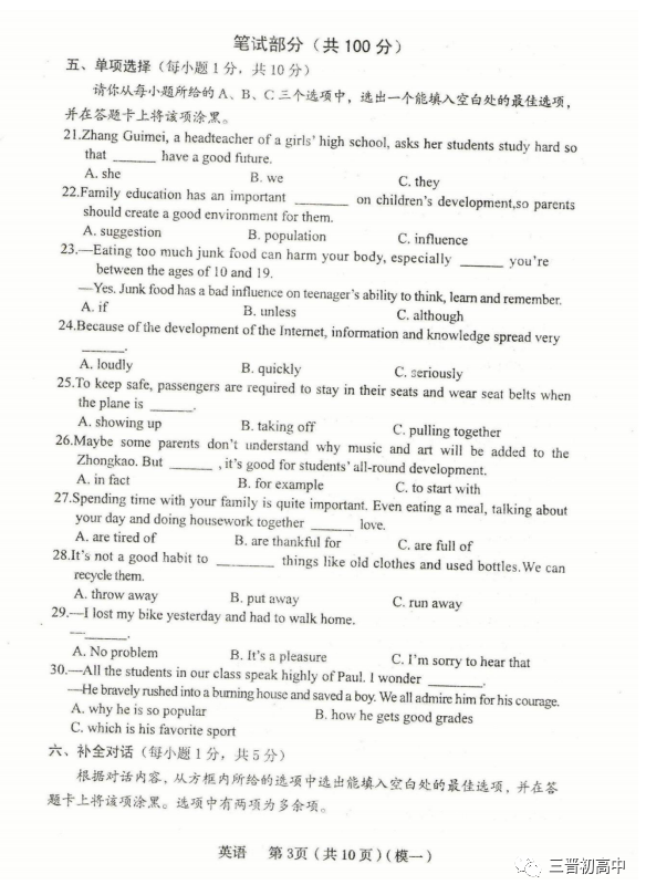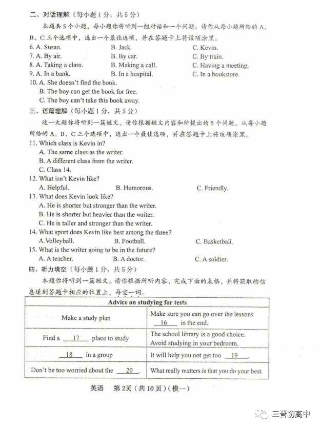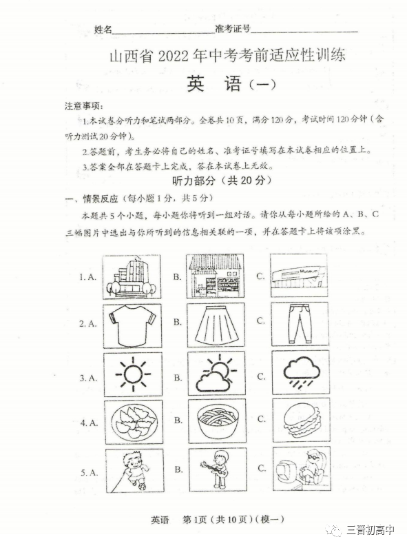 山西中考公众号首页下方回复【模一】 获取试题电子版