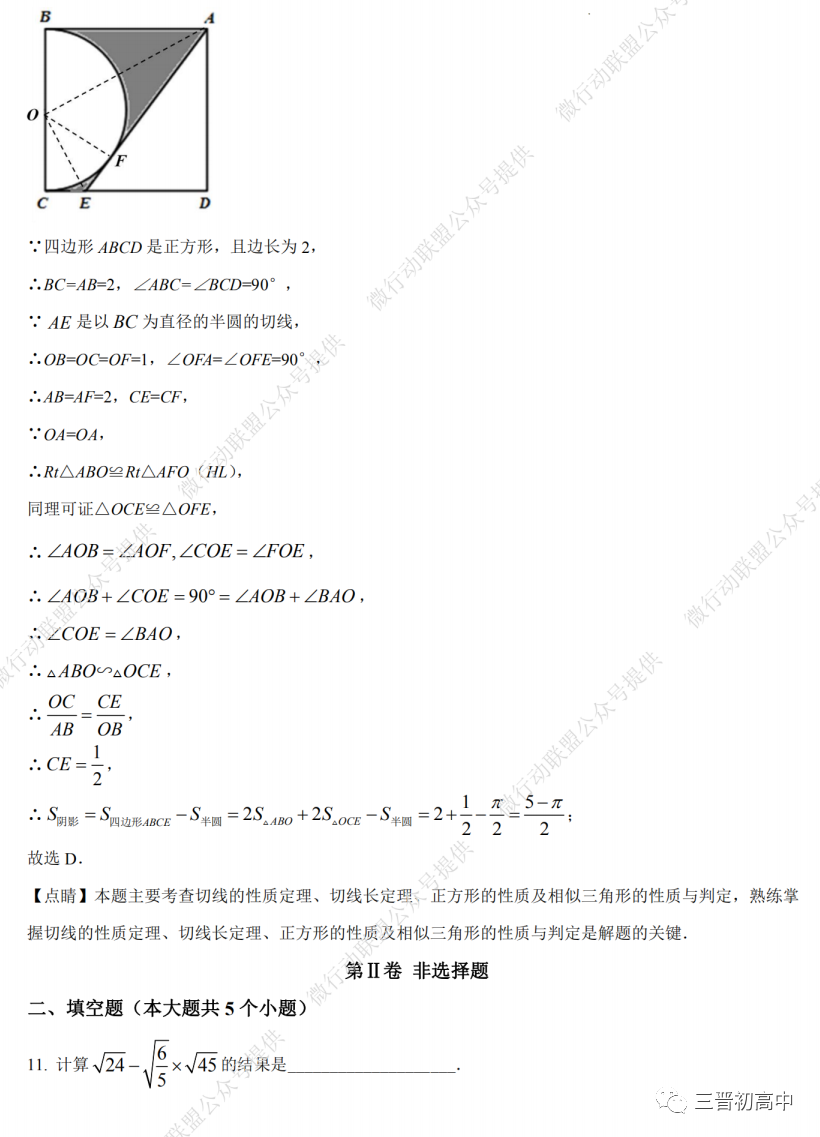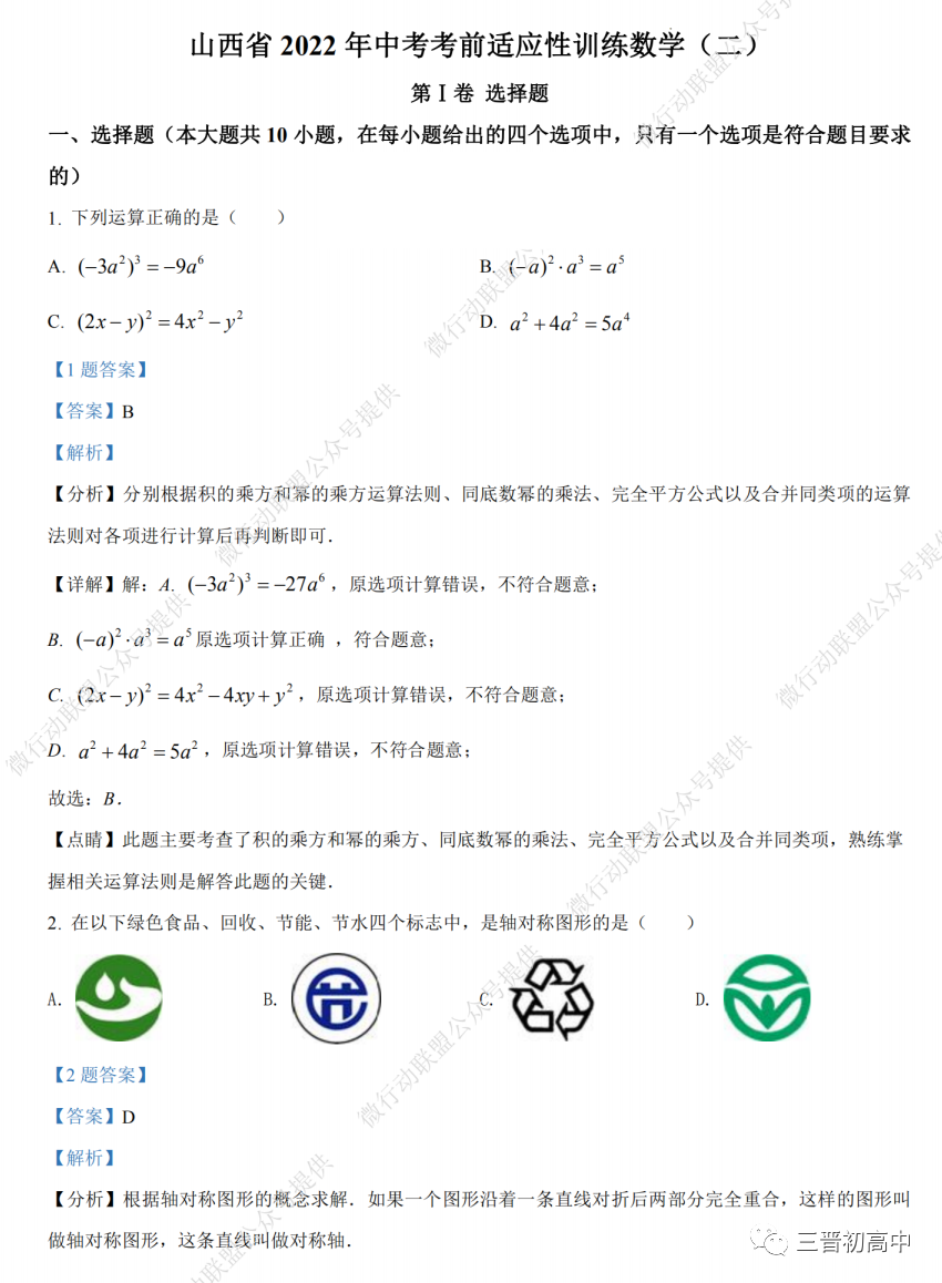 关注山西中考 回复 “模二”