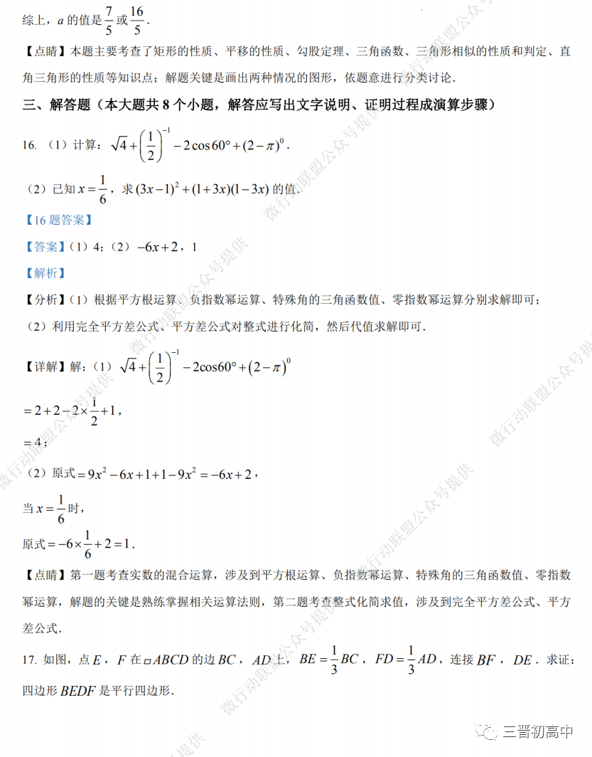 山西中考历年真题 模拟题汇总