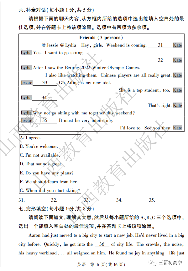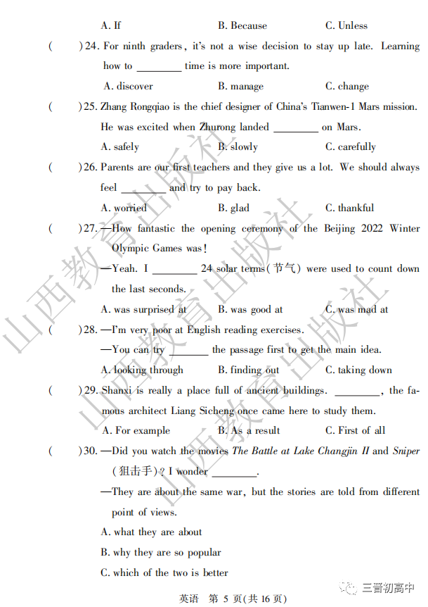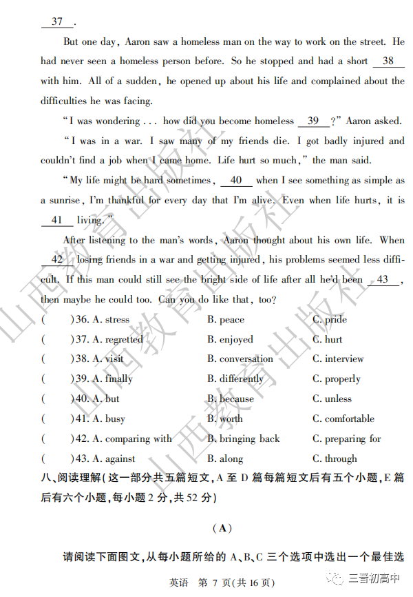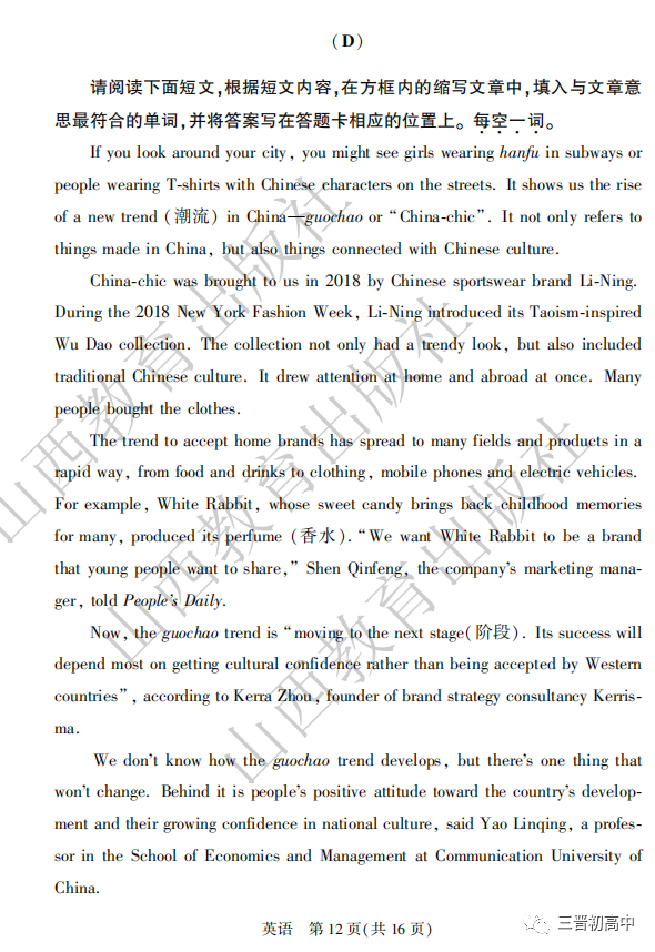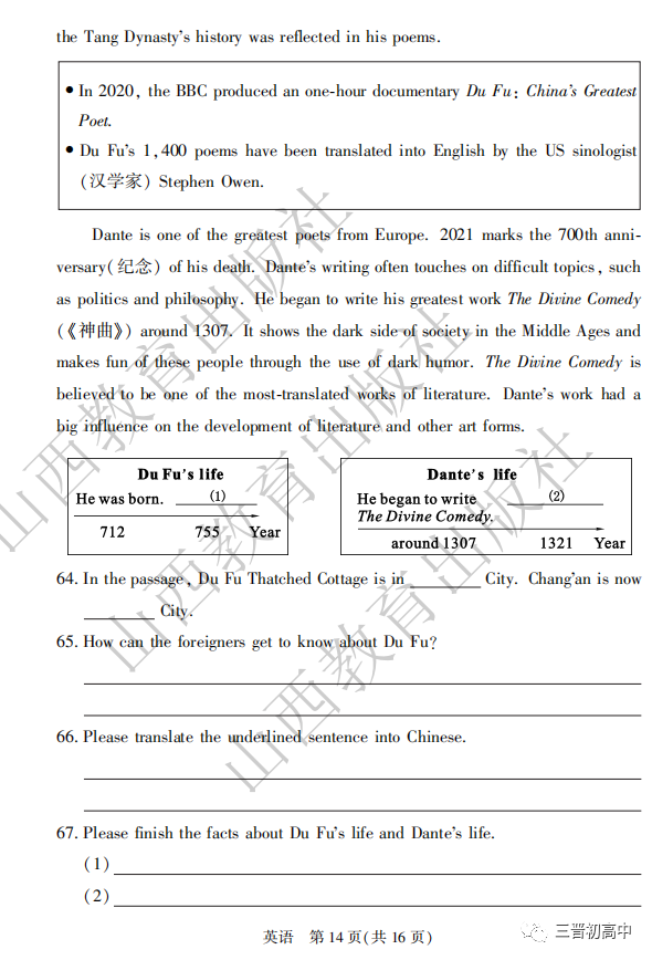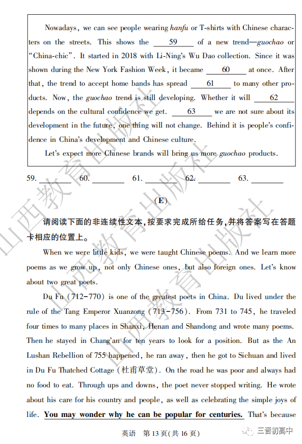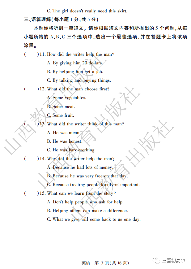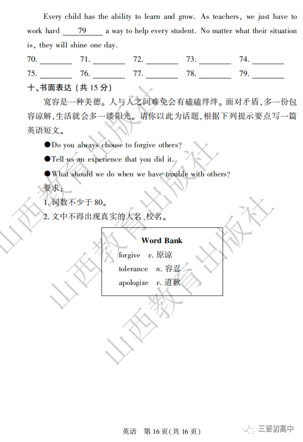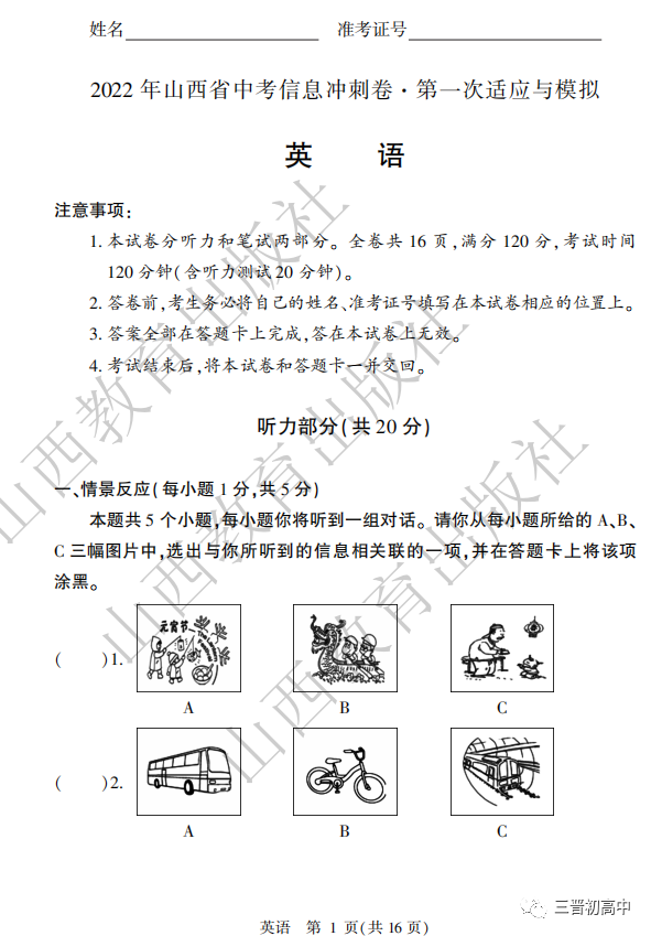 2020山西中考真题高清版可领取电子版