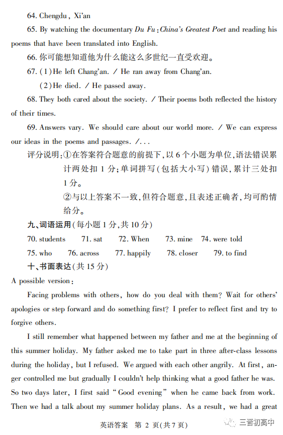 2011-2021年山西中考英语作文真题及范文汇总分享