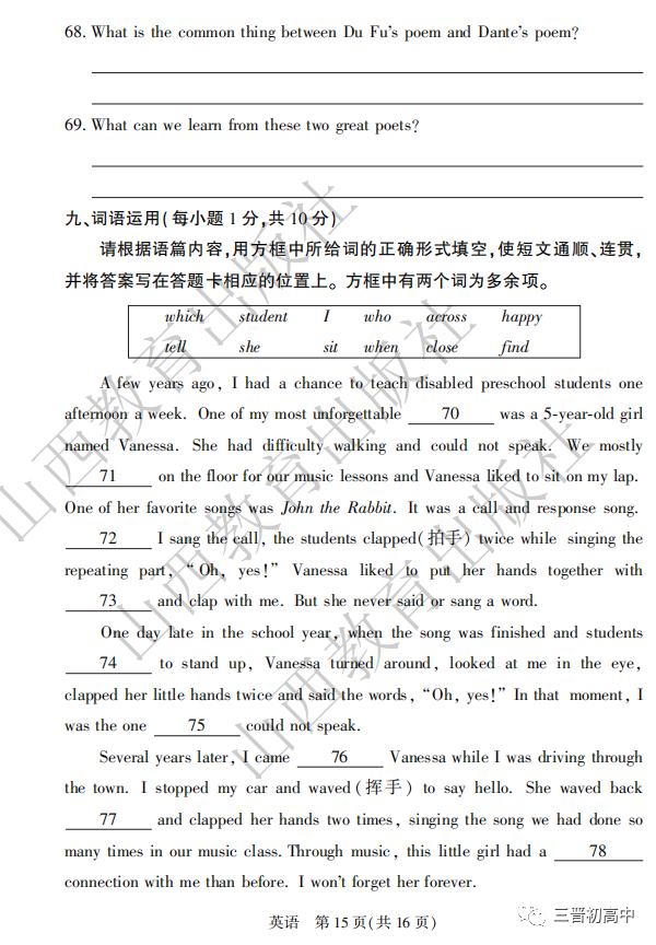 关注山西中考 回复“信息冲刺”