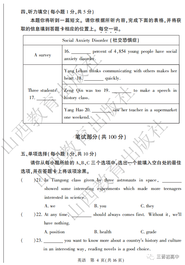 山西中考|近7年英语真题听力部分及音频汇总