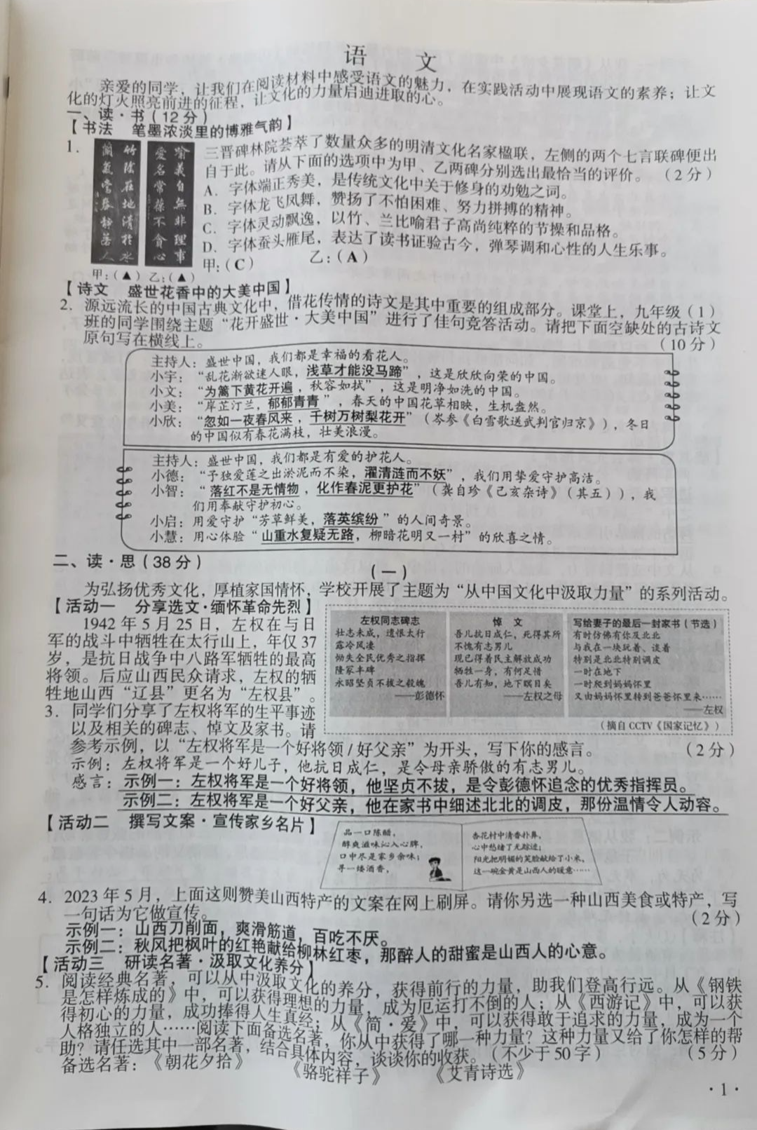 2023山西中考语文作文题目已出!语文难度如何来投票?